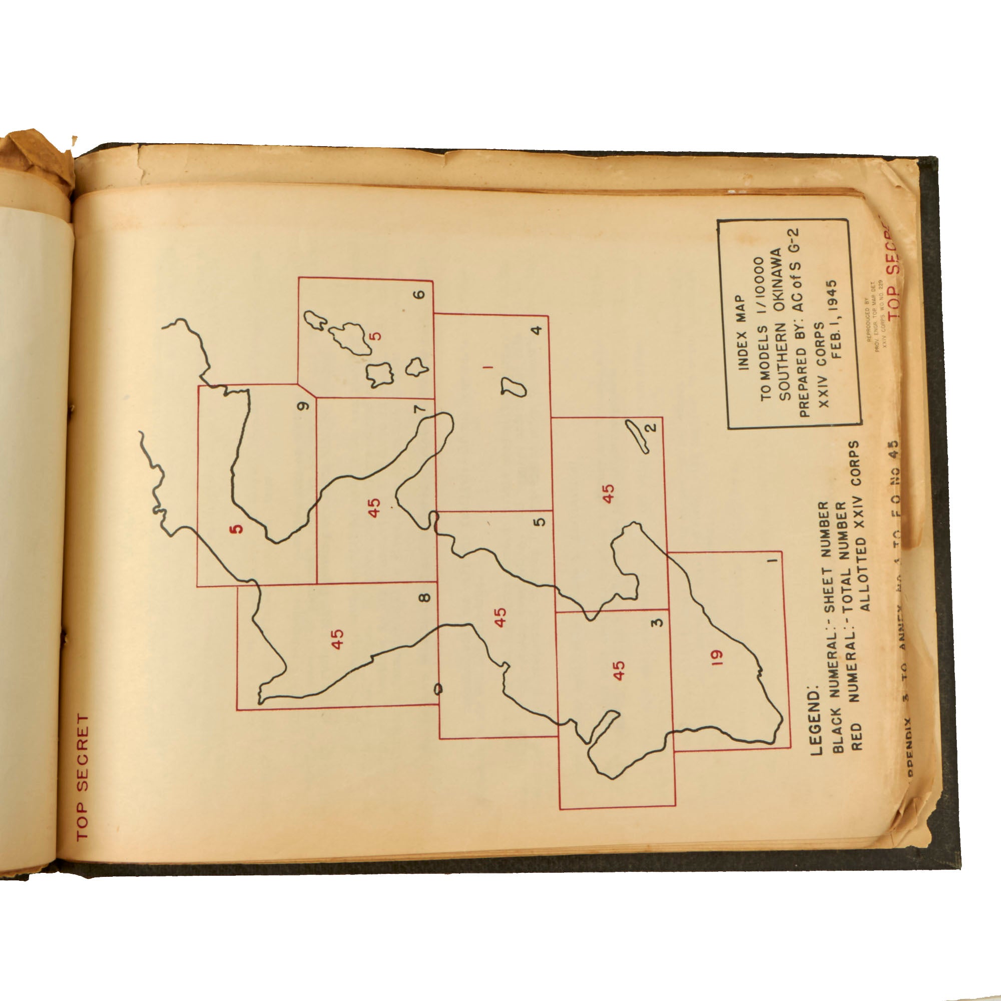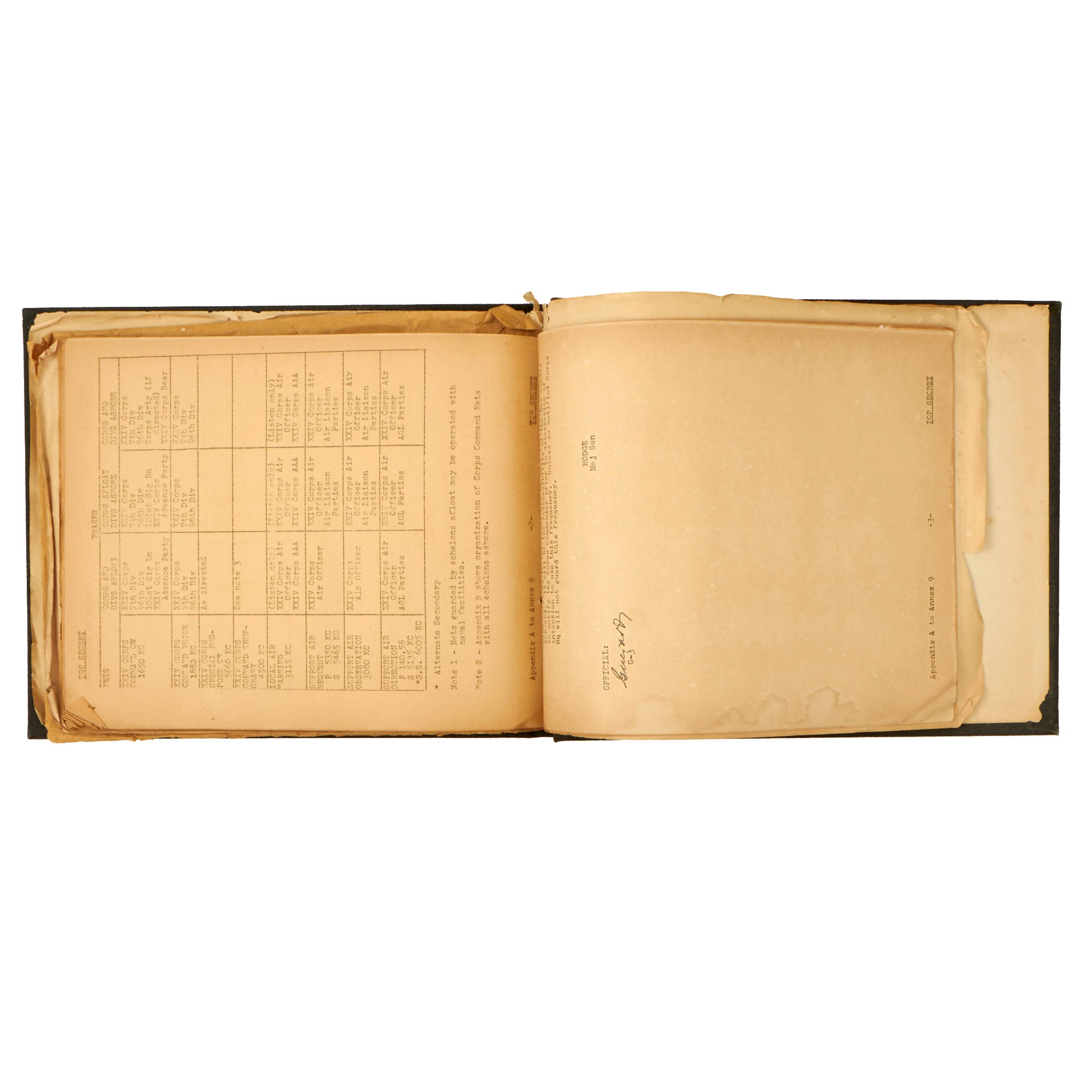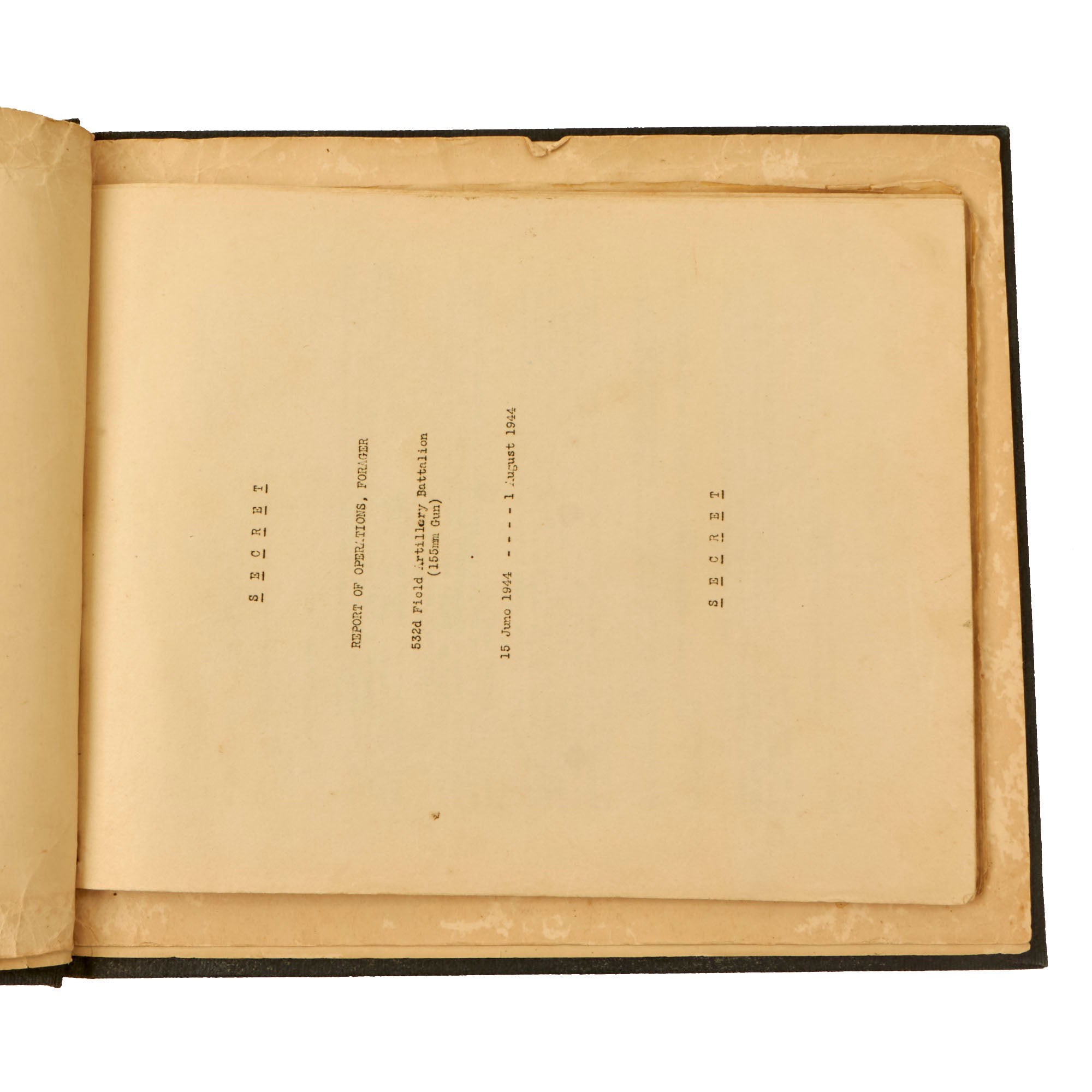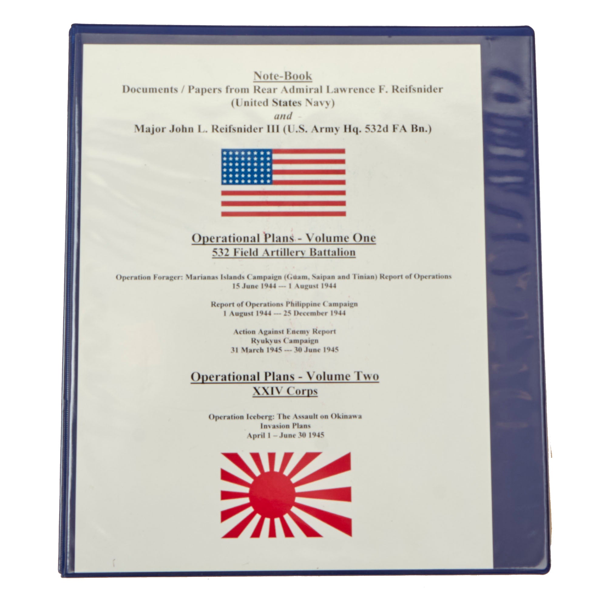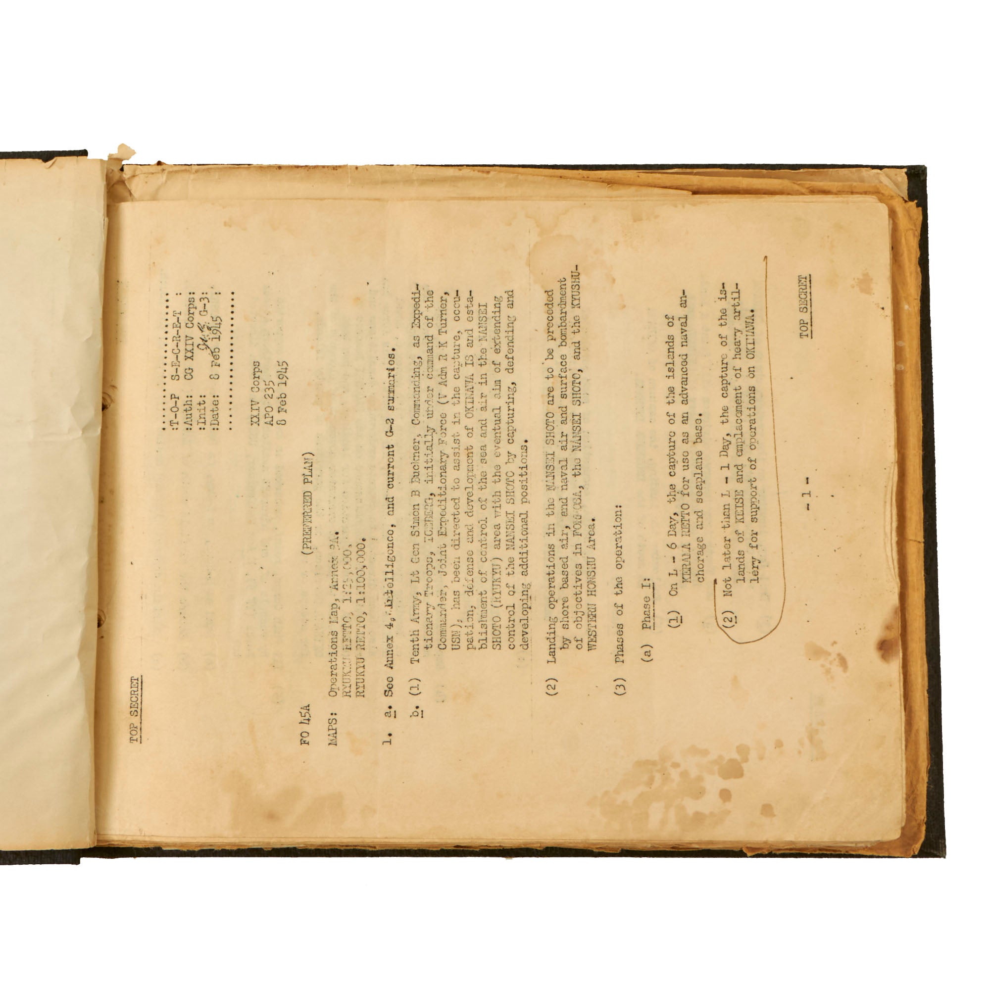 Original Item. One-of-a-Kind. This is a once-in-a-lifetime offering including original invasion plan book with report of operations and after action reports for the 532nd Field Artillery Battalion during Operation Forager, the Philippine Campaign, and the Ryukyus Campaign, and for XXIV Corps during Operation Iceberg, the Assault on Okinawa. These documents are nearly impossible to source today, making this an extremely scarce offering.