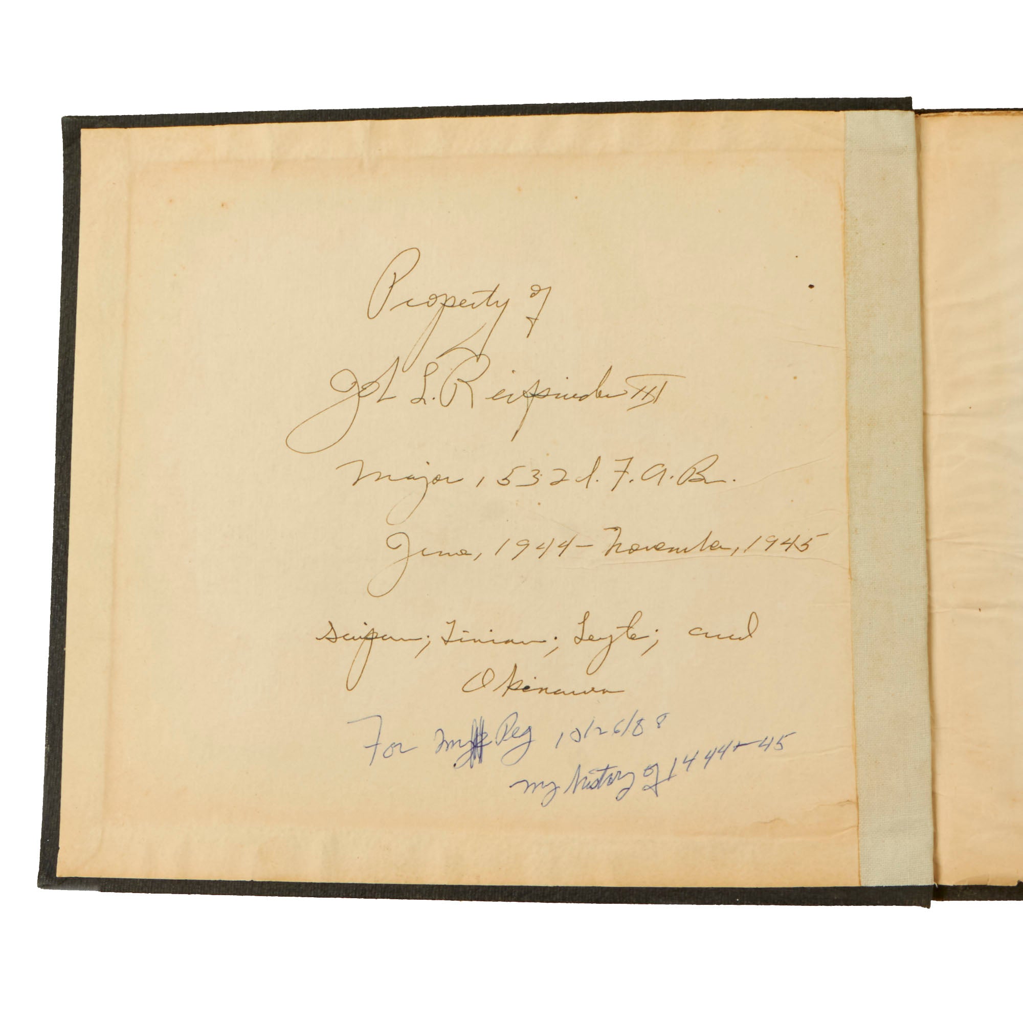 - Operational Plans - Volume Two - XXIV Corps. This book includes the Invasion Plans for Operation Iceberg: The Assault on Okinawa. It goes into detail about the different divisions and units within the Corps, including the 7th ID, 10th Army, 96th ID, 382nd Infantry, etc. There is an integral envelope with HQ XXIV CORPS OPNS MAP ANNEX 3A TO FO 45A and OPNS OVERLAY ANNEX 3B TO FO 45B, some fantastic material. There’s also a fold out organizational chart with all individual units noted in the organization. There is so much fantastic information in this book, far too much to record. All sheets are dated February 8th, 1945 with TOP SECRET at the bottom of each page. The end has a Distribution list with how many copies are sent to each unit. This book measures 9 x 11¼”. The book is signed in the front cover to Major Reifsnider.