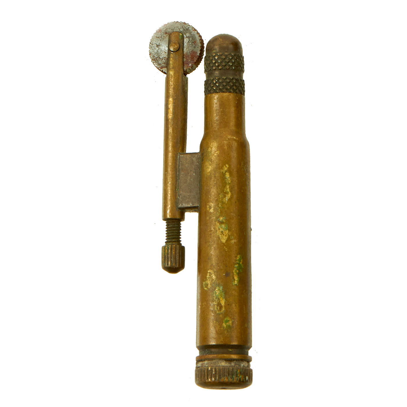 - British .303 Round Trench Art Lighter: This is a fantastic example of a trench art trench lighter constructed from a 1938 dated 303 round. This was a common sight to see during war time. It appears to have been constructed of already existing parts.