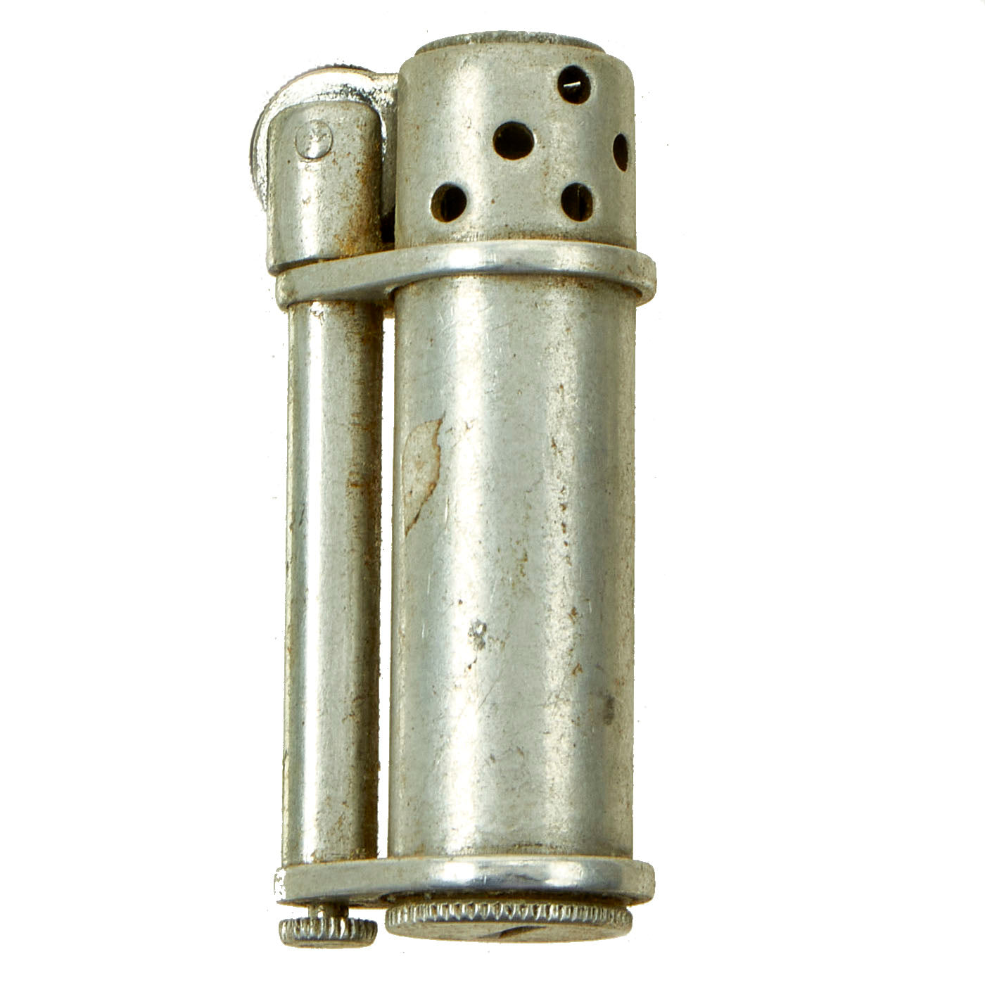 - Signal-U Fyre-Fly Trench Lighter: This is a lovely aluminum trench lighter by Signal-U Manufacturing Company of Youngstown, Ohio. The stamping is present on the bottom but most of which is worn away.