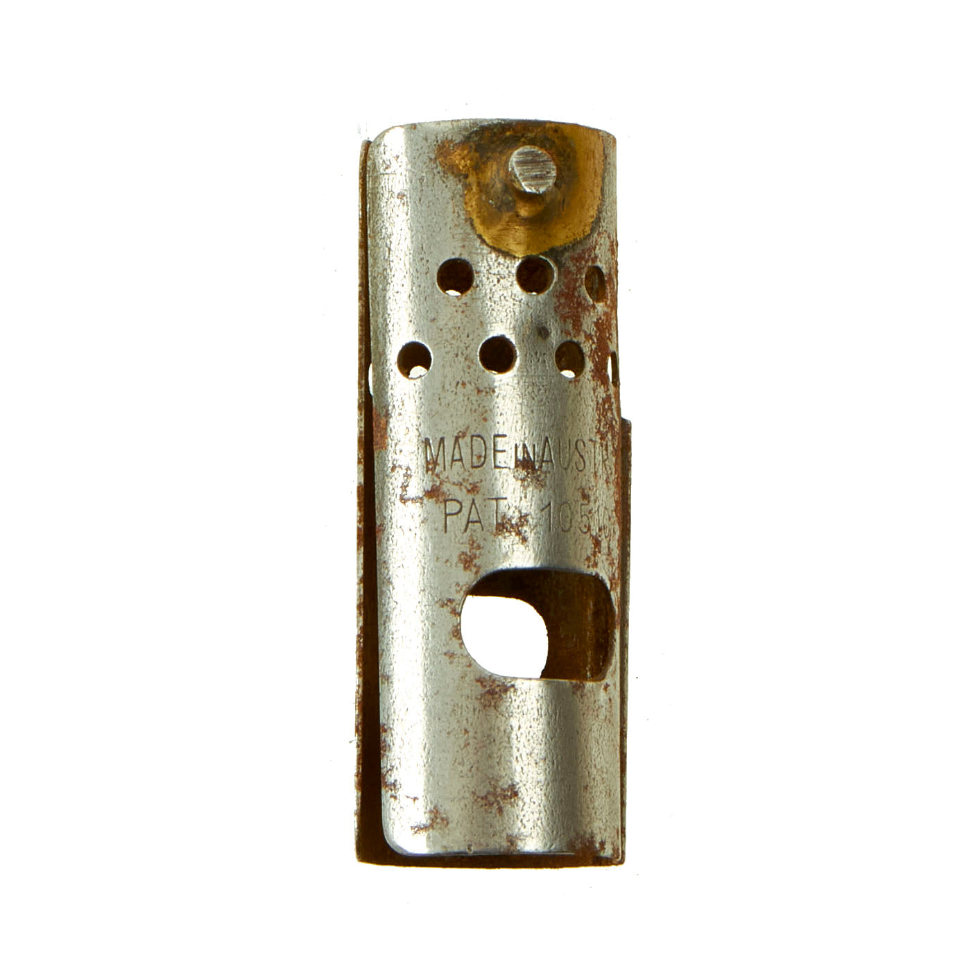 - Austrian Made IMCO Trench Lighter: IMCO was an Austrian manufacturer of cigarette lighters. Established in 1907 by Julius Meister, who was formerly a manufacturer of brass buttons for the Austro-Hungarian Army. At the top is the snuffer-cap which is unfortunately broken. On the right is the flint-tube and striker-wheel. At the bottom of the flint-tube is the spring-loaded arm which keeps the flint hard up against the wheel. Pulling this arm down pulls back the spring so that you can drop in a fresh flint. The brass sleeve around the lighter body is the windshield.