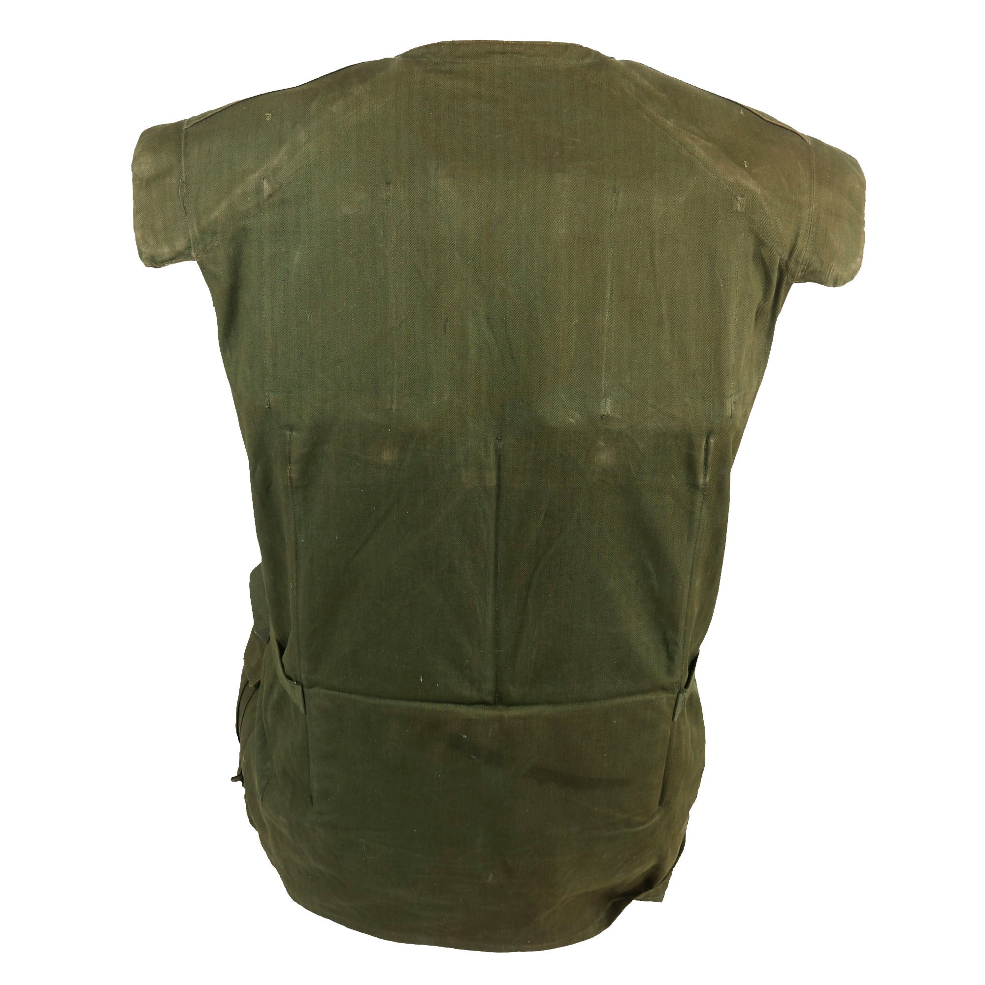 Original Item. Only One Available. This is a phenomenally rare set of experimental body armor designed during World War II for use by the U.S. Marine Corps. This set or armor has no markings outside of the small size tag on the collar, S for small. This set only has one pair of exterior pockets on the left size of the jacket. Very few of these have turned up, and most sets have their own little manufacturing quirks.
