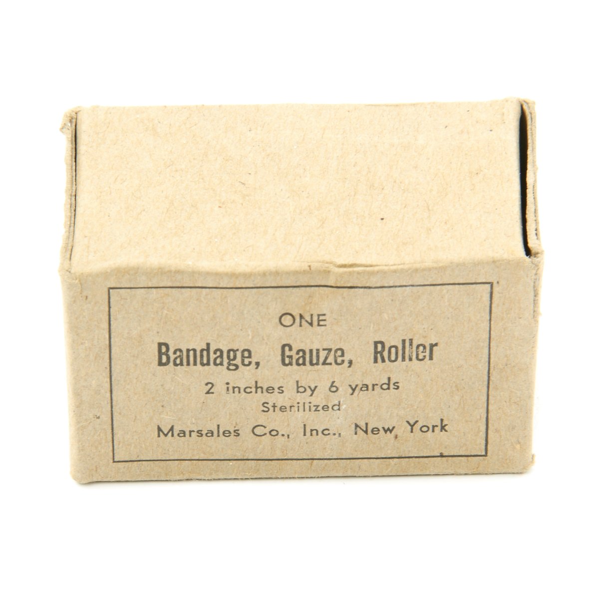 - One Bandage, Gauze, Roller 2 inches by 6 yards, Sterilized, by Marsales Co. Inc. New York.
