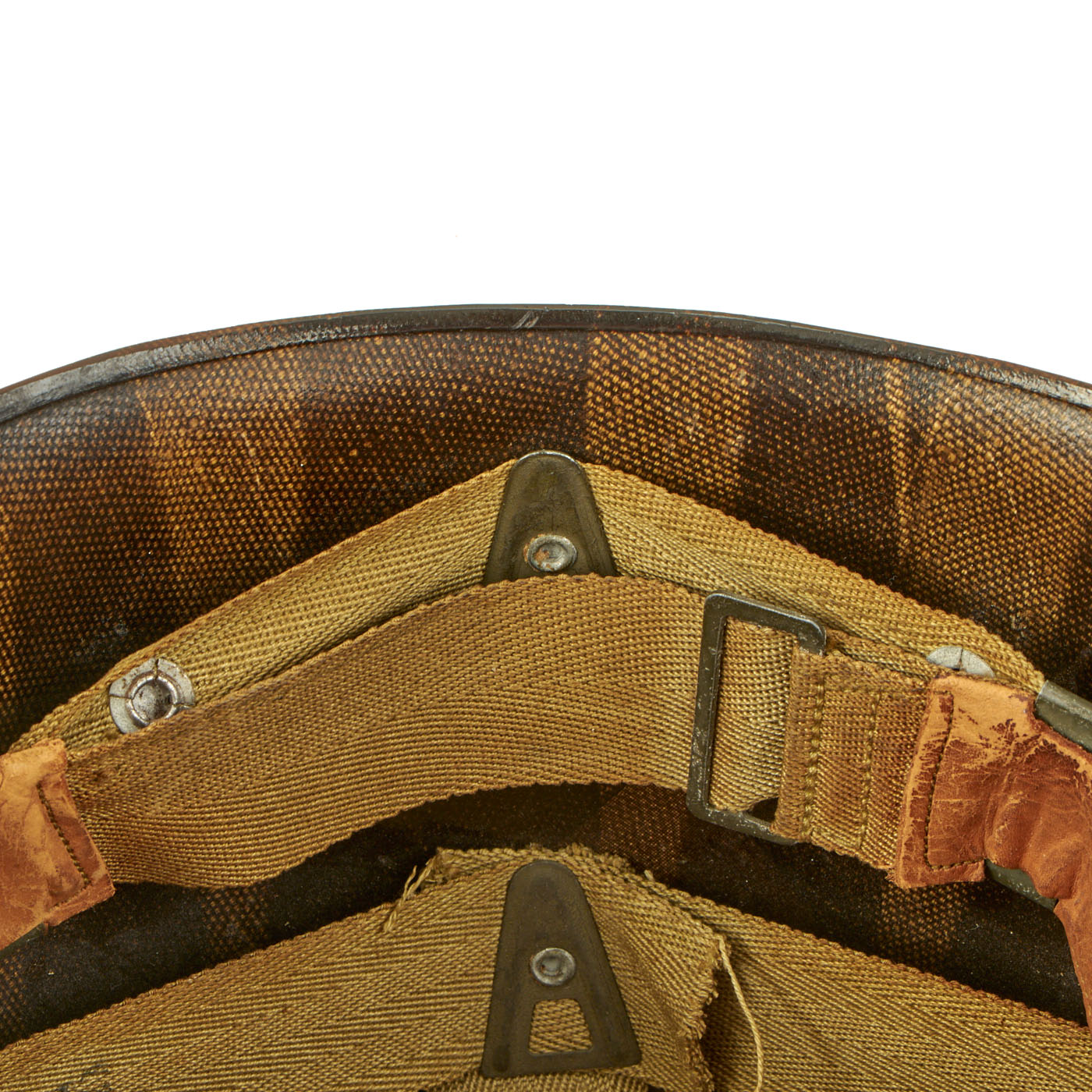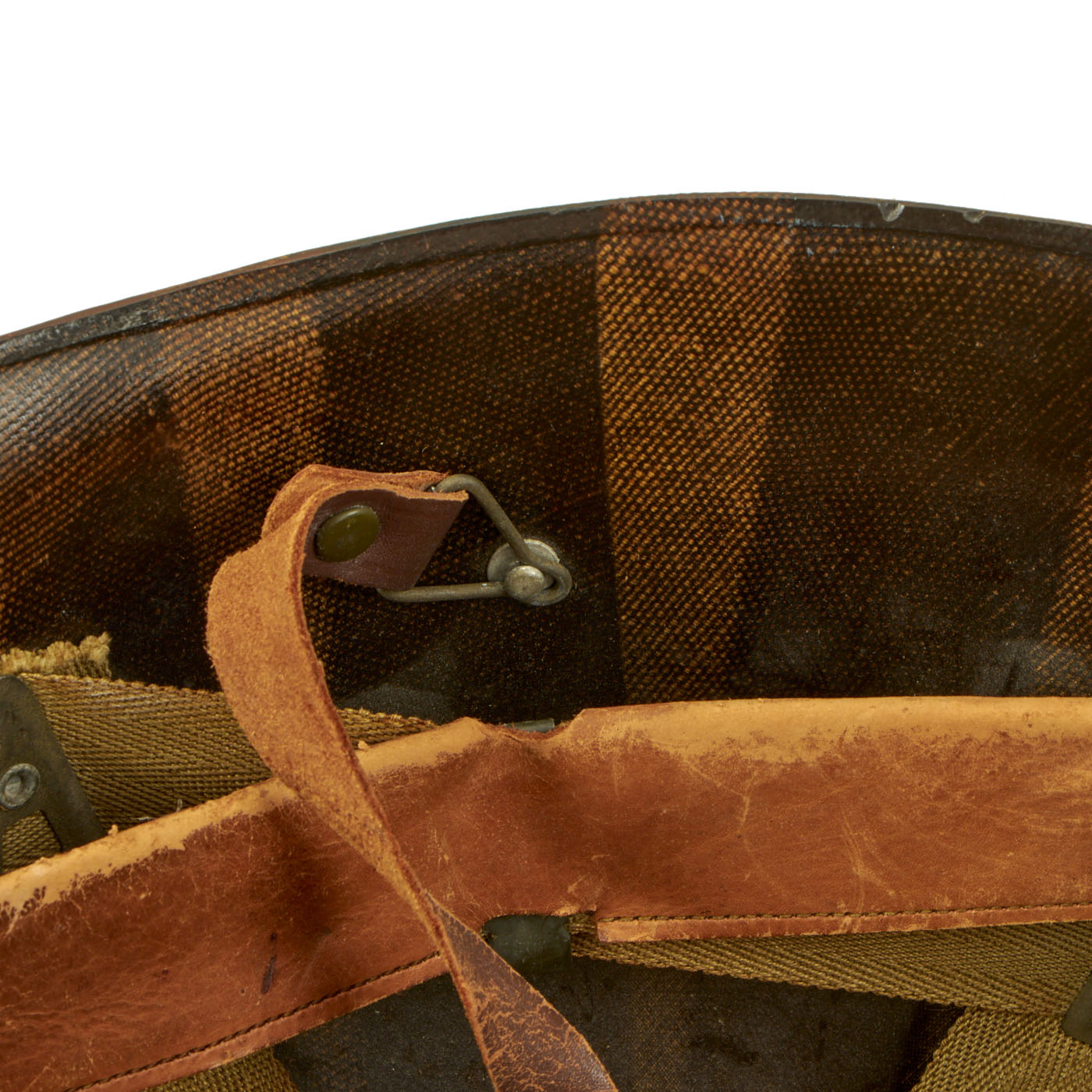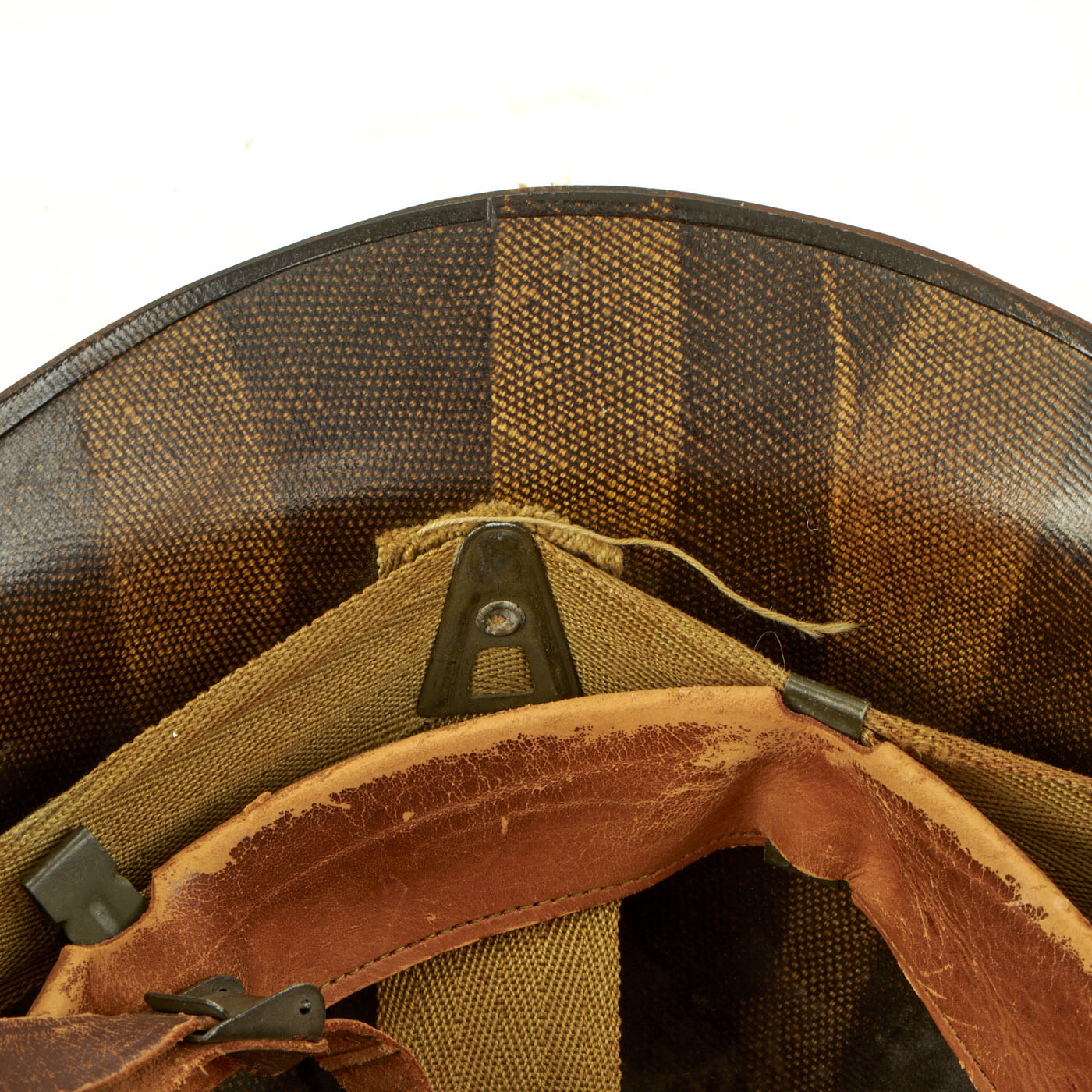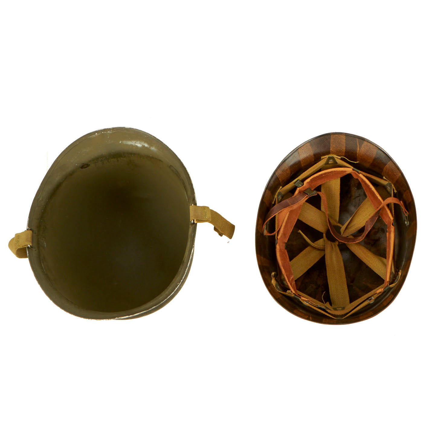 - M1 Helmet: The helmet is complete with a Front Seam, Fixed Bale McCord shell, heat stamp 271C indicating production in September of 1942. The liner is the correct “high pressure” liner manufactured by Westinghouse. The helmet is in great condition with both chinstraps, the leather shows signs of honest wear but is undamaged on both the sweatband and liner chinstrap. The front of both the shell and liner have “Snyder QM1/c” painted in white.