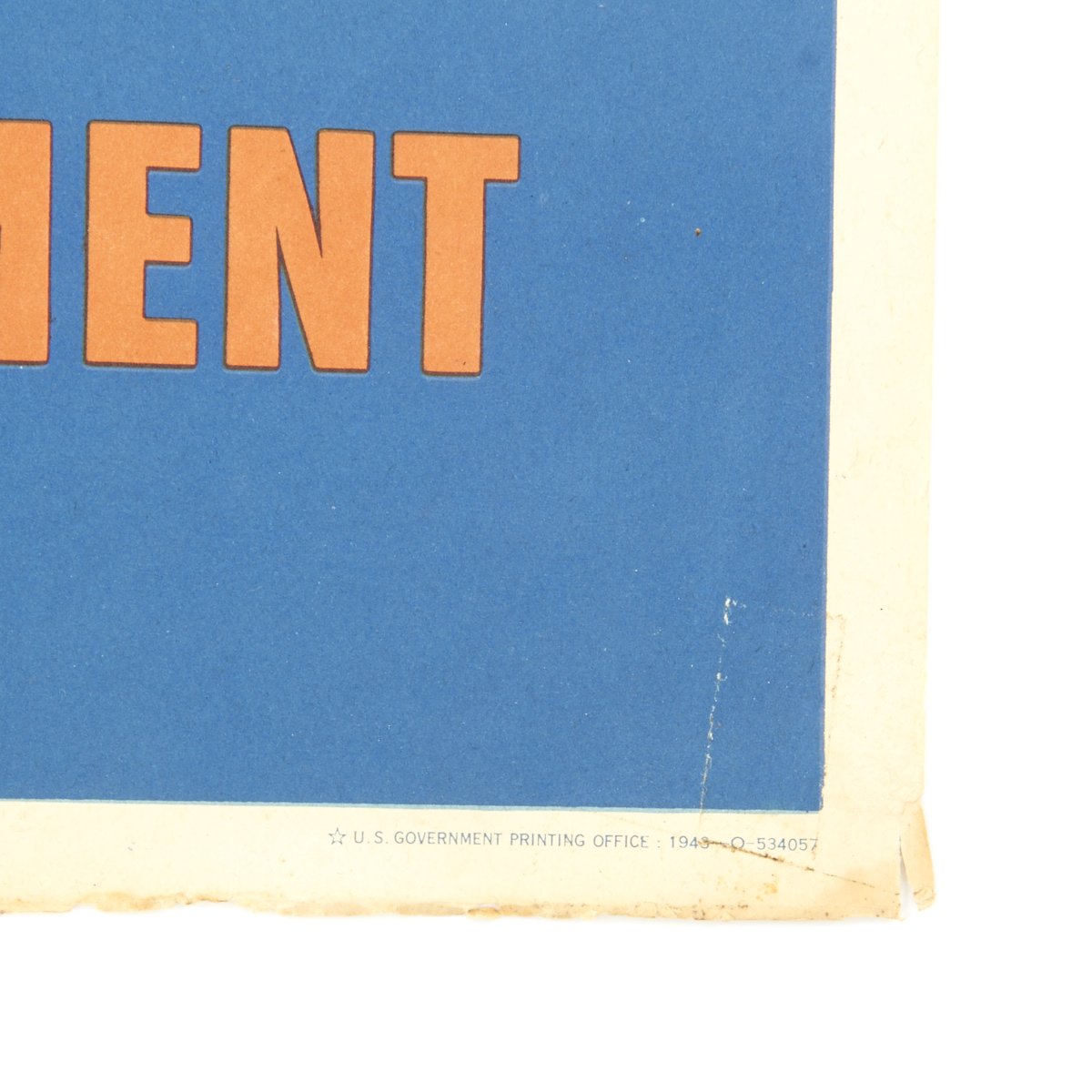 An unrestored totally original poster with a clean overall appearance. It has minor signs of use, such as slight edge and fold wear, and very minor creases. The Poster has been folded, as it was originally for mailing to various government locations around the country. Unframed.