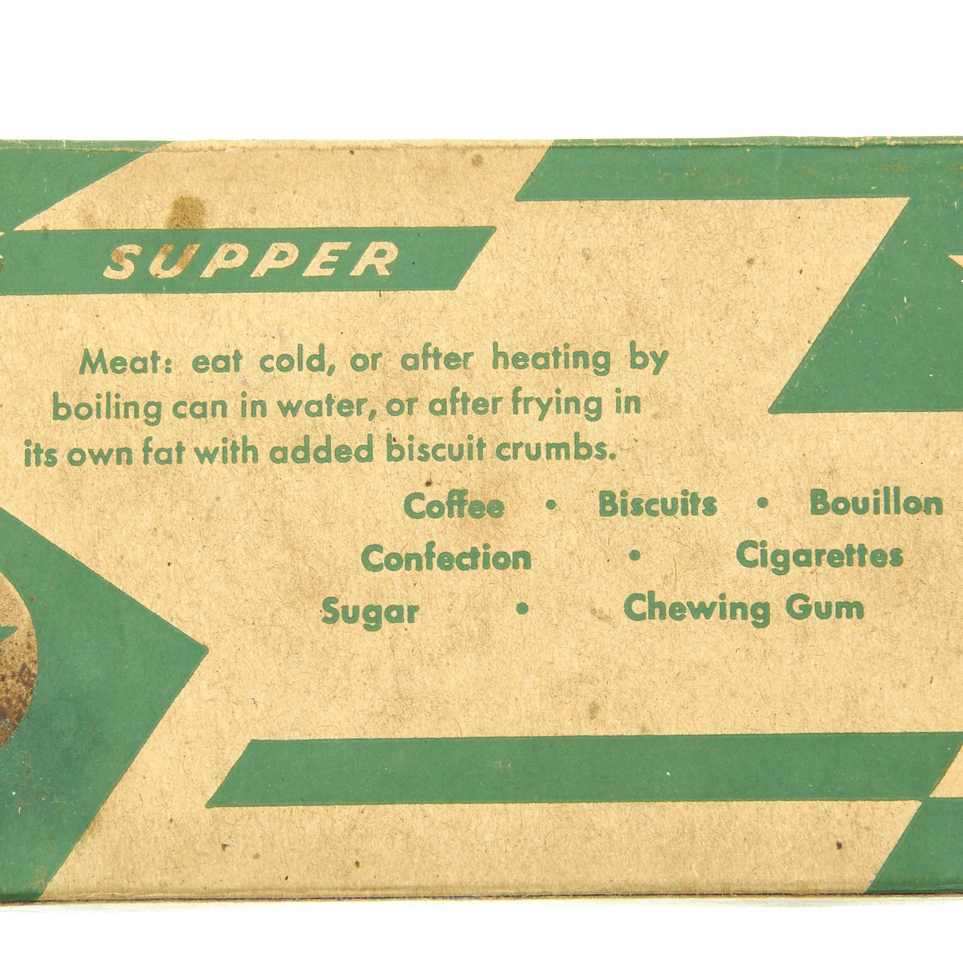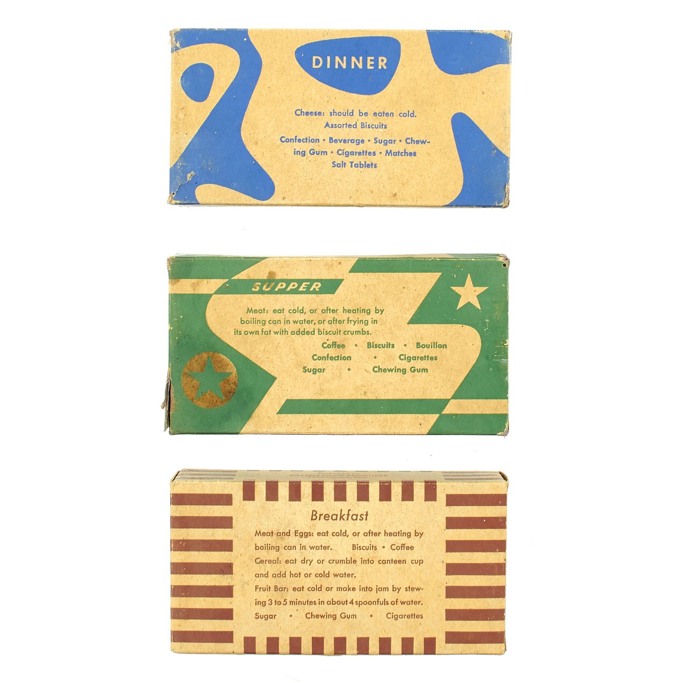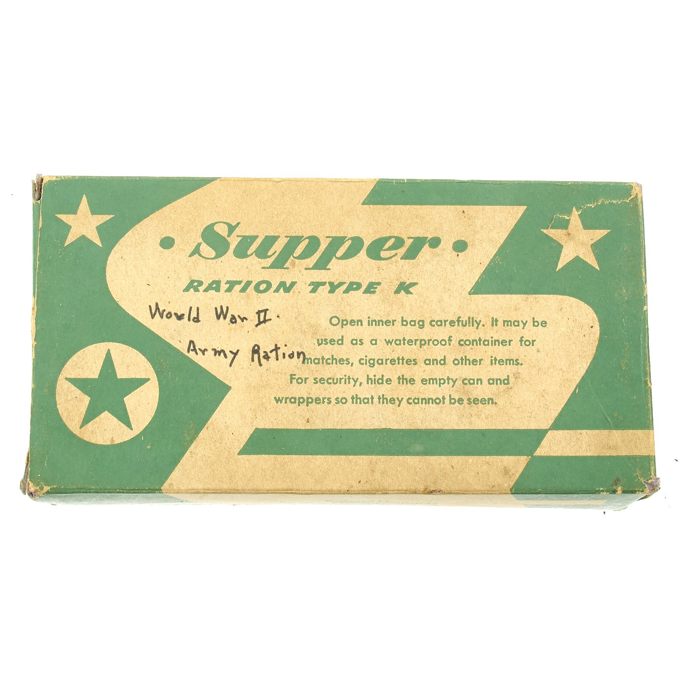 Original Items: Only One Available.The K-ration was an individual daily combat food ration which was introduced by the United States Army during World War II. It was originally intended as an individually packaged daily ration for issue to airborne troops, tank crews, motorcycle couriers, and other mobile forces for a short duration. The K-ration provided three separately boxed meal units: breakfast, dinner (lunch) and supper (dinner).