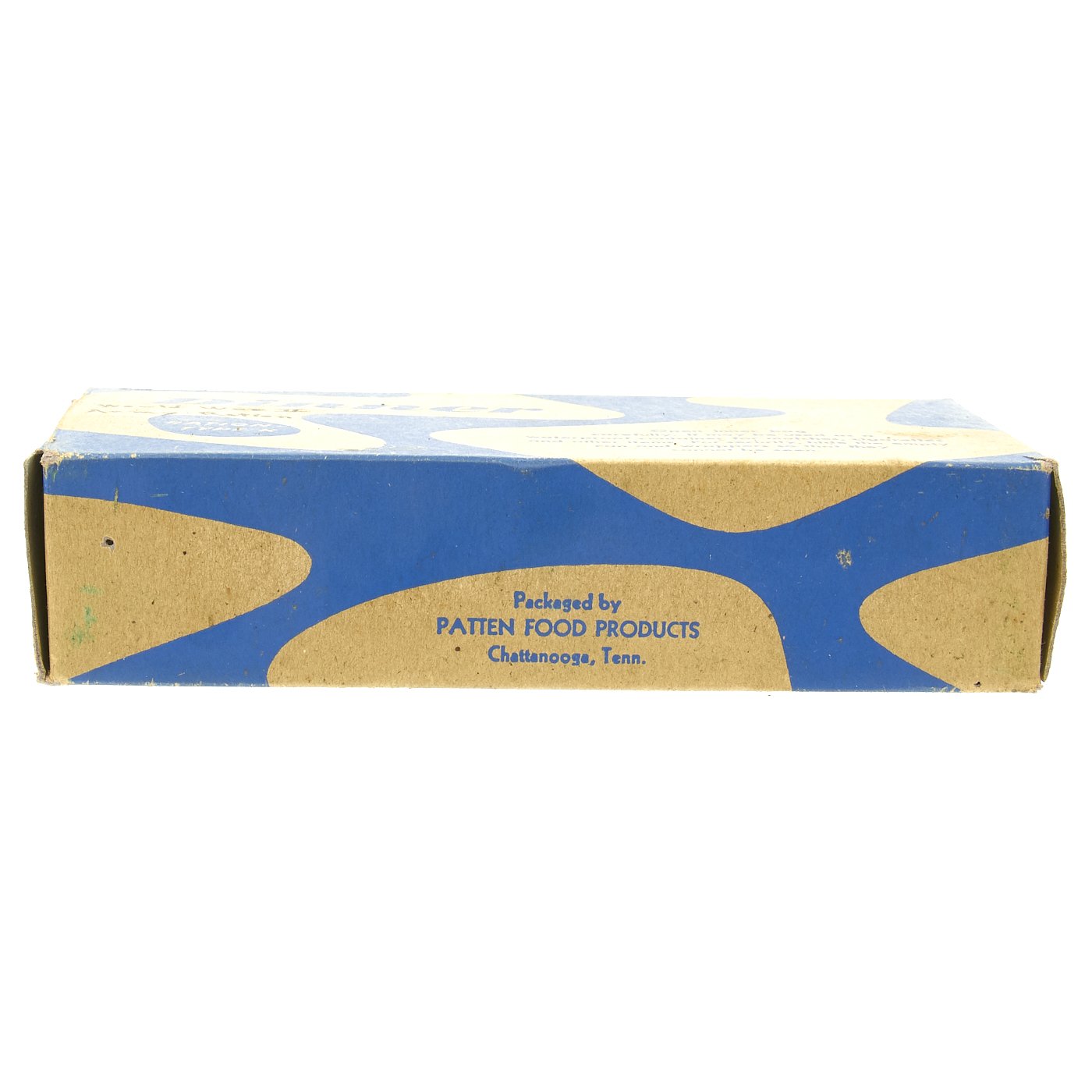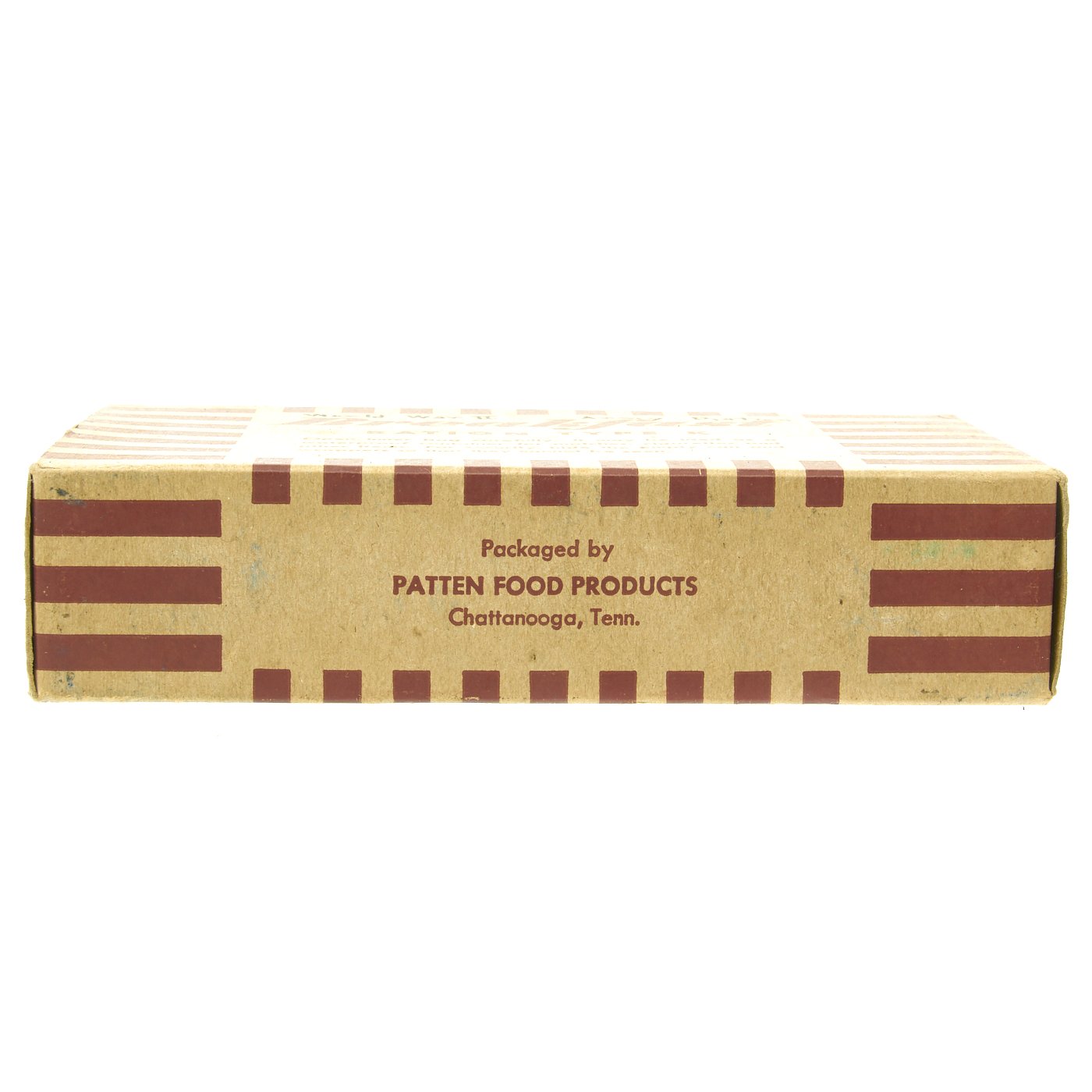 The entrée came in a small, round metal can painted green with black lettering, with a metal key (dubbed a "twist key") to open it, packaged in a roughly square 3 × 23⁄4 × 17⁄16 inch (7.5 × 7 × 3.7 cm) cardboard box.