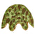 Its design dates from September 17, 1942. There is only but one design for the helmet cover adopted. This design called for two halves of Camouflaged Herringbone Twill (HBT) sewn together, each half with two rows of 4 horizontal “buttonholes” on the upper half and one vertical hole in each flap. Although not intended to button anything to the cover, these one inch long stitched holes are called “buttonholes” in the original documents.