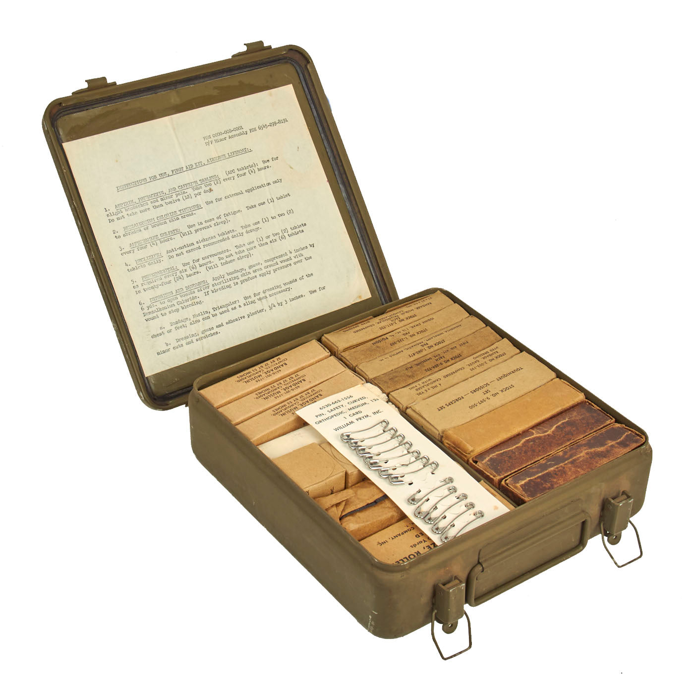 This is a fantastic and seldom seen first aid kit from WWII. Comes more than ready for display.