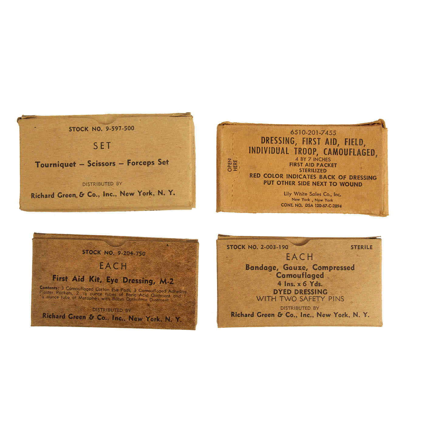 - Dressing, First Aid, Field, Individual Troop, Camouflaged: “4 by 7 inches”
