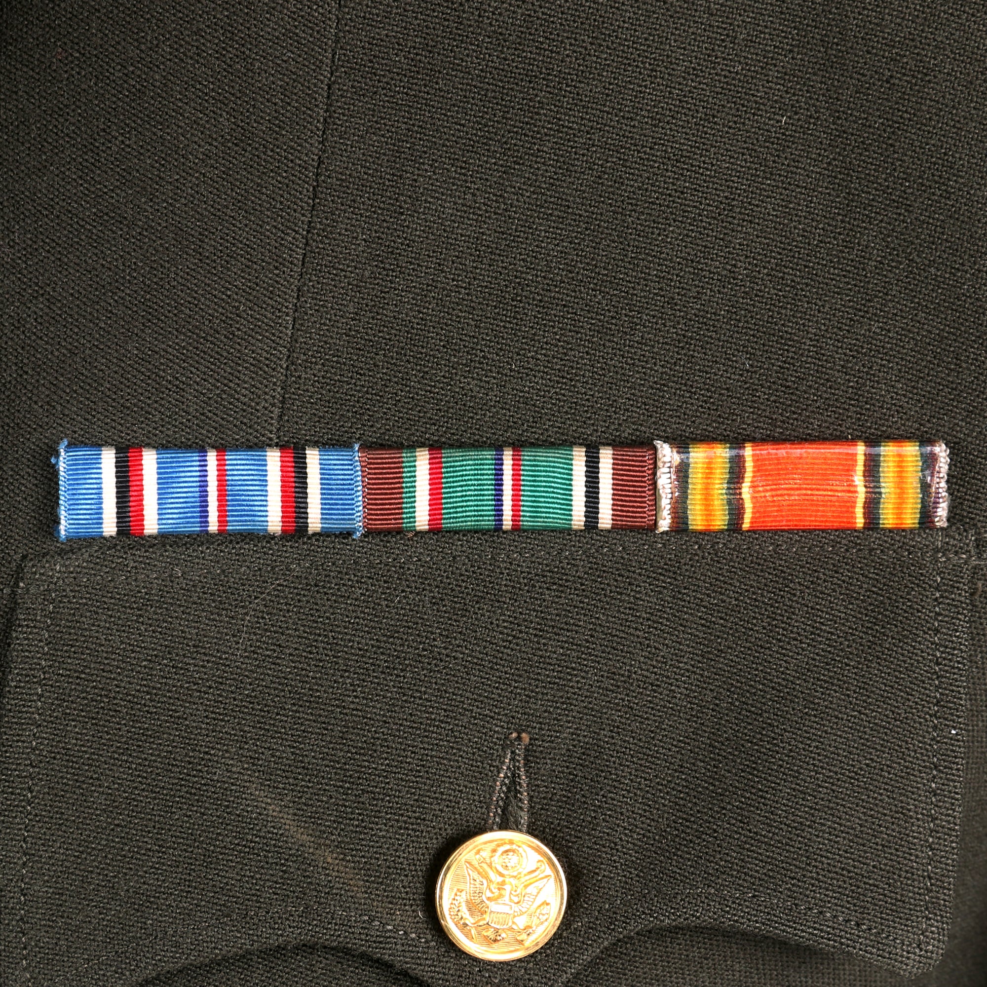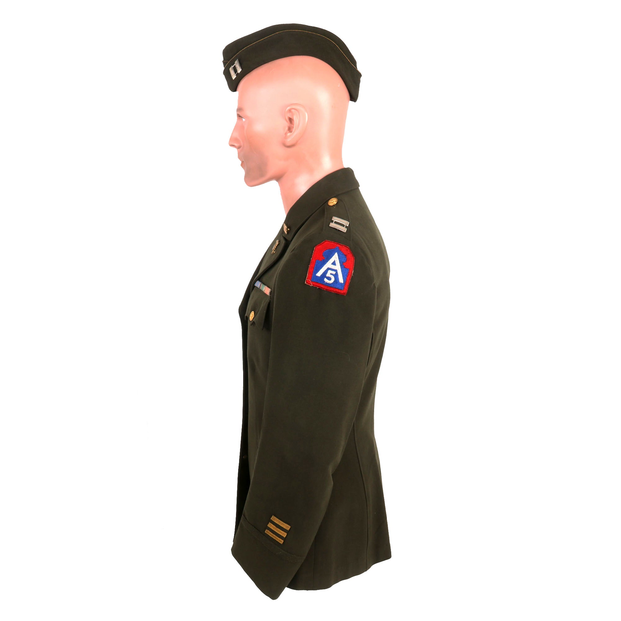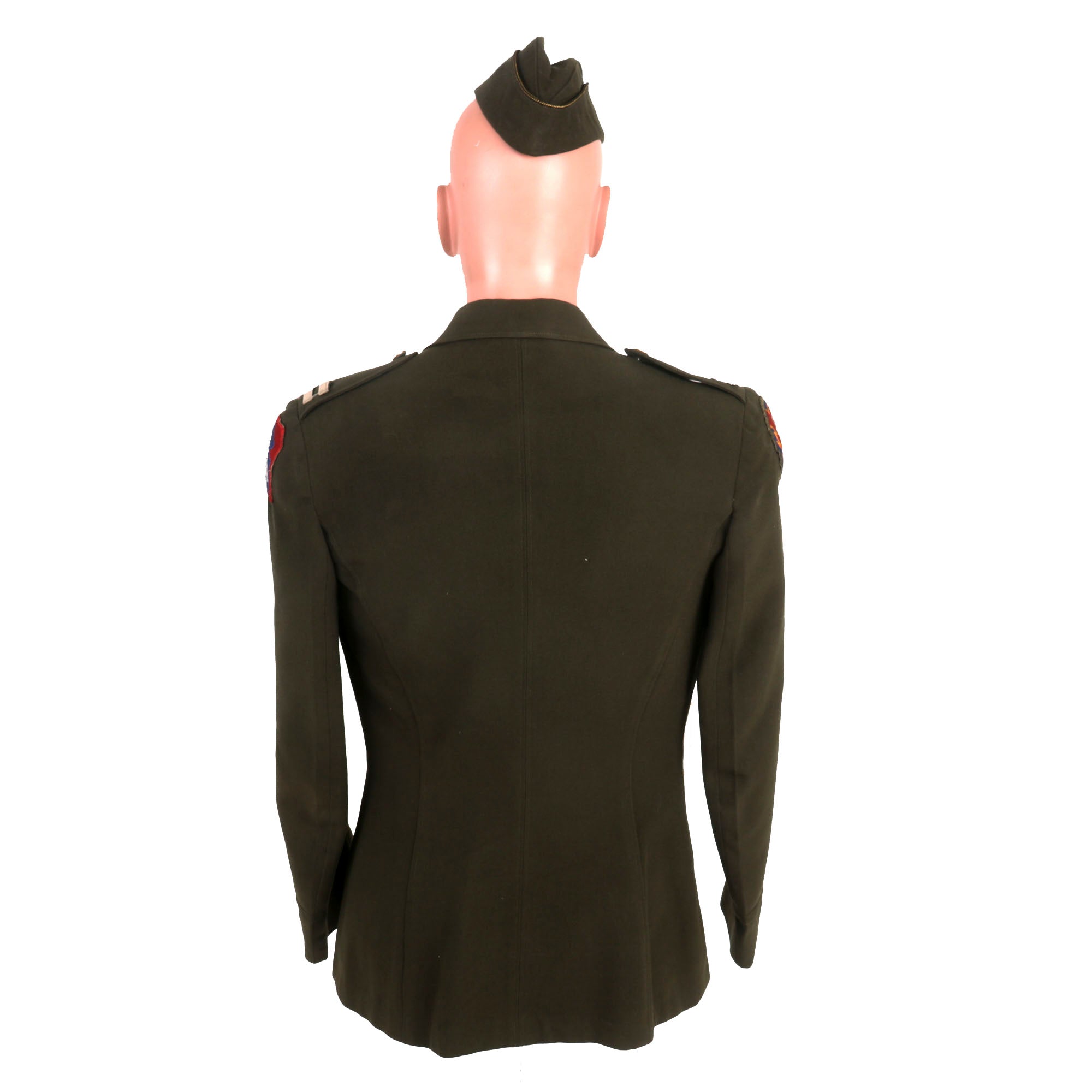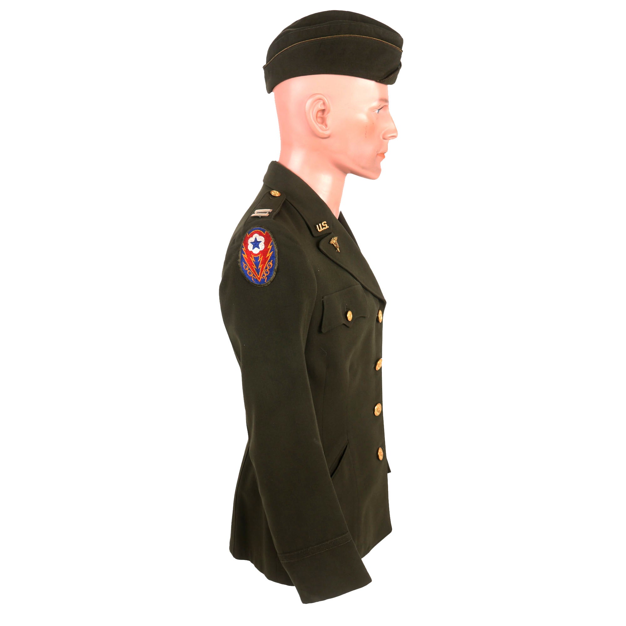 This example is in exceptional condition and features wonderful, period applied insignia. The jacket features wonderful Captain's bars on each shoulder, US designators on each collar along with the “N” Caduceus for Nurse Corps. Other insignia include a wonderful 5th US Army Patch on the left shoulder and an Advance Section of the Communications Zone (Com-Z), European Theater of Operations, United States Army (ETOUSA) patch on the right.
