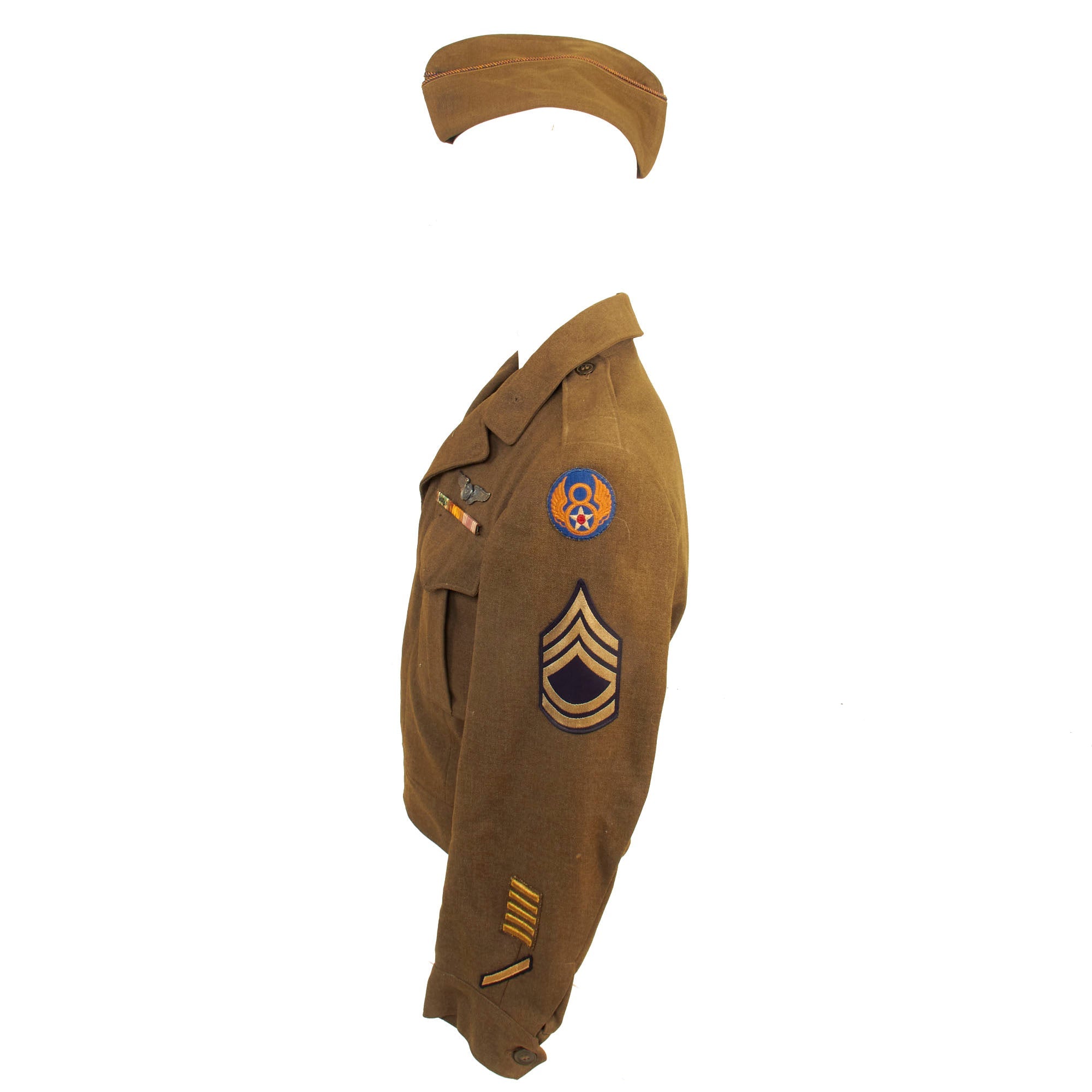 Original Items: Only One Set Available. This is a wonderful example of a WWII US Army Air Forces “Ike” jacket, which includes a lovely matched flannel shirt and overseas cap. The jacket features fantastic insignia, awards and devices, a perfect set for the WWII Air Force collector!
