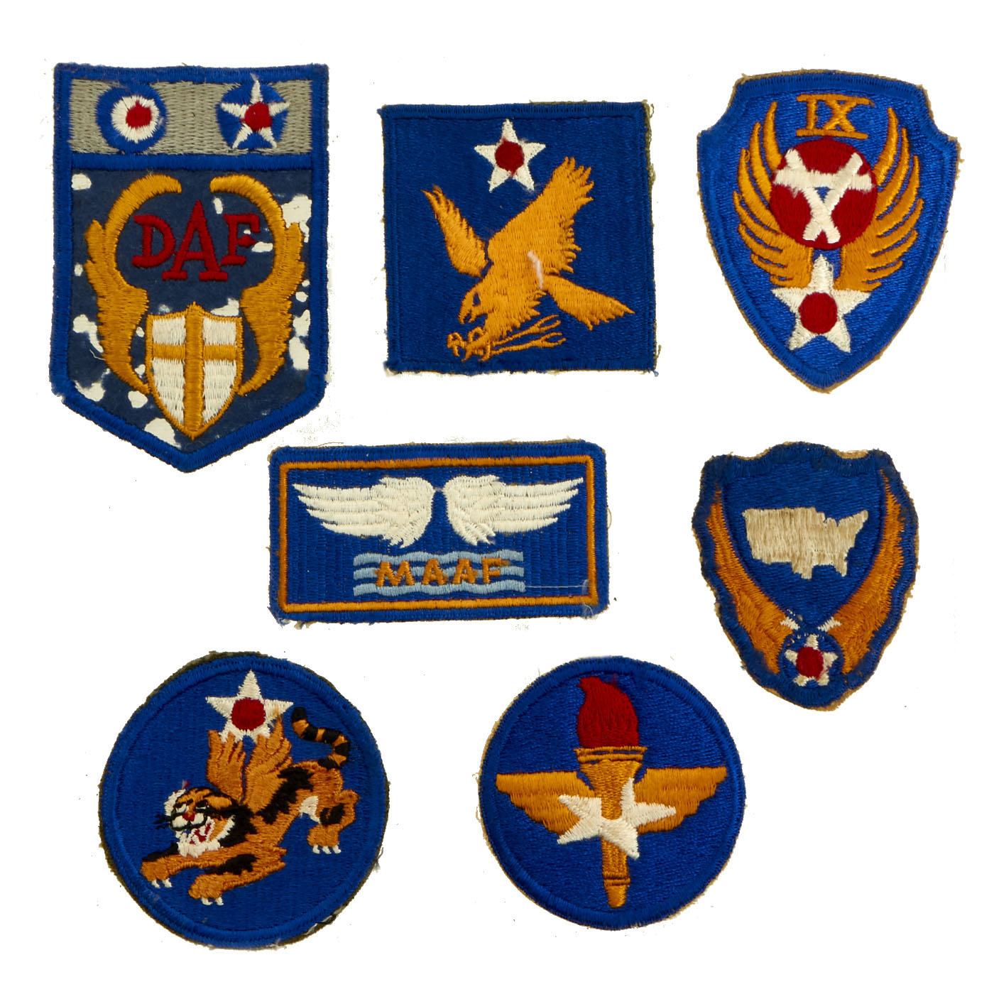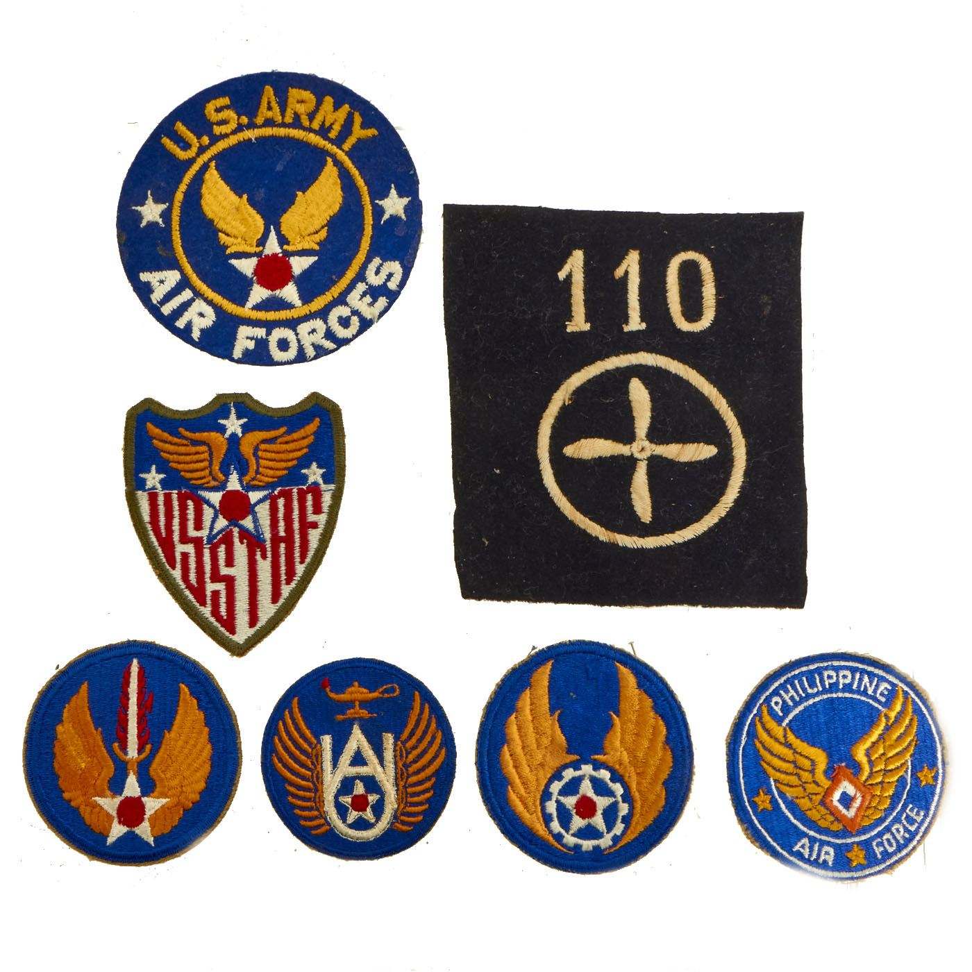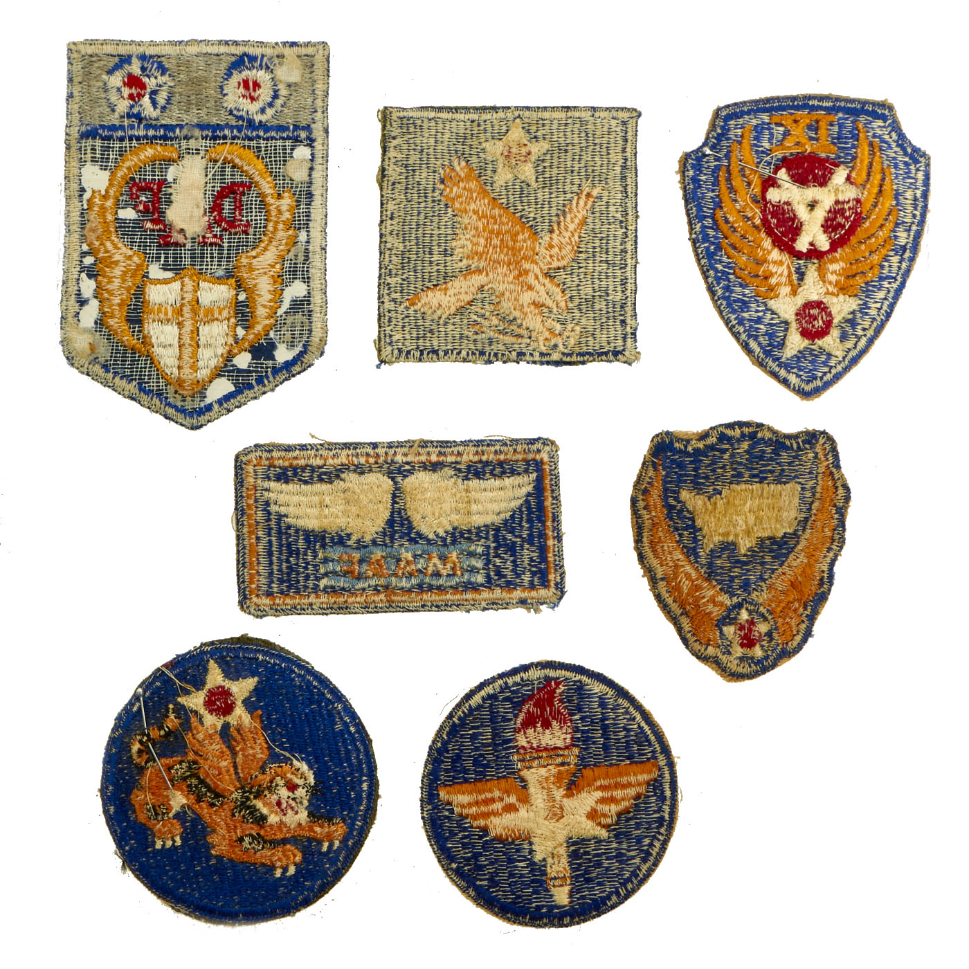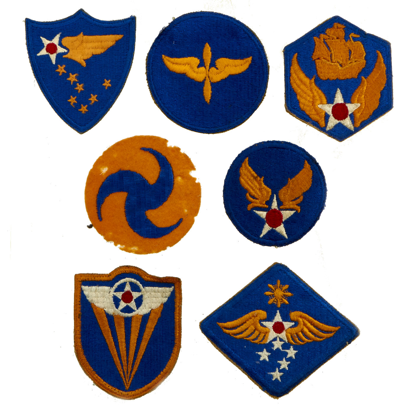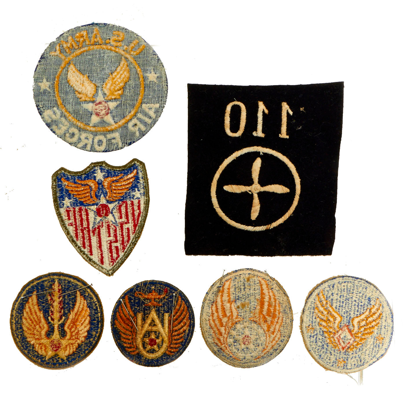 This lovely lot features 39 Patches attributed to the various Air Forces units and schools. They are all in wonderful condition with a few showing signs of moth nips. The other 10 items include various types of collar insignia, winged prop devices, lapel devices and more. Please consult the photos for the finer details.