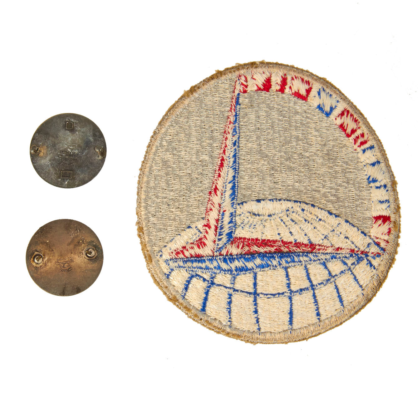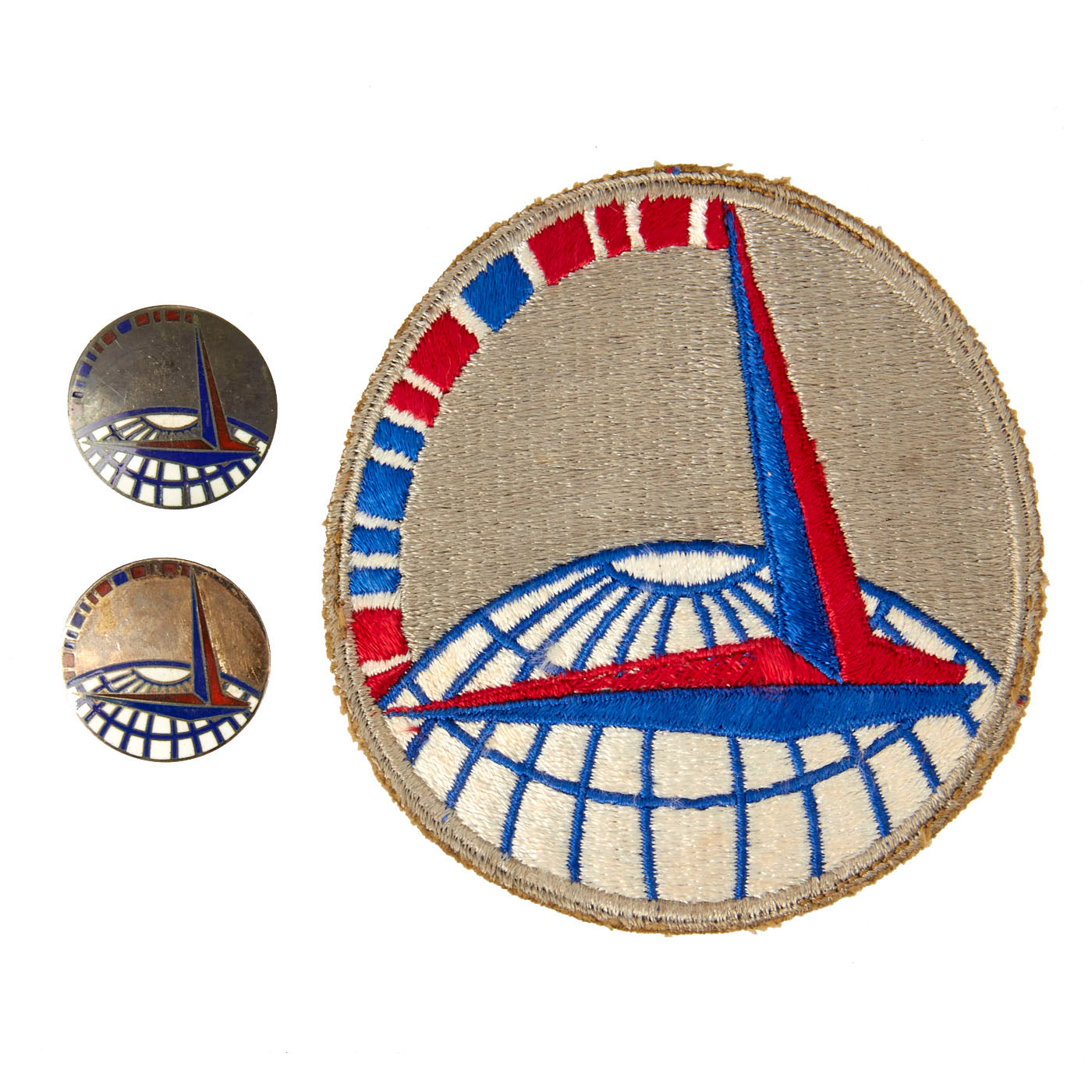 - Army Air Forces Ferry Command Patch and DUIs: 3 items consisting of a lovely Ferry Command Patch (4” x 4 ¼”) and (2) Distinctive Unit Insignias. The patch looks unused and the DUI pins show signs of wear and use with almost all enamel and colors retained.