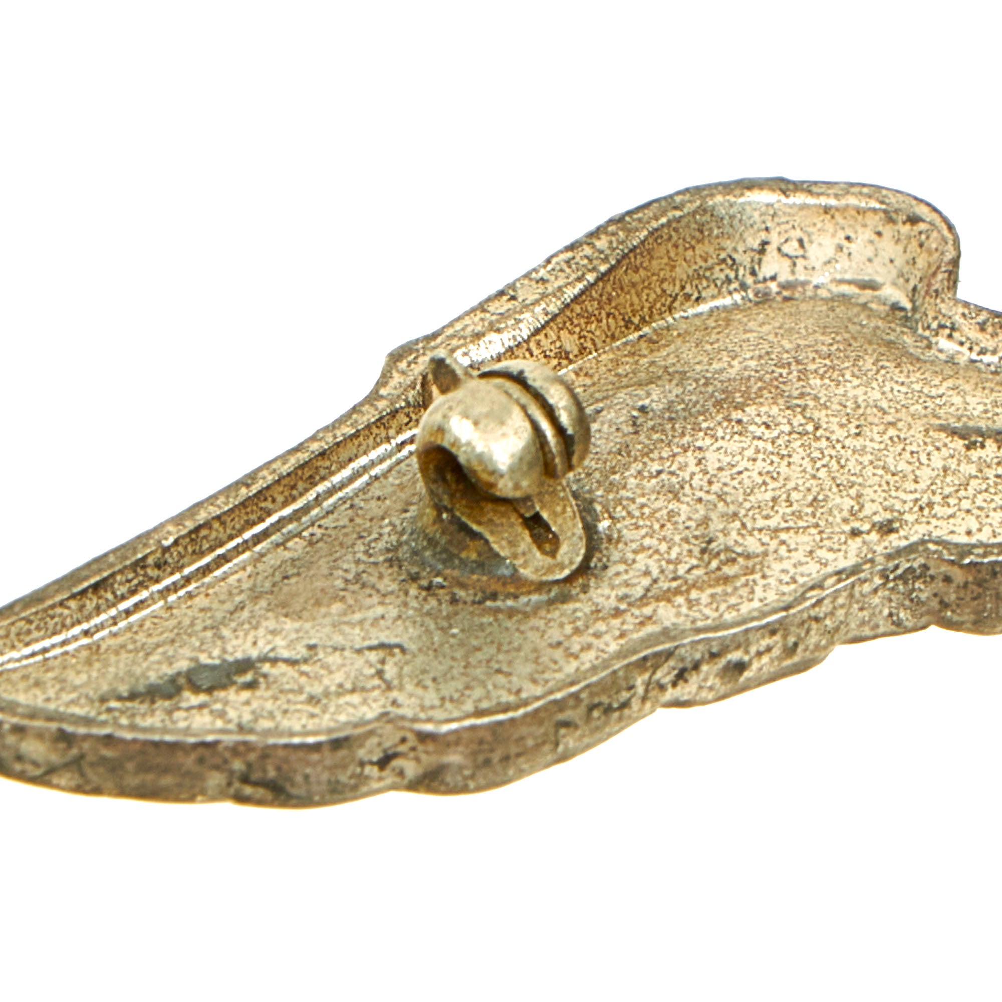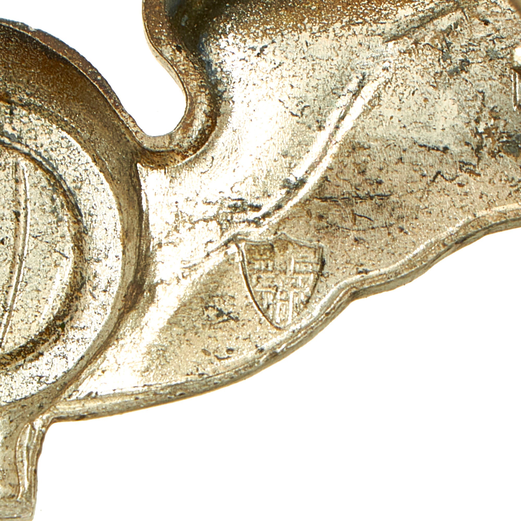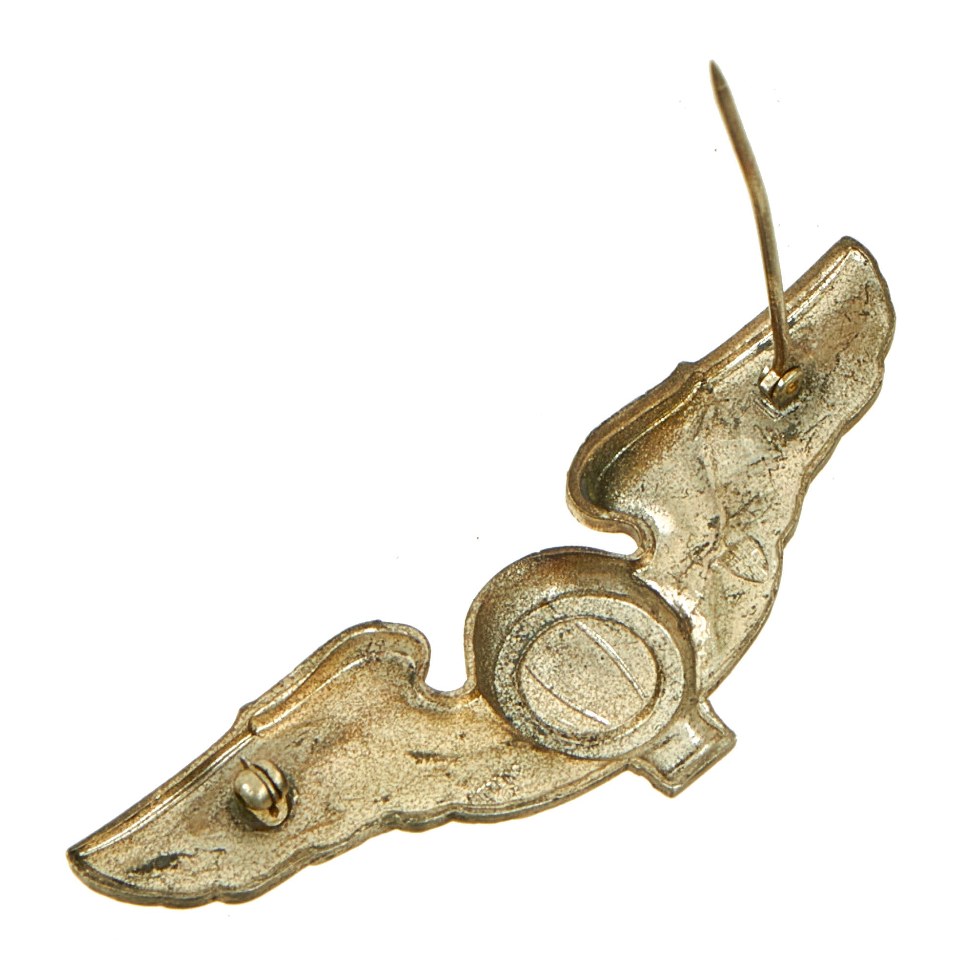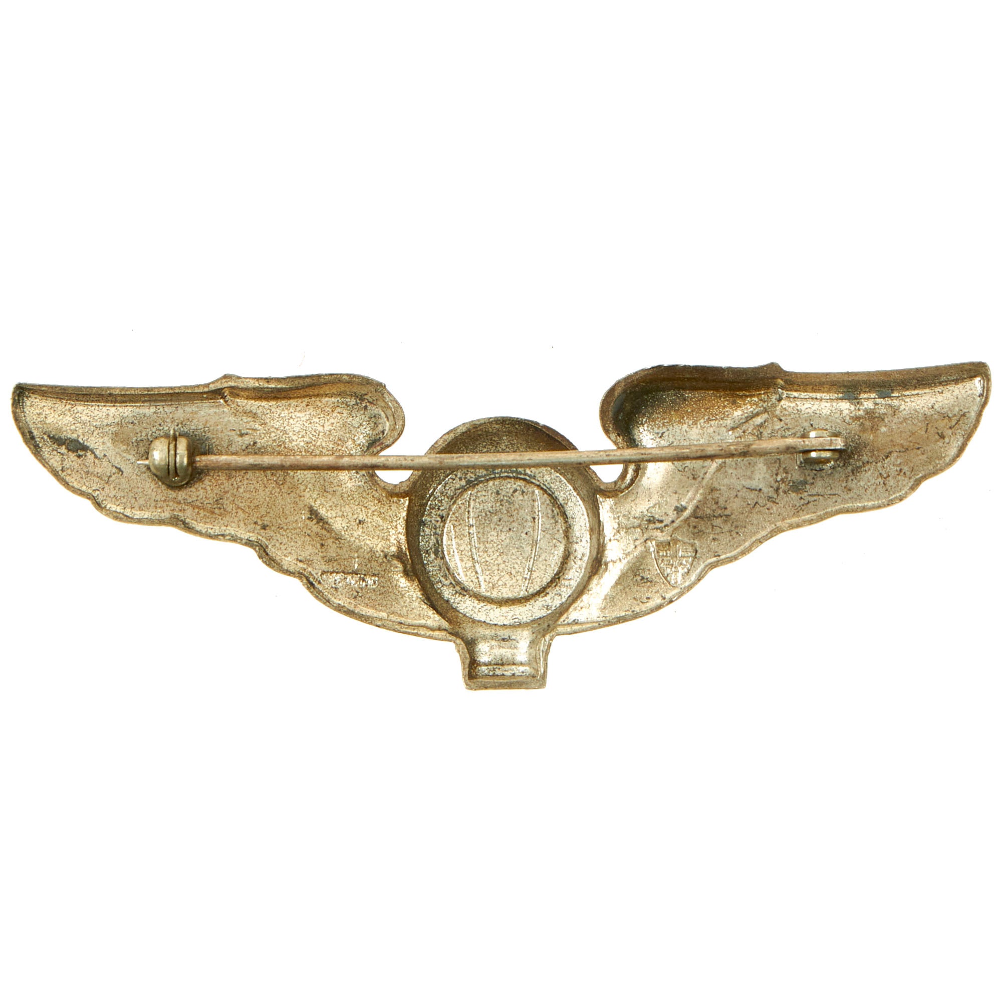 Original Item: Only One Available. Now this is a great badge of simple design. We just recently received this badge from a well renowned “Wings” collector and we couldn’t be more pleased. The badge itself has a lovely darkened and tarnished patina with much of the original silver finish still present. This example is a solid back type which is often less encountered than the “stamped” types.