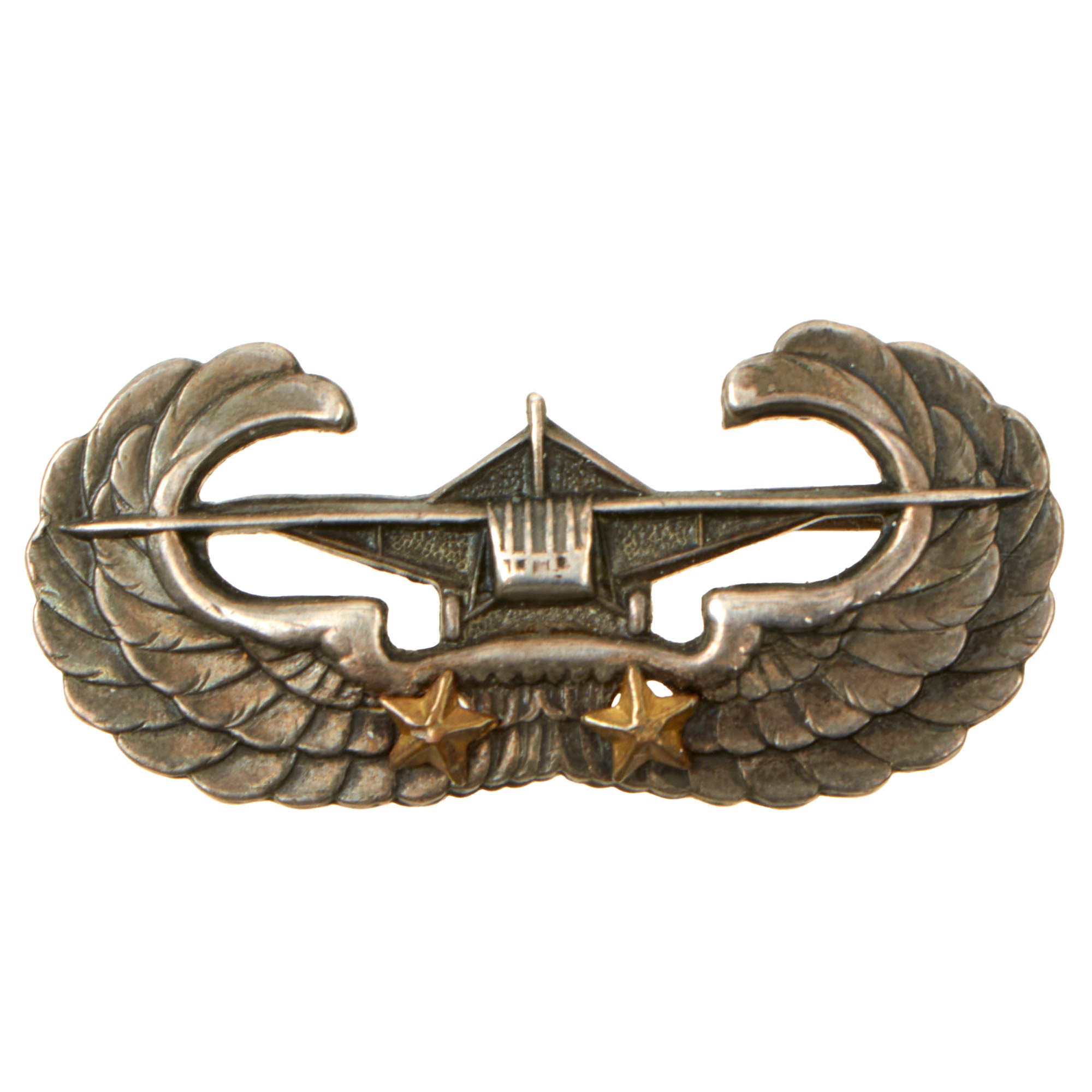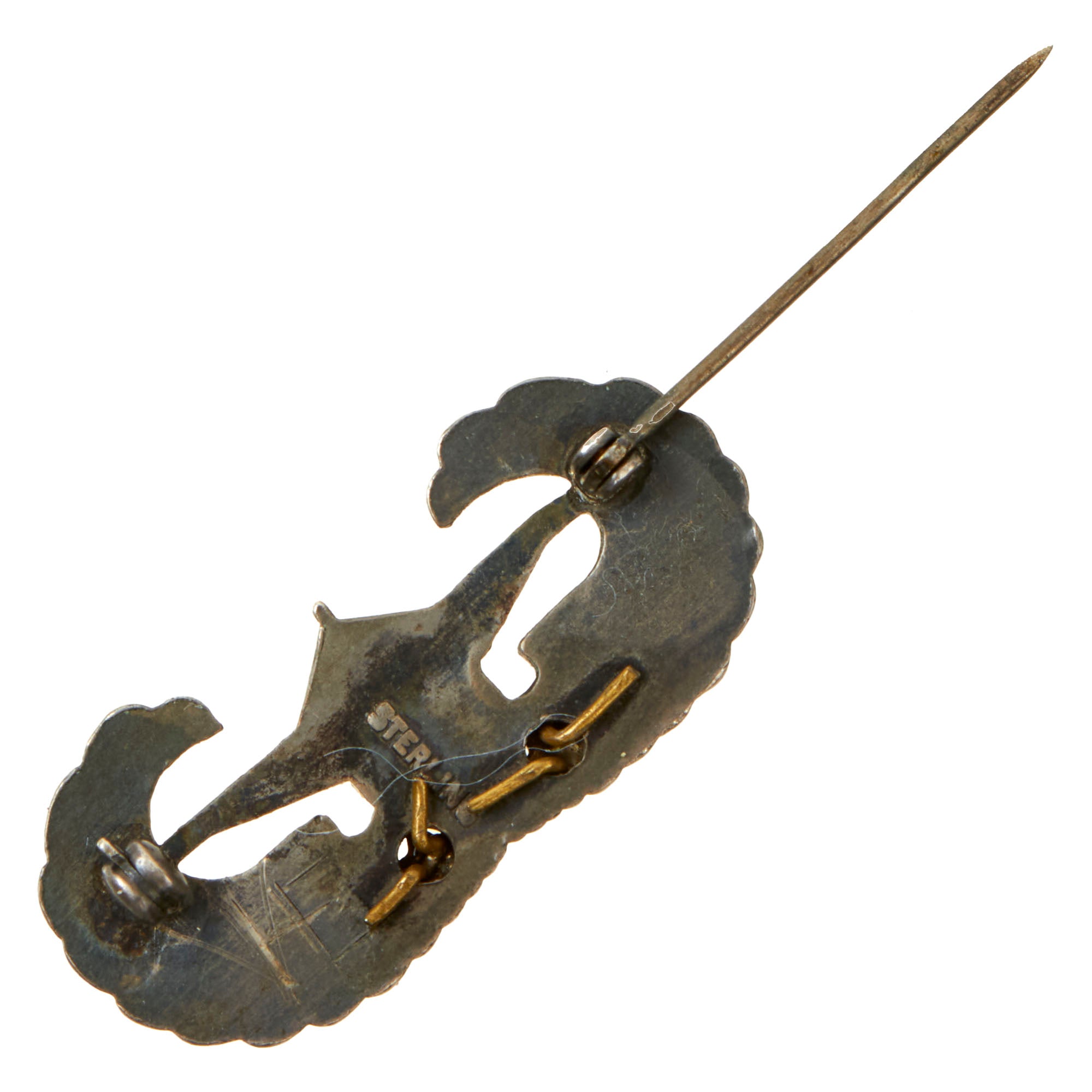 This example is really phenomenal as it has two period-applied campaign stars affixed to the front. The back is also engraved with the initials V.E. or W.E.. The badge is in excellent, fully functional condition with a lovely pin back and marked Sterling. Much of the original finish has been retained and now displays a lovely patina color. There appears to be no damage and still retains impeccable detail!