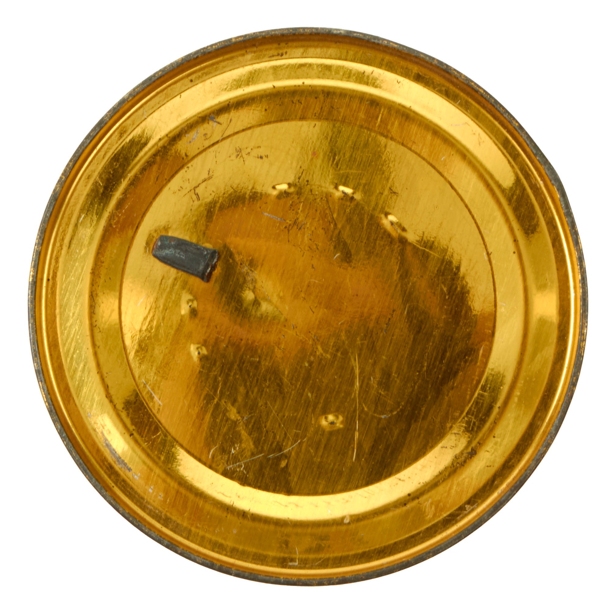 The can is in good condition. Minor dents and rust with the key missing from the bottom as is the case with almost all surviving cans. The can measures 3.5" H and 3.5" in diameter. The field ration can has a list on top that reads: