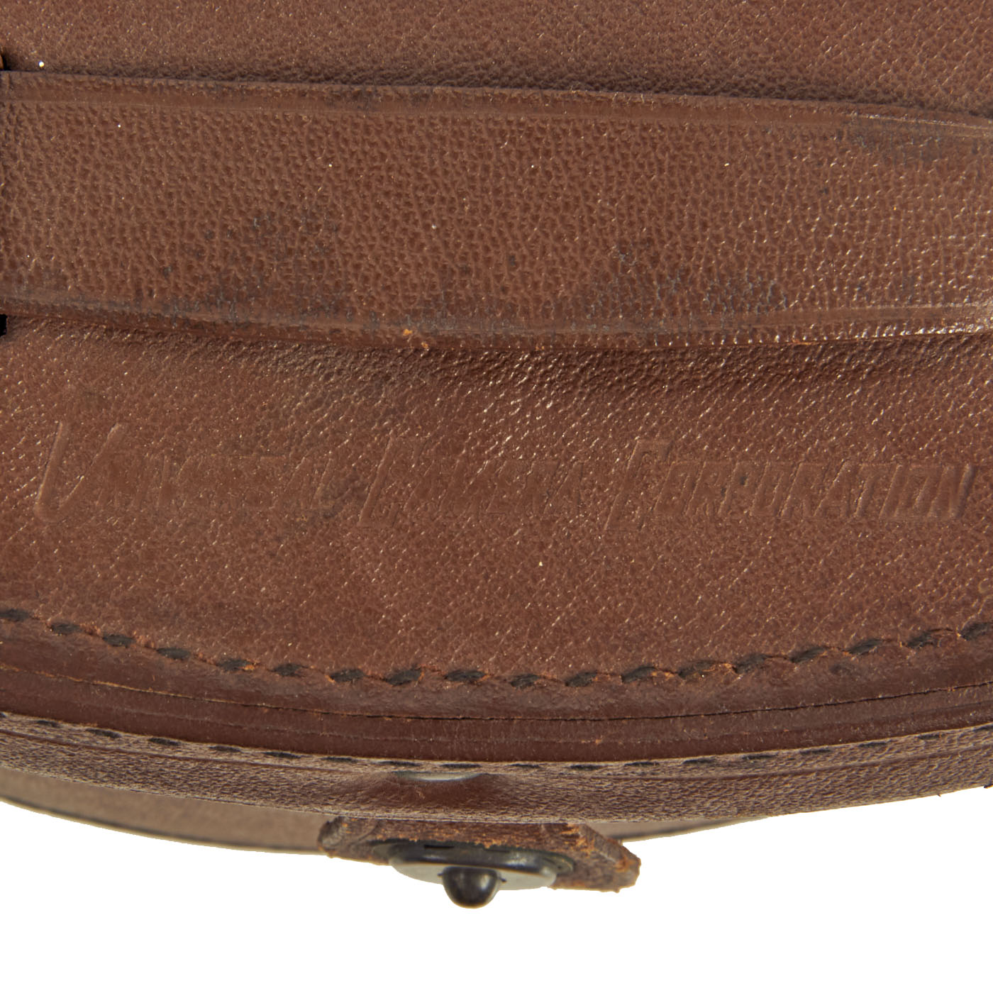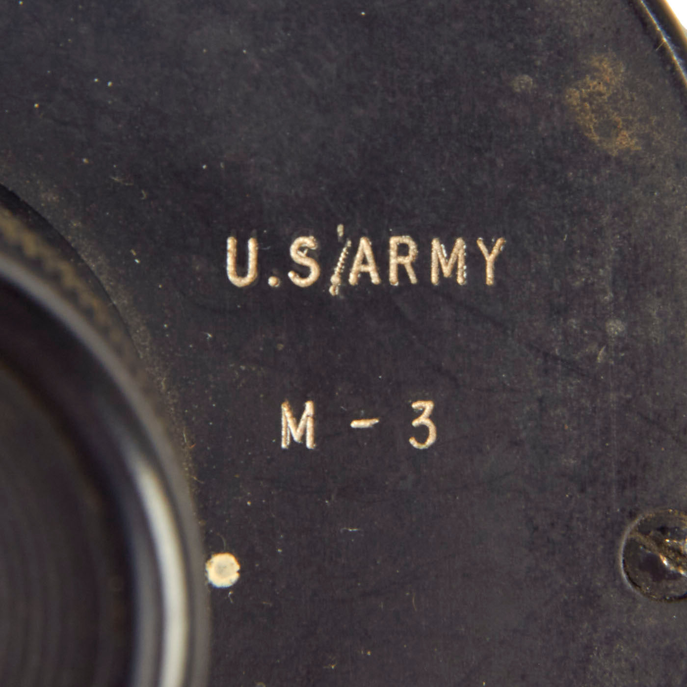 This example is marked clearly on the left plate with U.S. ARMY / M3, and the right plate is marked with the “Coated Optics” label and 6 x 30. On the end of the hinge they are marked with serial number A. 1485. This example is offered in very good condition with clear optics and an original brown leather CASE, CARRYING, M17, with the hard to find shoulder strap. These are often found without a case making this pair a hard to find set.