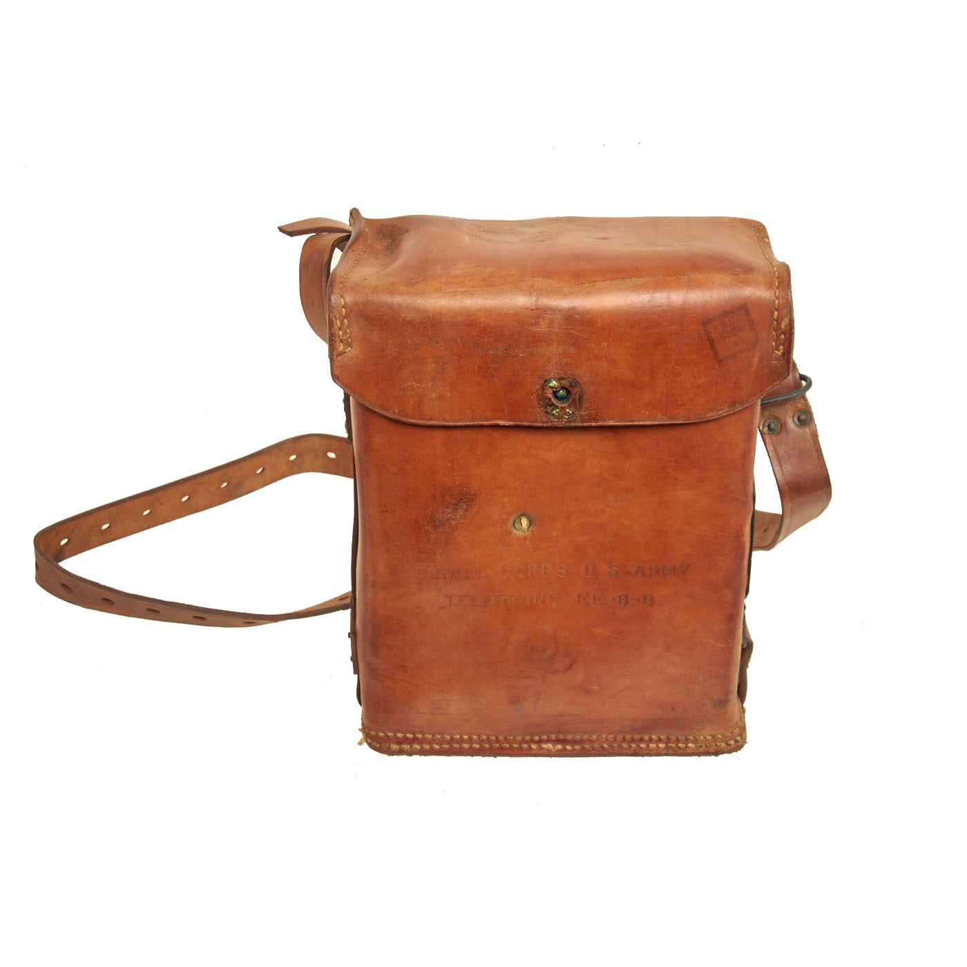 Original Items: Very Few Available. The EE-8 field telephone was used by the US Military from 1935 into the Vietnam War. It used a wired line with a maximum transmission distance of 7 miles. The EE-8 uses D cell batteries to power the electric signal that carries the signal through the wire to the other phone. It has a hand-cranked dynamo to generate the charge that rings the phone on the other end of the line. The case is leather, with fabric insulation covering the cord for the receiver. During World War II the phone was preferred to the radio, and the EE-8 was much more reliable than the backpack mounted Walkie-Talkie (SCR-300) and the Handy-Talkie (SCR-536). The phone line, which could be run through a switchboard from a command center, was often run by soldiers during combat situations.
