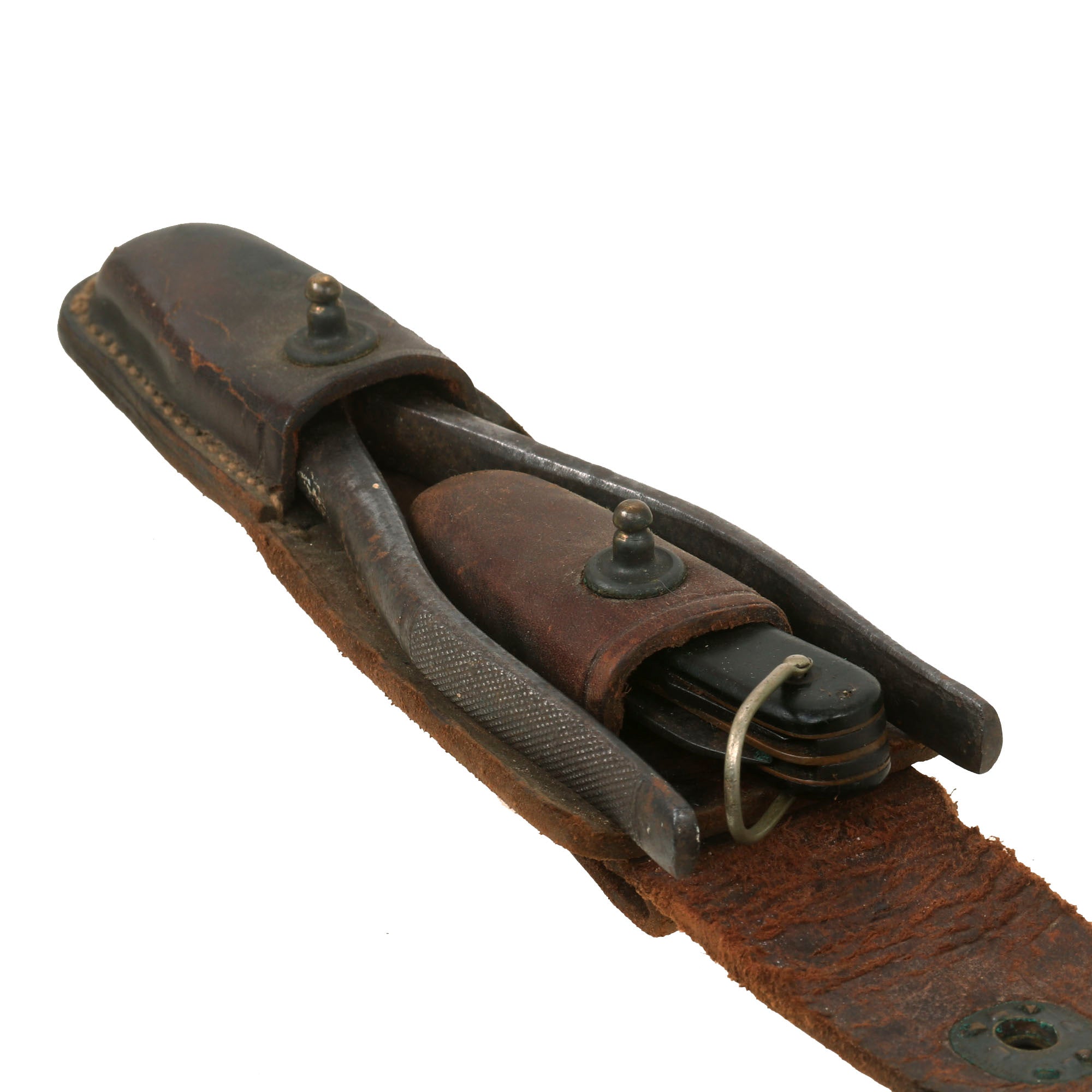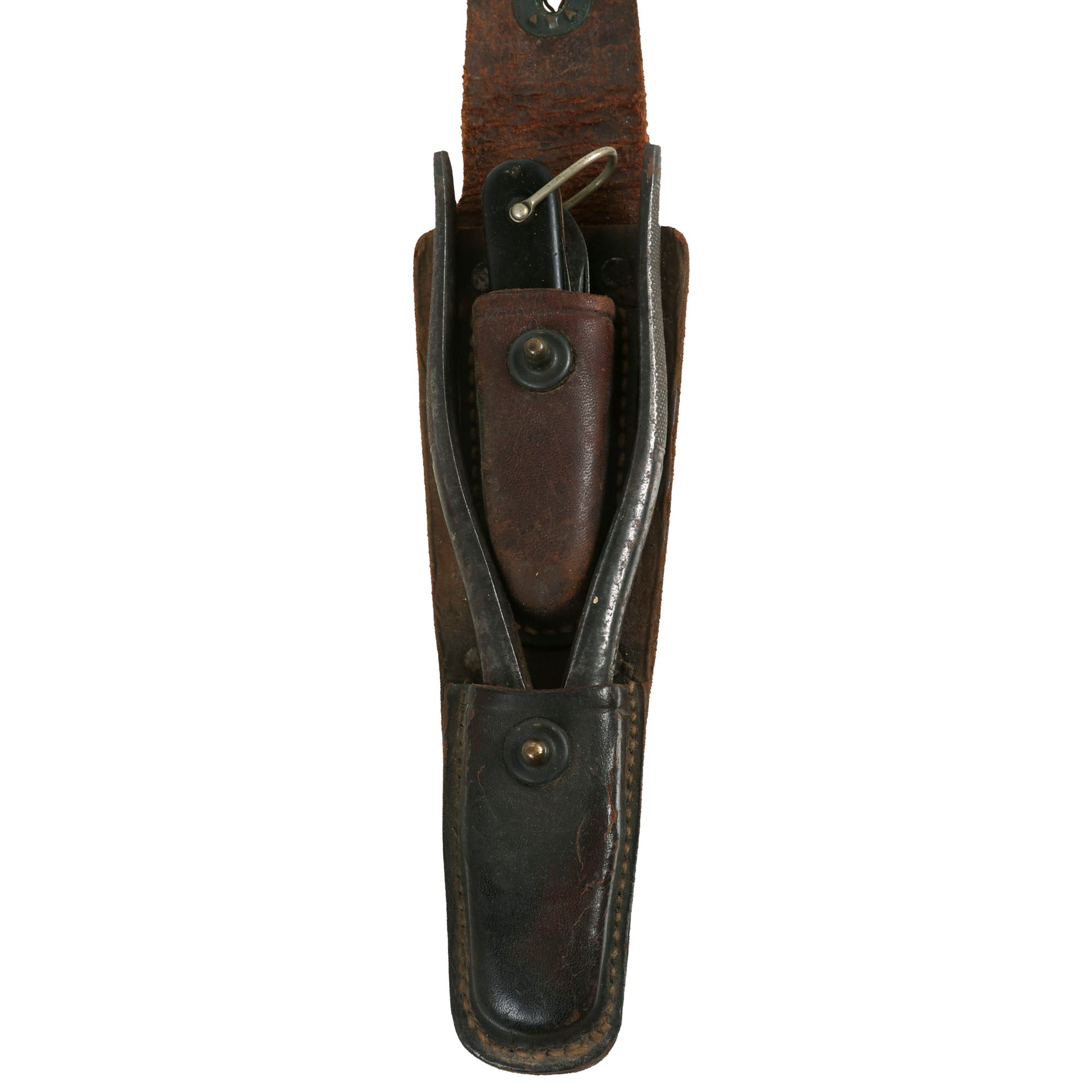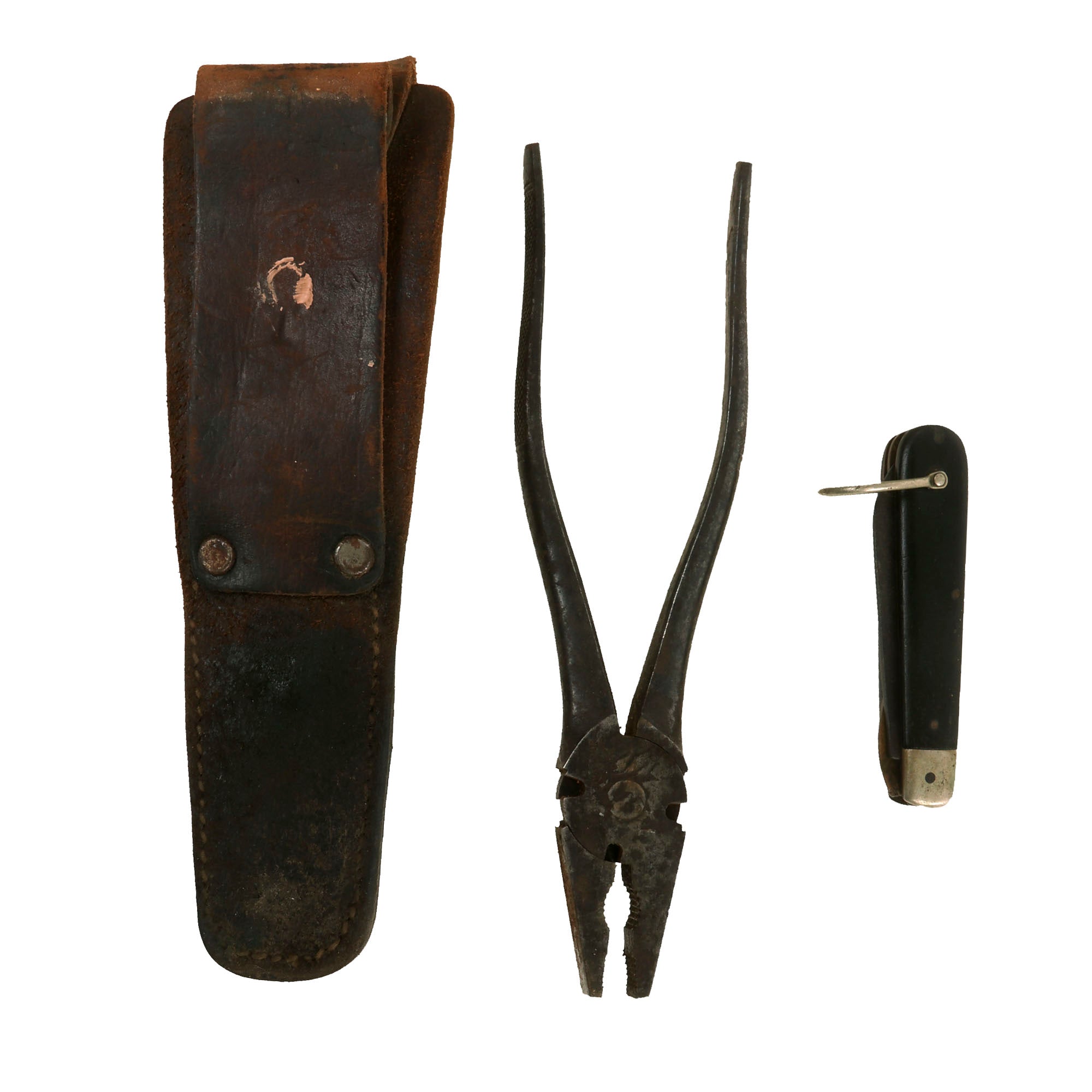 Original Items: Only One Set Available. This is an excellent example of a toolset that would have been critical when it came to wired communication during WWII and the following years. These kits were not only used by the Signal Corps but also by Engineers and Airborne Troops as well. This versatile set would have been used for basically anything requiring a knife and pliers, such as stripping wire, crimping blasting caps and so on. While some tool kits are marked as being for a specific element, in all reality anyone could have found use with these tools.