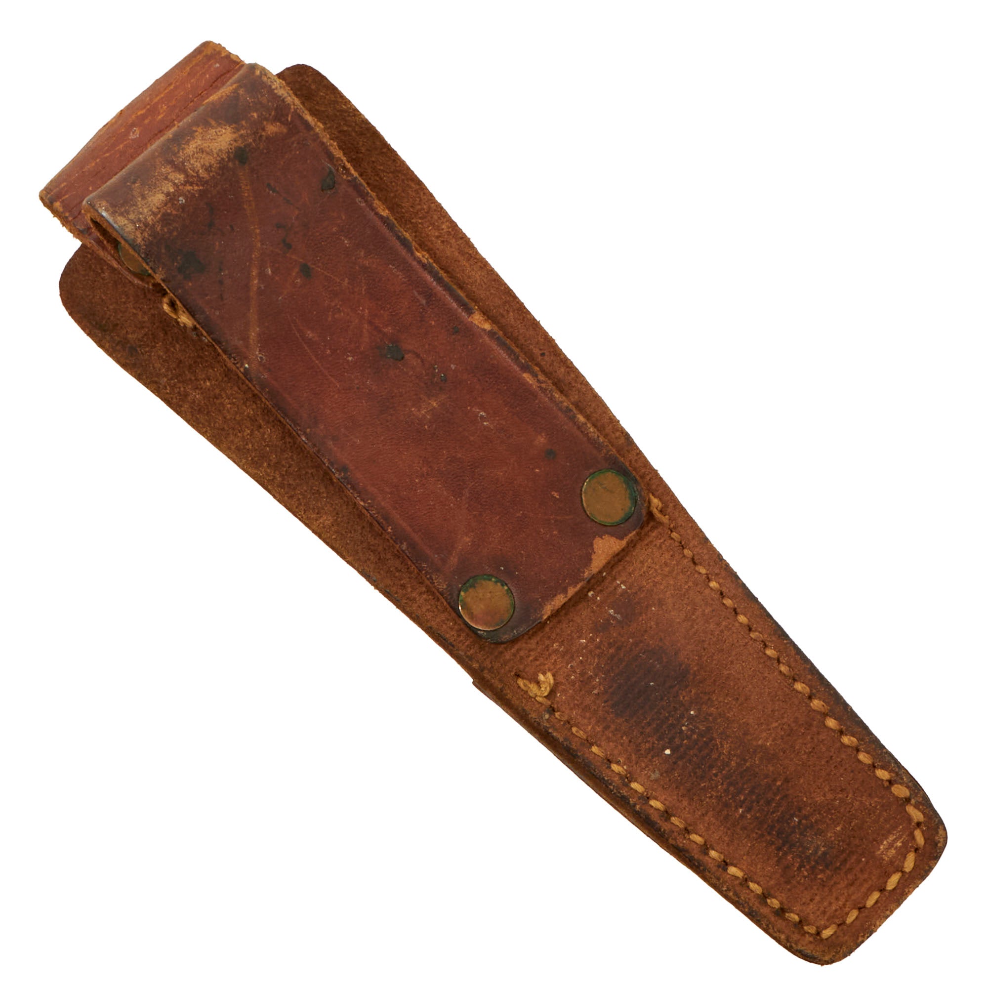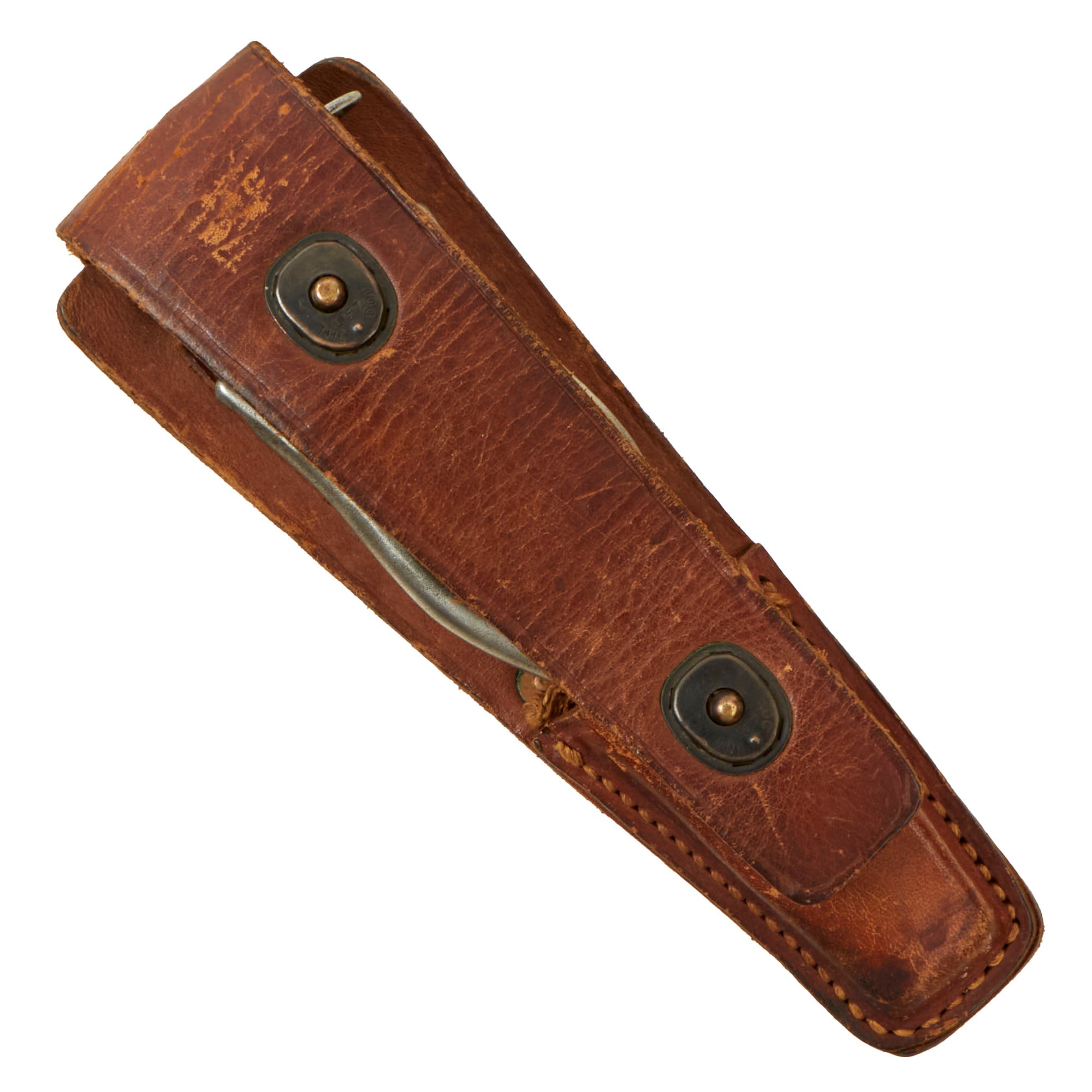 Lastly is the CS-31 type leather pouch that is unmarked. The leather is in good condition but the bottom of the knife pouch does have stitch loss present.