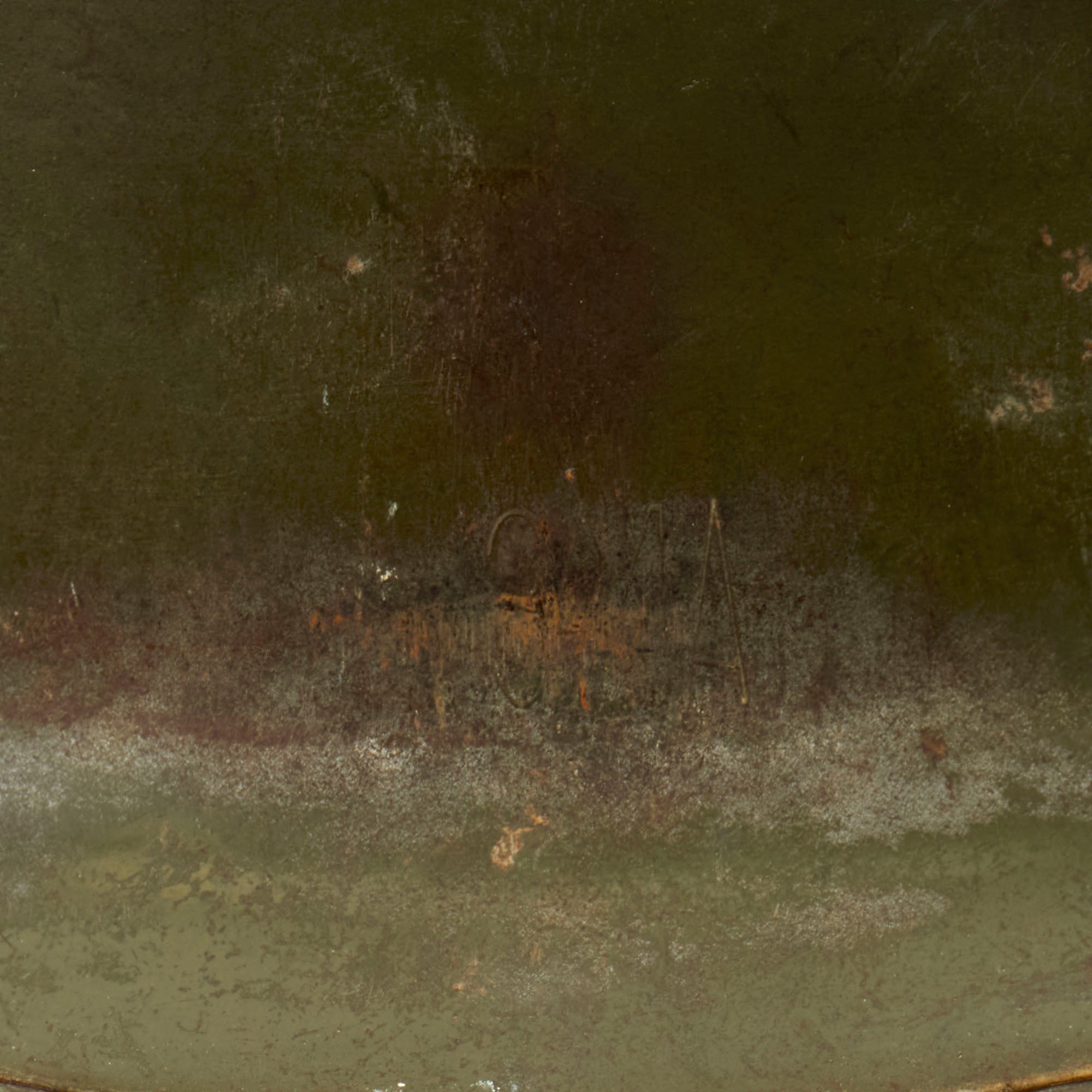 This very good condition M1 shell has correct mid war swivel chinstrap loops, called "bales," and a stainless steel rim with a front fully welded seam. These rims were both rust resistant and had "non-magnetic qualities" that reduced the chance of error readings when placed around certain sensitive equipment (such as a compass).