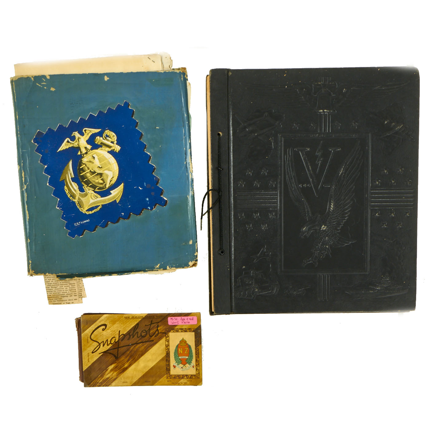 Original Items: Only One Lot of 3 Available. This is a wonderful assortment of photo albums and scrapbooks. The one scrapbook is named to a photographer who enlisted in the Marine Corps for a short period of time for the sole purpose of documenting the Marines at war. The scrapbook is filled with camera setting notes, newspaper clippings, magazine cutouts, official documents and more.