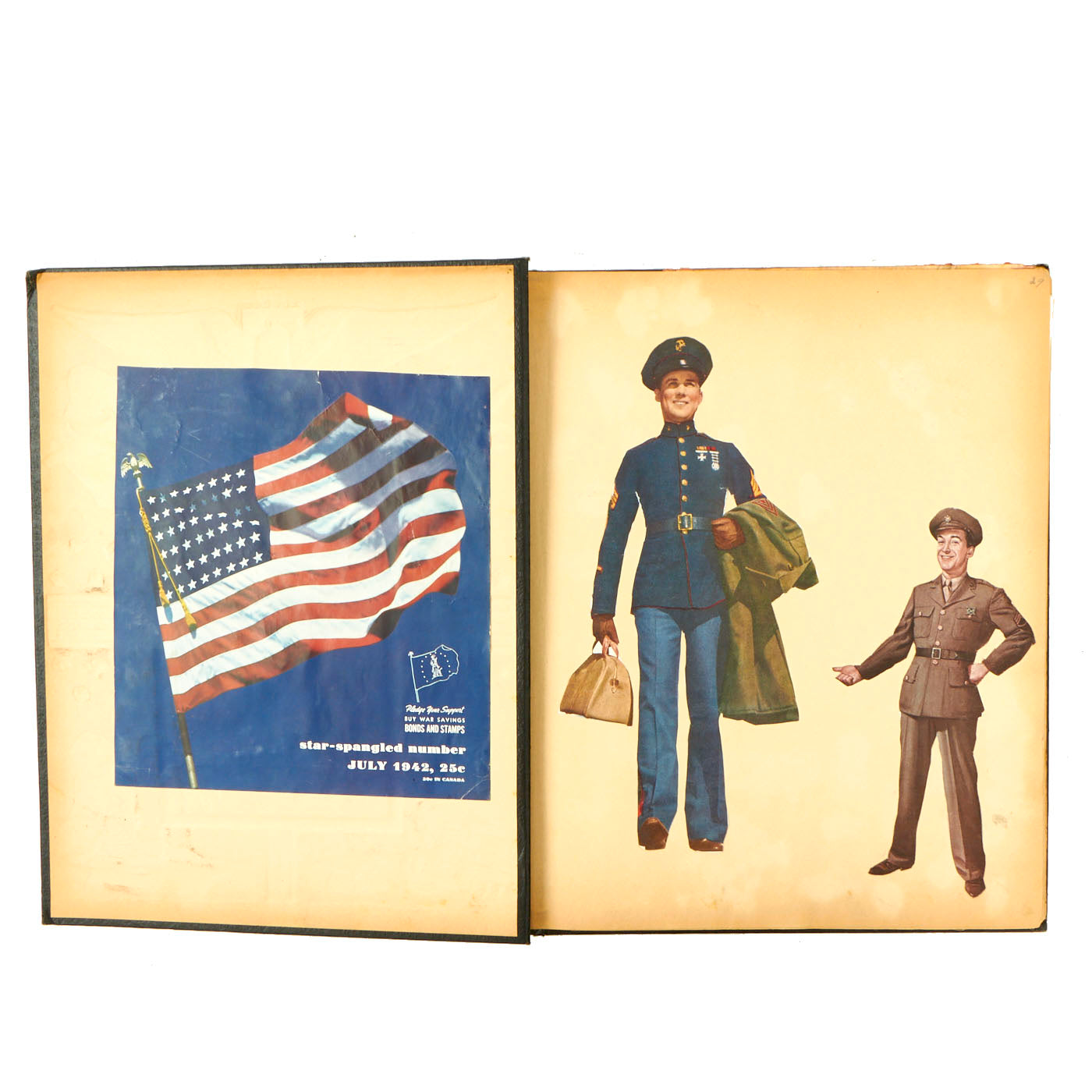 There are actual pictures scattered throughout two of the albums and the largest of the three is a war time era scrapbook with images cut from various magazines, newspapers and other periodicals. This is a massive pictorial collection and is perfect for the document and ephemera collector of WWII.