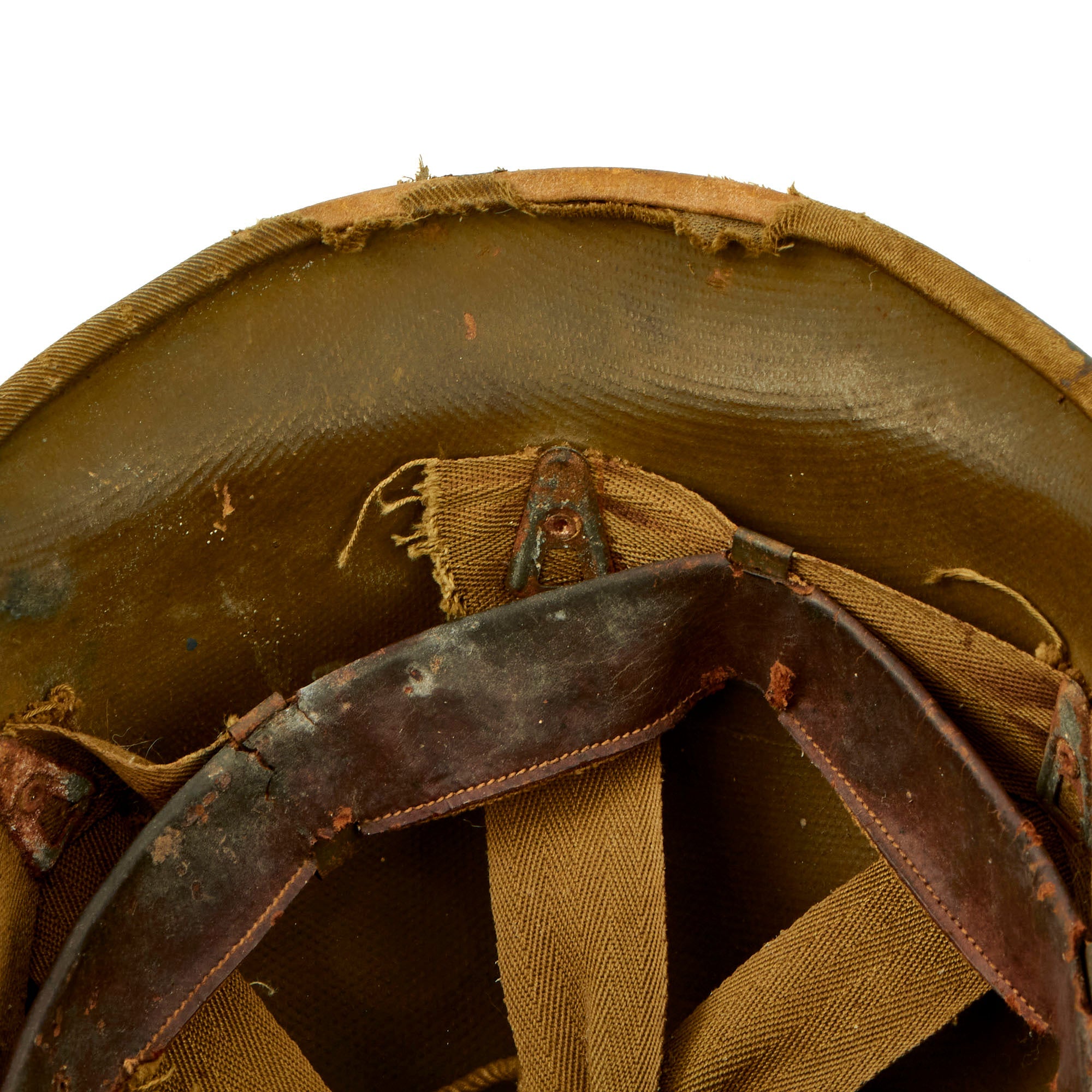 This is definitely a helmet that saw use during the war, but was not abused, giving it that great worn look. This would make a worthy addition to any WWII or Helmet collection.