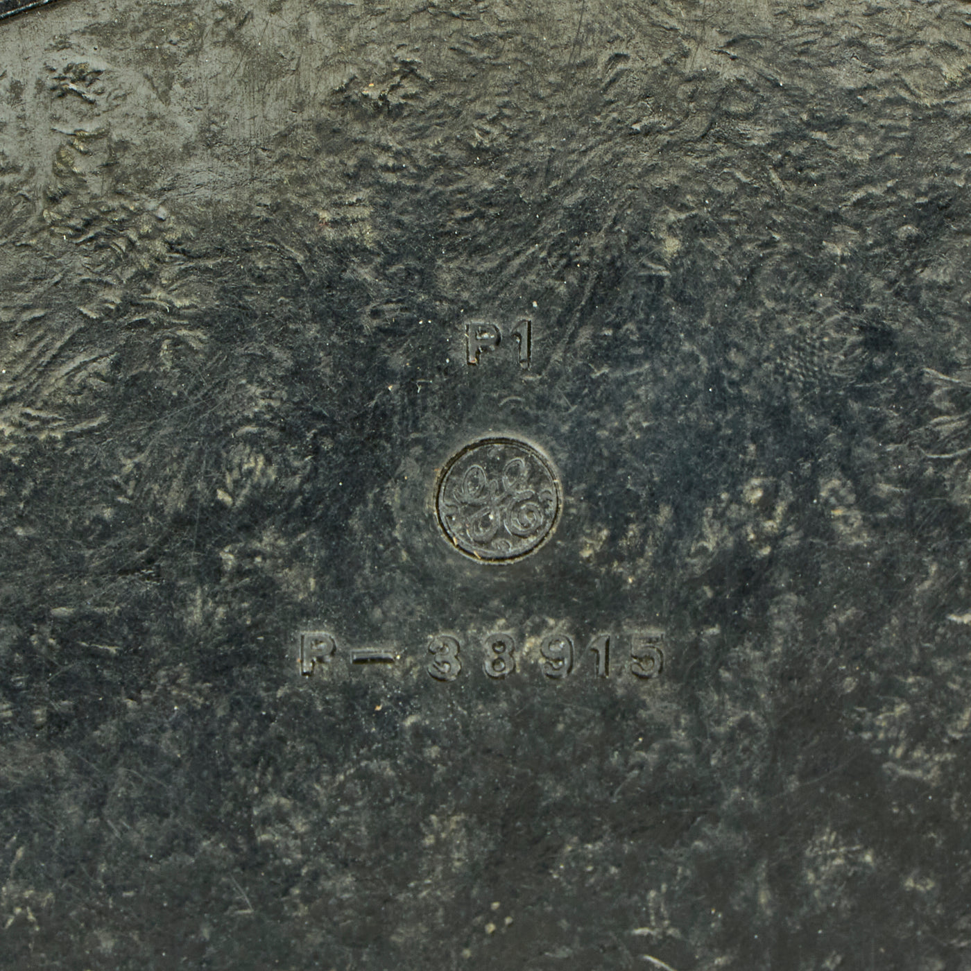 It's barometer face measures 4 7/8" in diameter and the back flange measures 6 ½ inches. The face is protected by a plexiglass cover with a movable pointer. The POINTER SET calibration screw is located on the back of the case and is marked P1 / P-38915 with a GE logo.