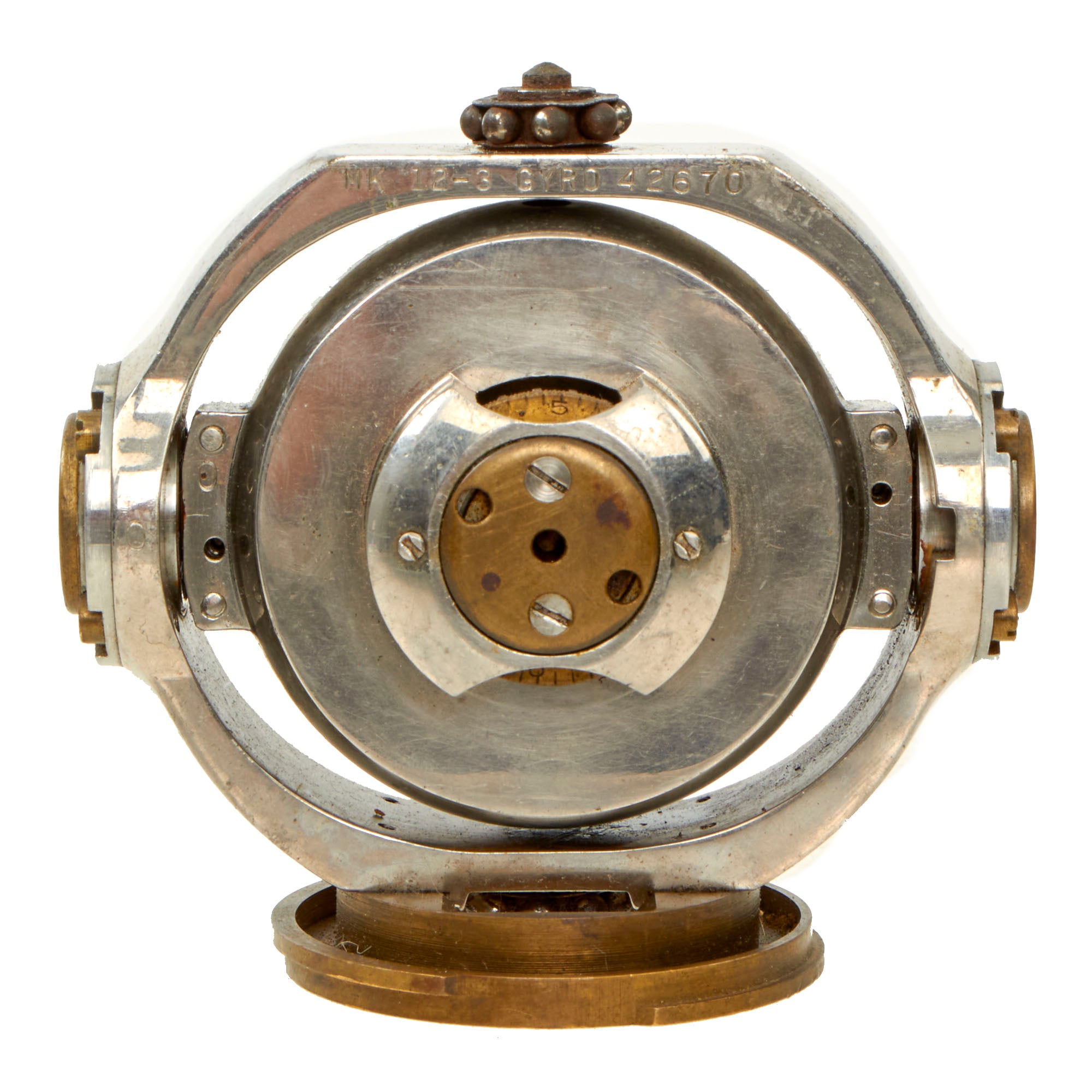 Original Item: Only One available. Here we have a fantastic piece of WWII and U.S. Navy history: the gyroscope for a WWII Mark 14 Torpedo, offered in wonderful condition. The Mk14 was the main torpedo used by U.S. Navy Submarines for most of the war, which was subsequently in service for decades afterwards. It was a "wet-heater" design torpedo propelled by alcohol and a steam turbine, and the gyroscope was a critical piece of the design, responsible for correcting the effects of turbulence in the water so that the aim remained true.