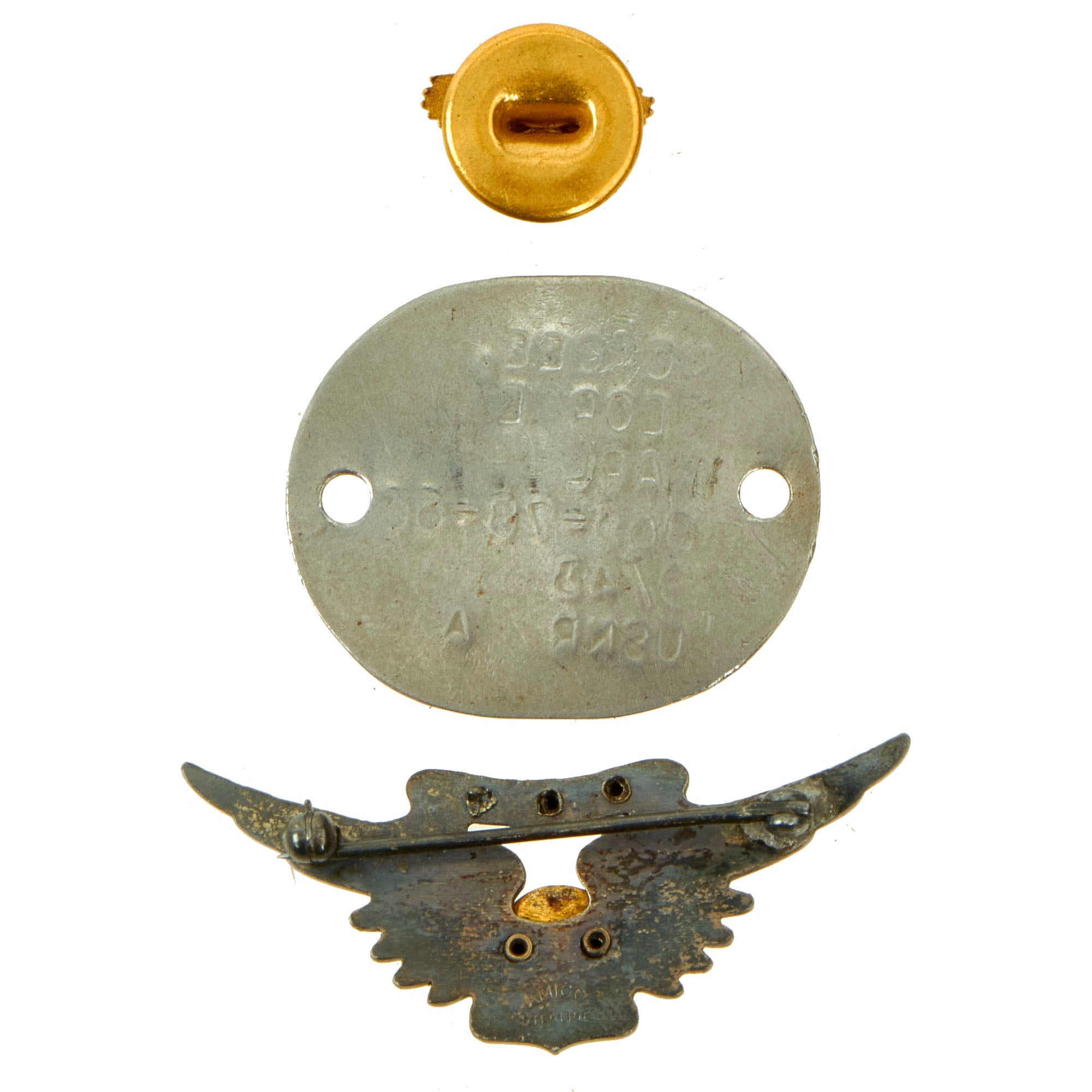 - USNR P1940 Dog Tag: In World War II members of the U.S. Navy and Marine Corps wore Dog Tags of a different shape than the Army and Air Force. They were oval shaped, had either one (P1917) or two (P1940) holes, and were engraved or etched rather than debossed or stamped.