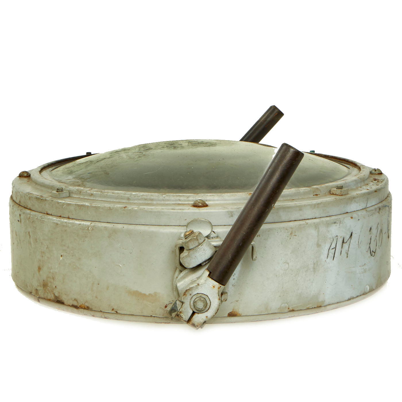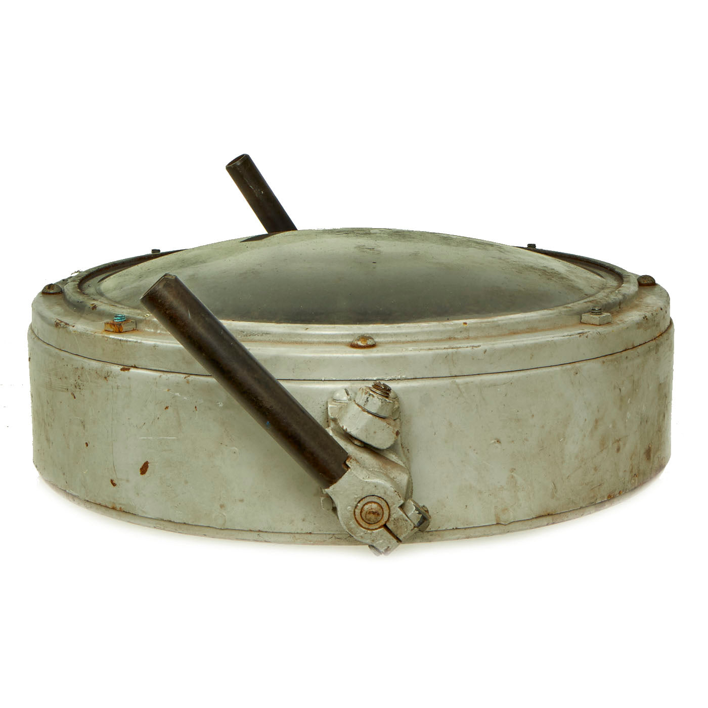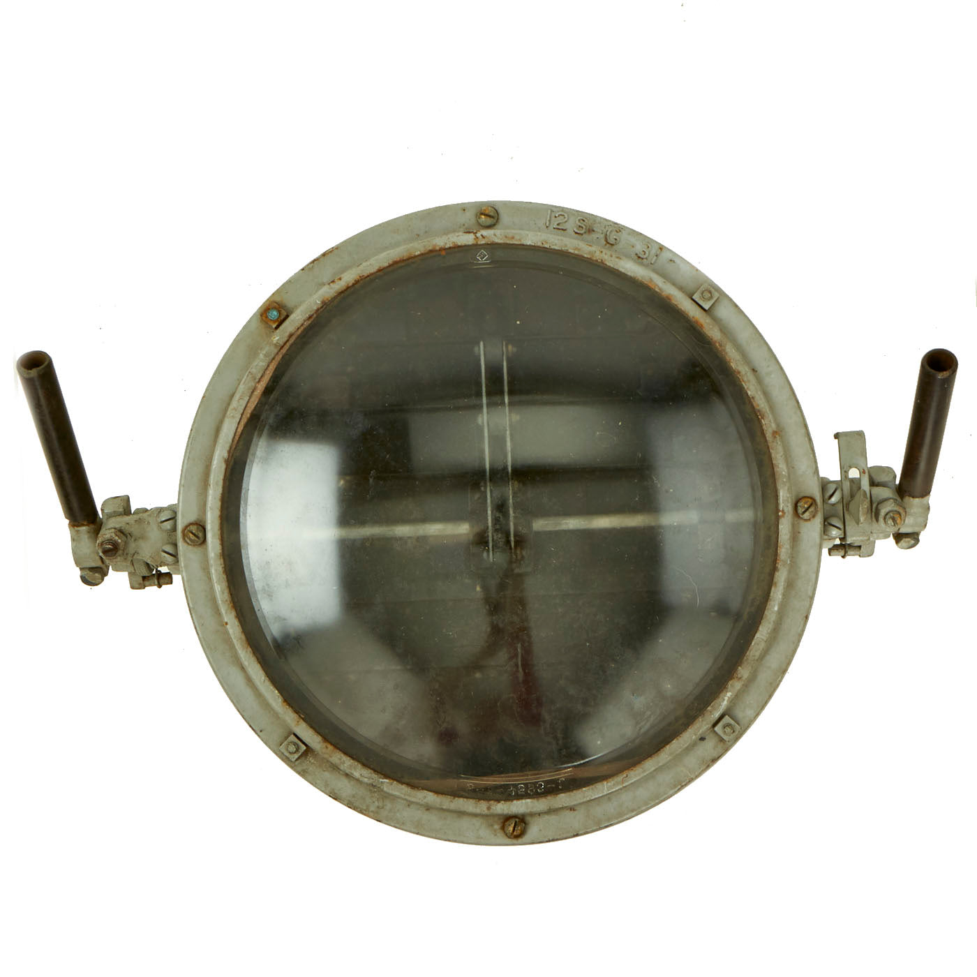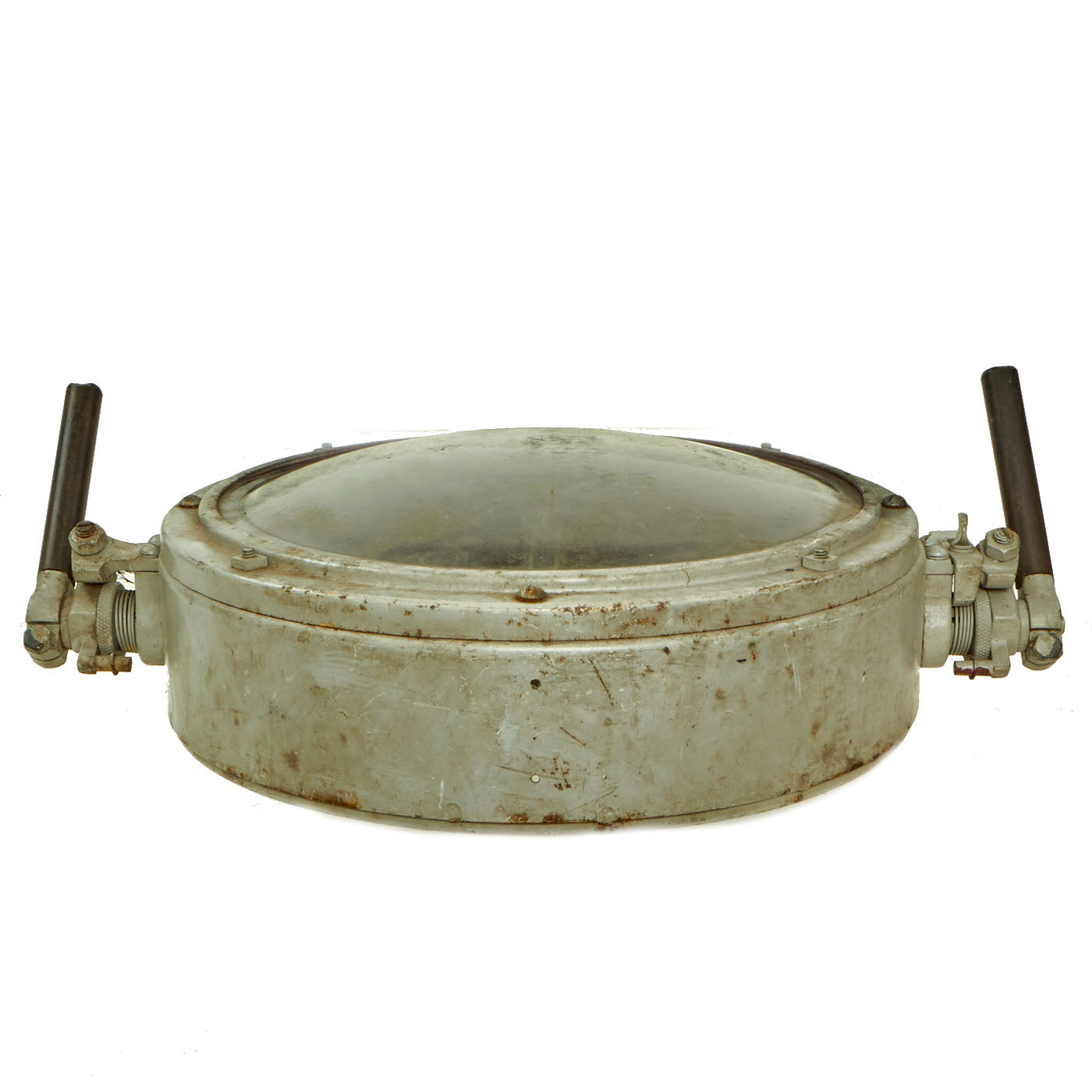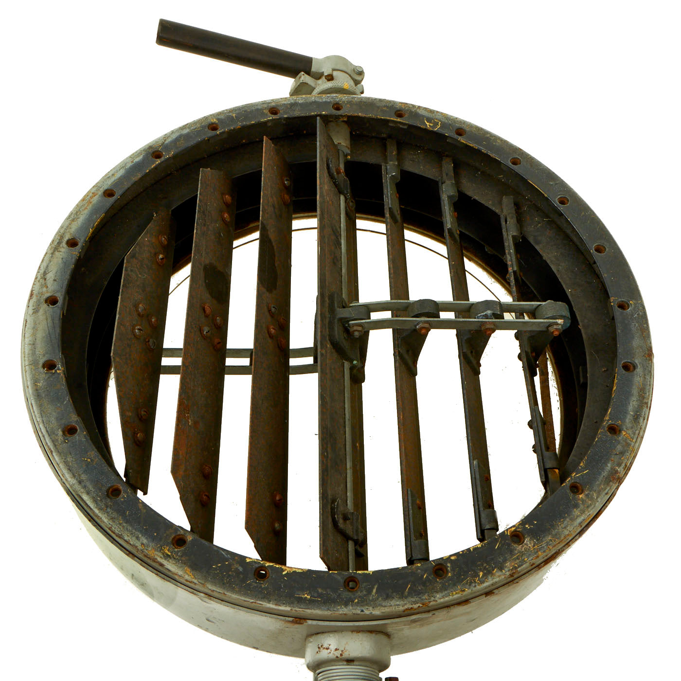 This shutter assembly measures approximately 15” across and would have been used on a pedestal mounted lamp. This is just the shutter assembly that was removed from the actual light, more than likely when the light or ship was decommissioned this was salvaged and saved.