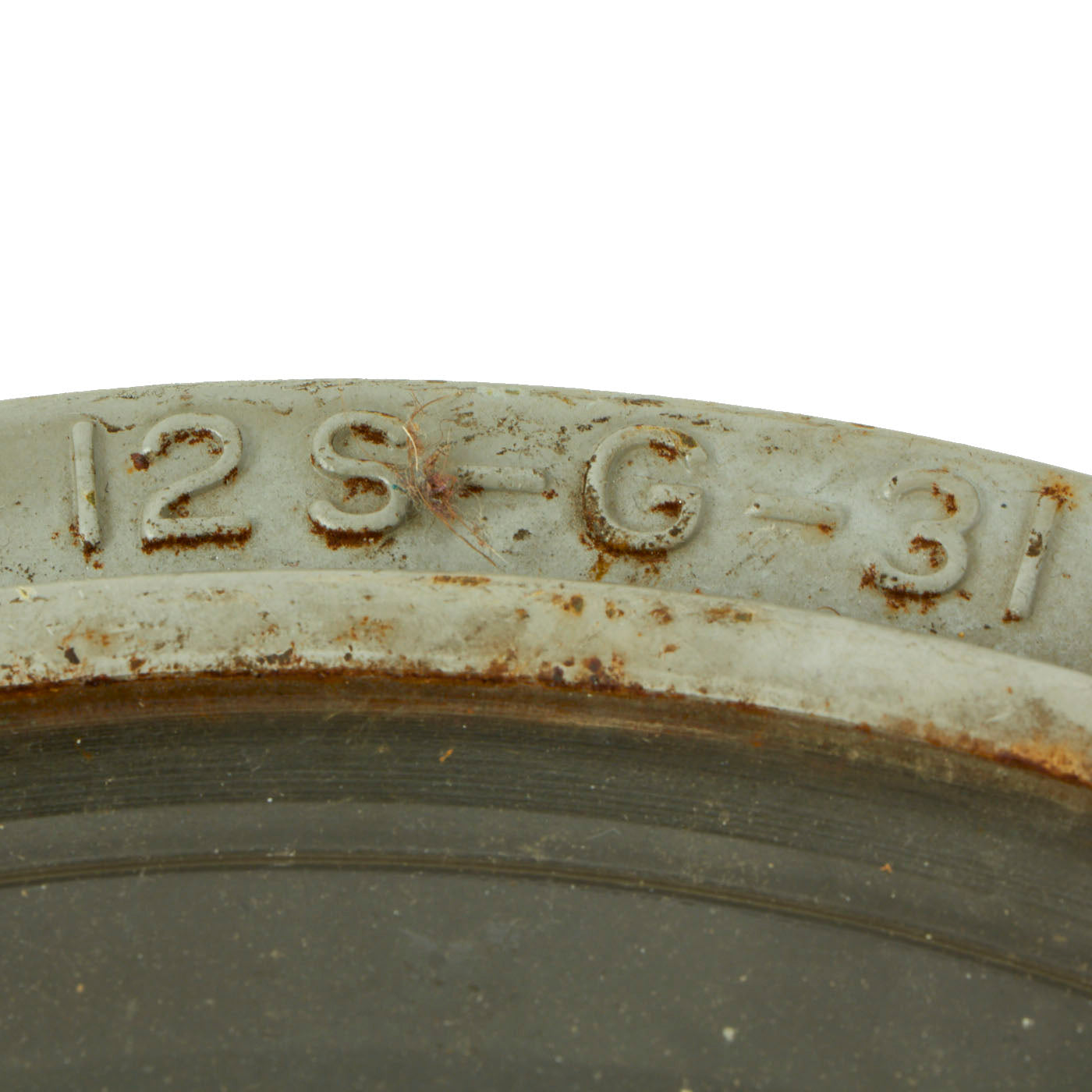 The condition is really good with an unbroken lens and functioning shutters. We can not find any marking stamped into the assembly.
