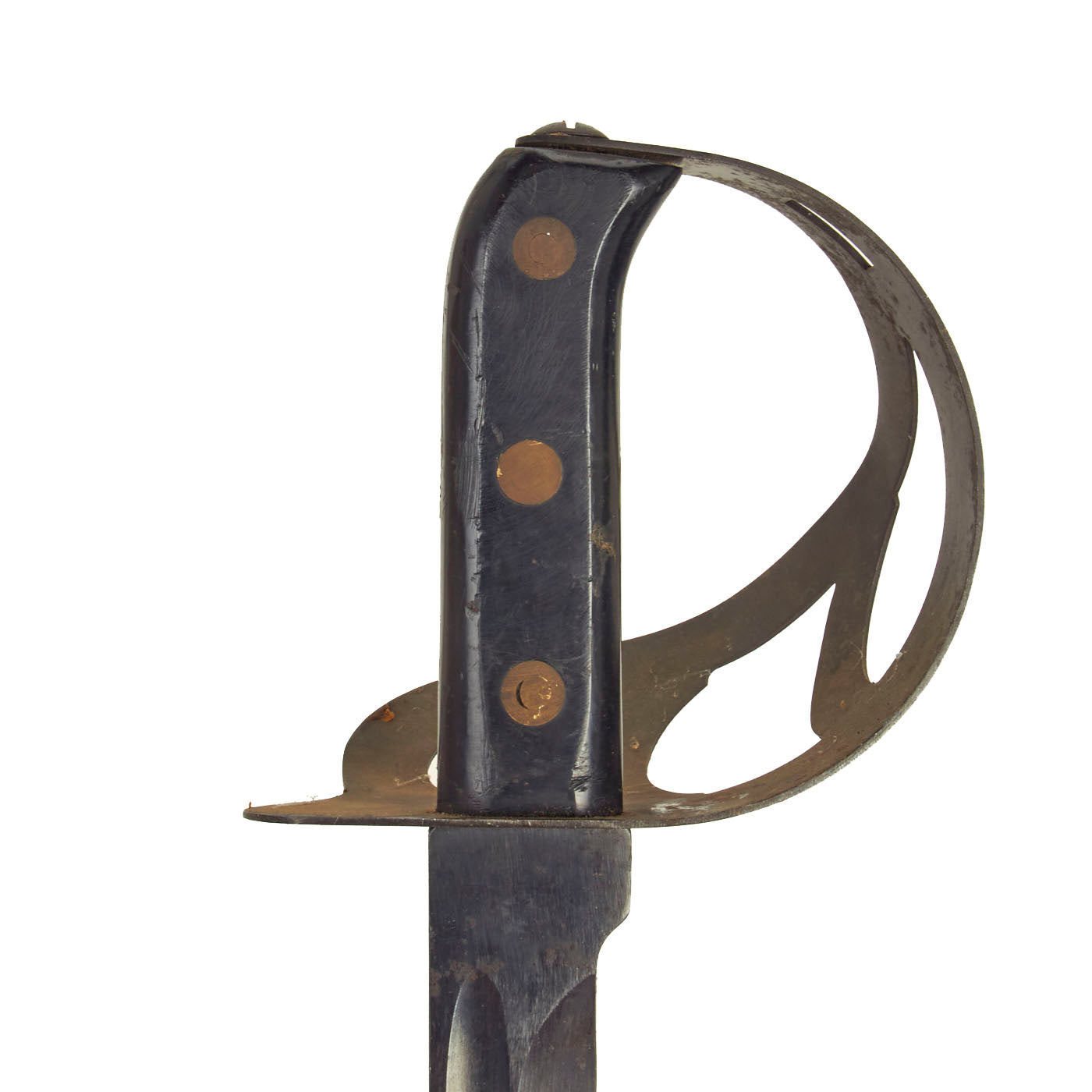 Once the basic design decision was made, the Navy added a few enhancements such as the japanned steel hilt with a full half basket cup like its predecessor the M1850, (as opposed to the Klewang's open half cup or the M1860's brass cup), and an all wood squarish cross-hatched grip. But apart from that there is little essential distinctive difference between the US Navy's new M1917 and the Dutch Klewang M1911.