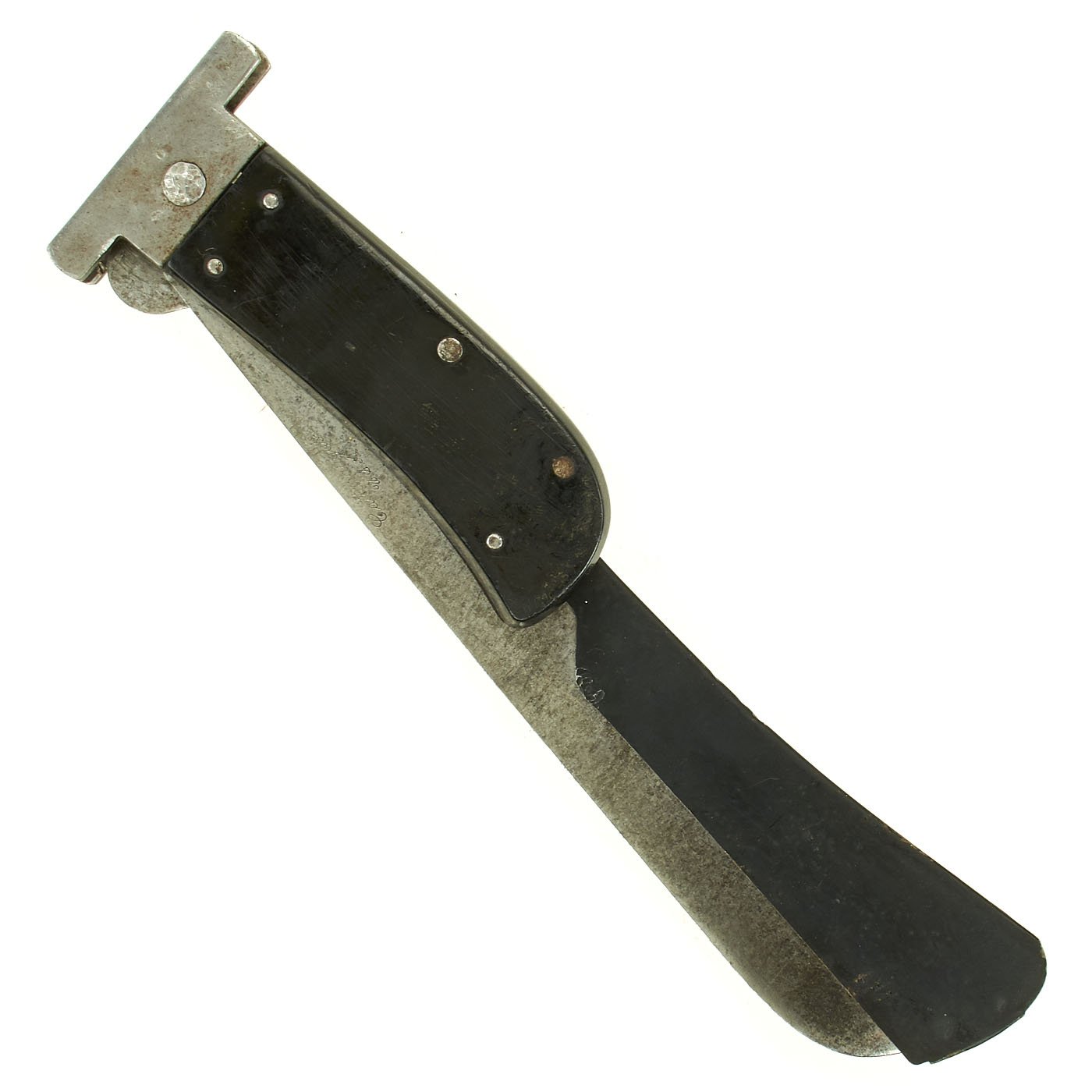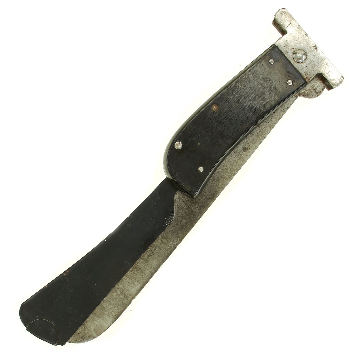 Original Item: Only One Available. In 1942, the U.S. Army Air Force adopted a Folding Machete for use in the B-2 and B-4 Bail out kits. This machete was designed to replace the Model 18 Collins machete, which took up a lot of space in the emergency kits. The folding machete is only 11 inches long when folded up.