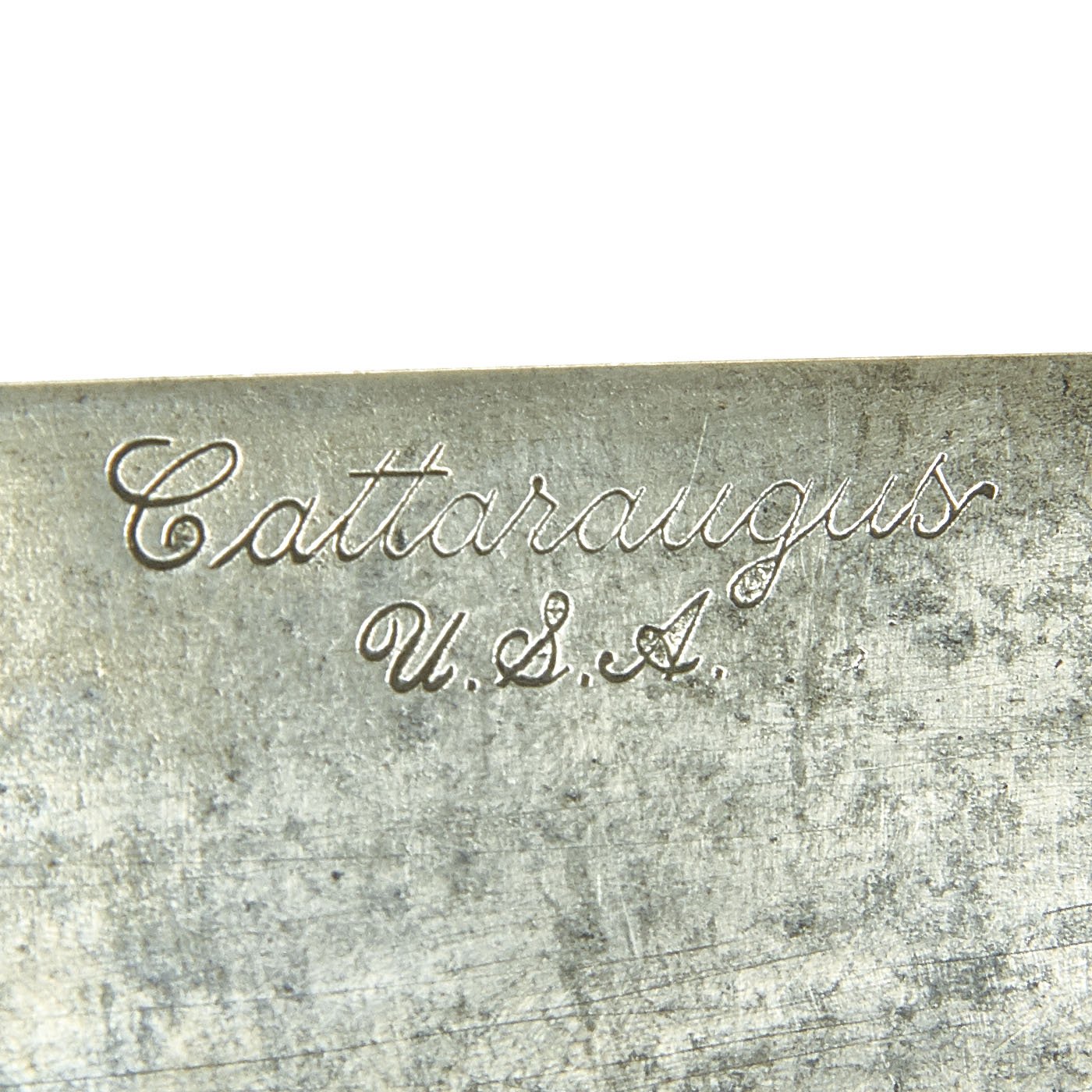 Case, Camillus, and Cattaraugus were the 3 makers contracted by the USAAF to manufacture these folding machetes. This example is clearly marked on the blade with Cattaraugus / U.S.A. in script lettering, indicating manufacture by Cattaraugus Cutlery Co., located in Little Valley, NY. The company, founded in 1886, manufactured many knives during WWII. Interestingly, W.R. Case and his brothers were involved in the founding, but later branched off to form their own company, W. R. Case & Sons Cutlery Co, in 1905.
