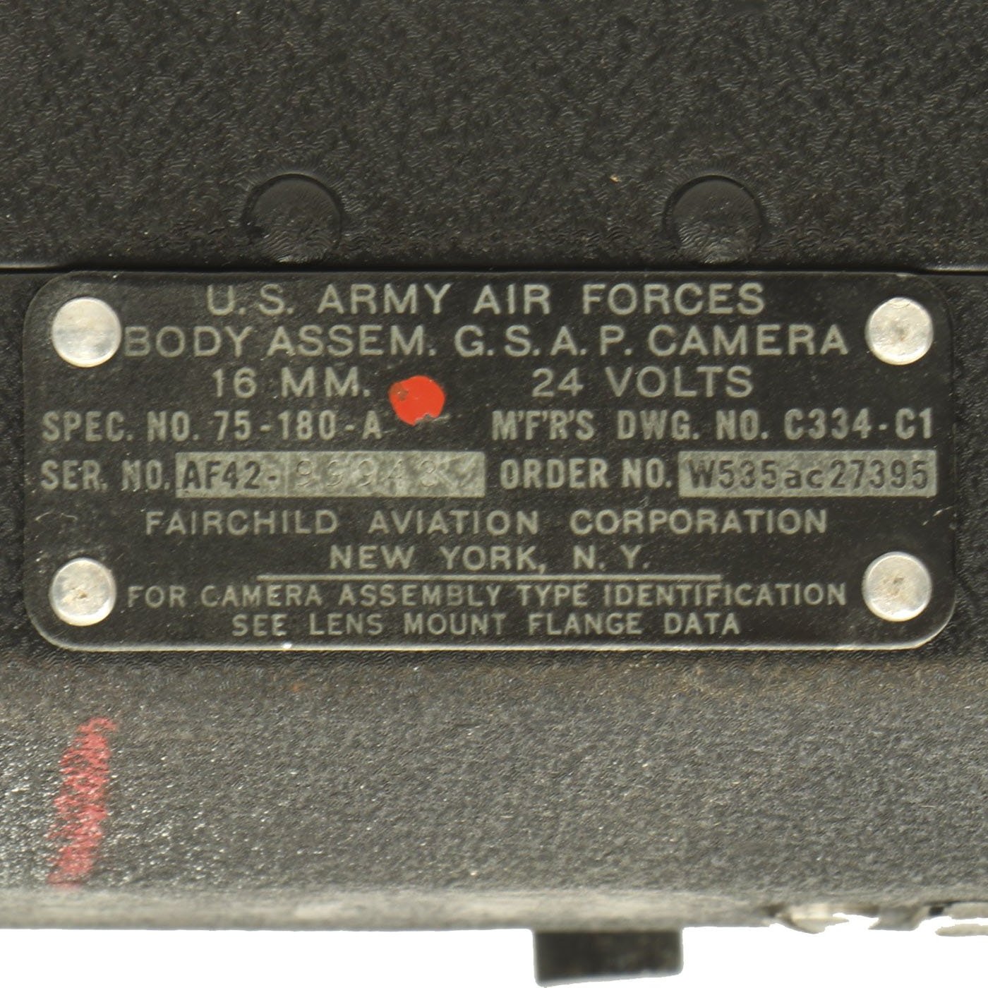 Original Item: Only One Available. Manufactured in 1944 by Fairchild Camera & Instrument New York N.Y. USA. Used by U.S. ,Canada and other countries during World War II to produce movies of the missions flown. While there are still some of these around none that I could find had the manual engage override red button beside the lens. This is a type AN-N6 Spec. No 75-366 Mfrrs. Ass'y No. E334-BF4 SN/ AF44-36189. It has a rare B & L Optical CO. U.S.A. Type-V 35mm 3.5 Lens. Another example can be found at the Smithsonian Air & Space Museum at this link.