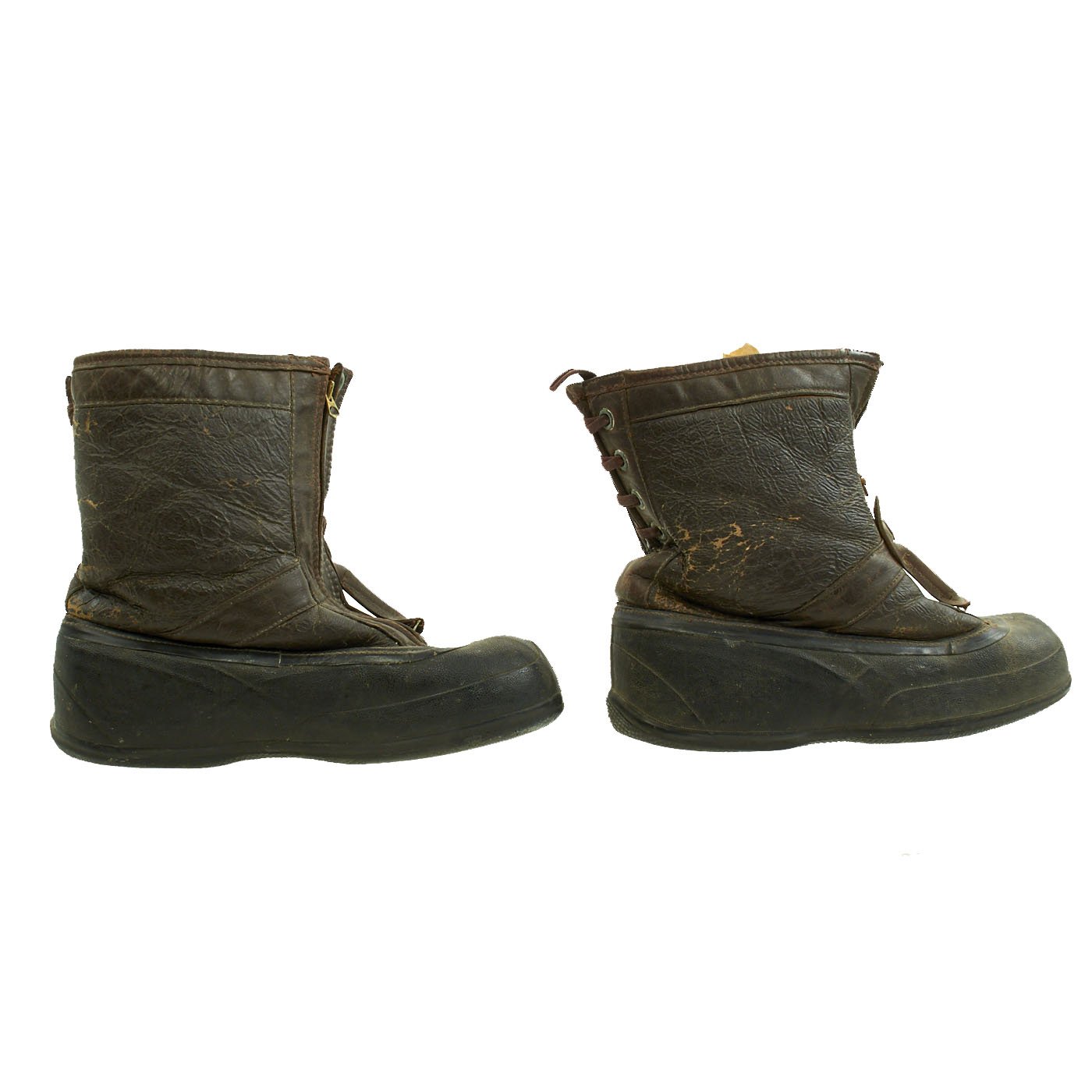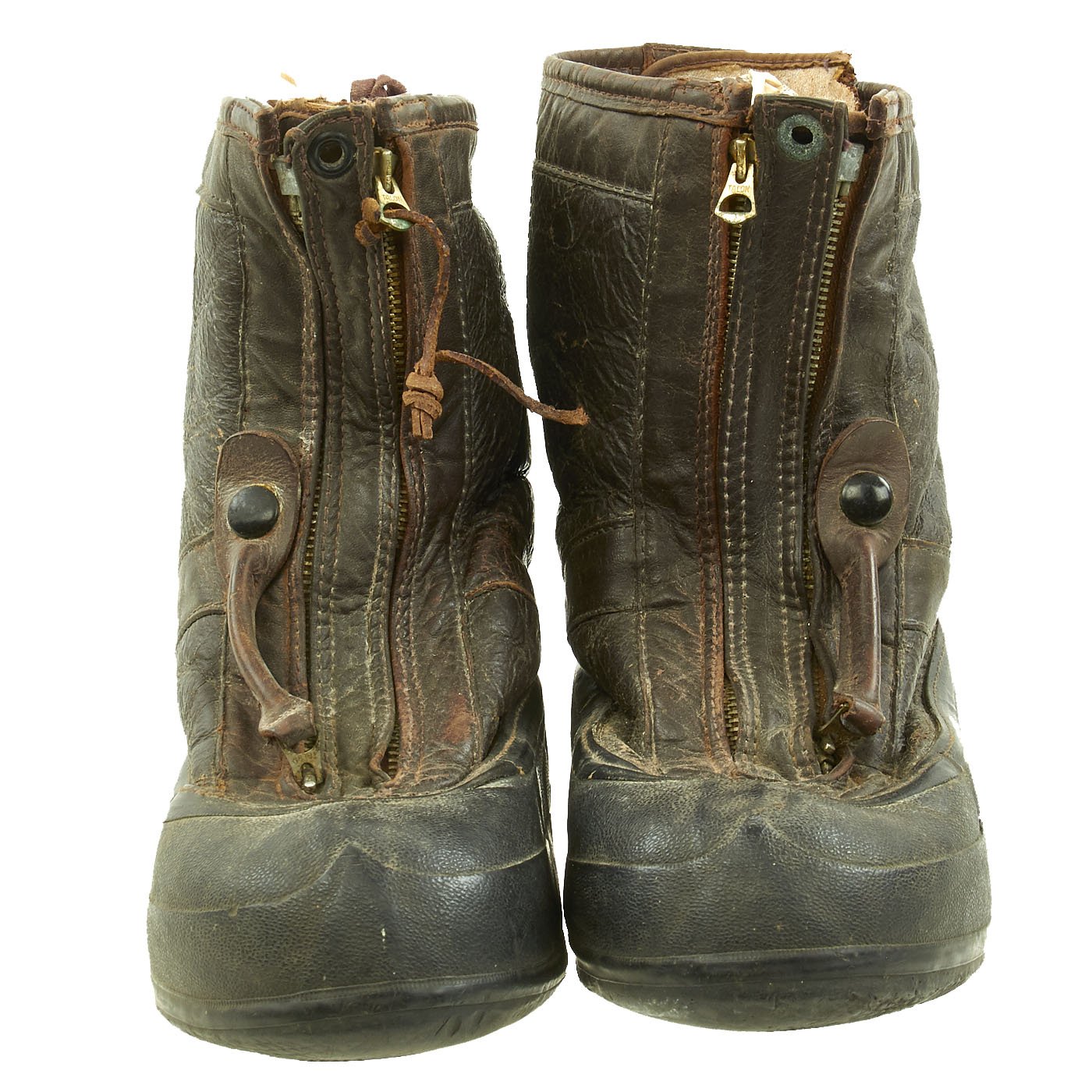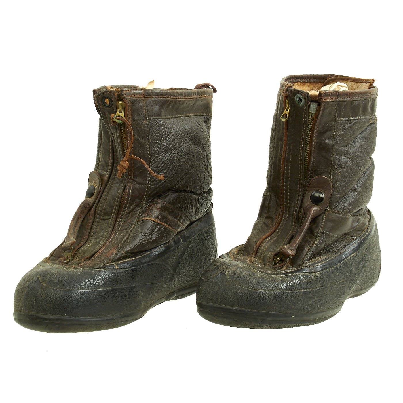 - Boots are in the style of the Type A-6A Winter Flying Boot and bear original tags on the tounge. Feature shearling lining, ribber soles and functional zippers size is approximately a U.S. 10