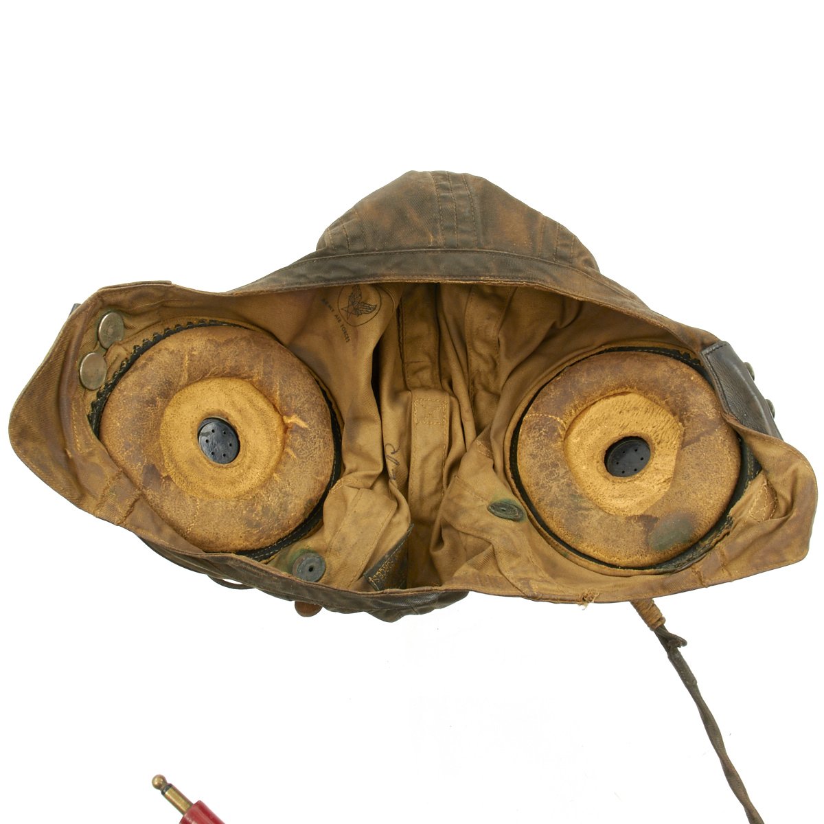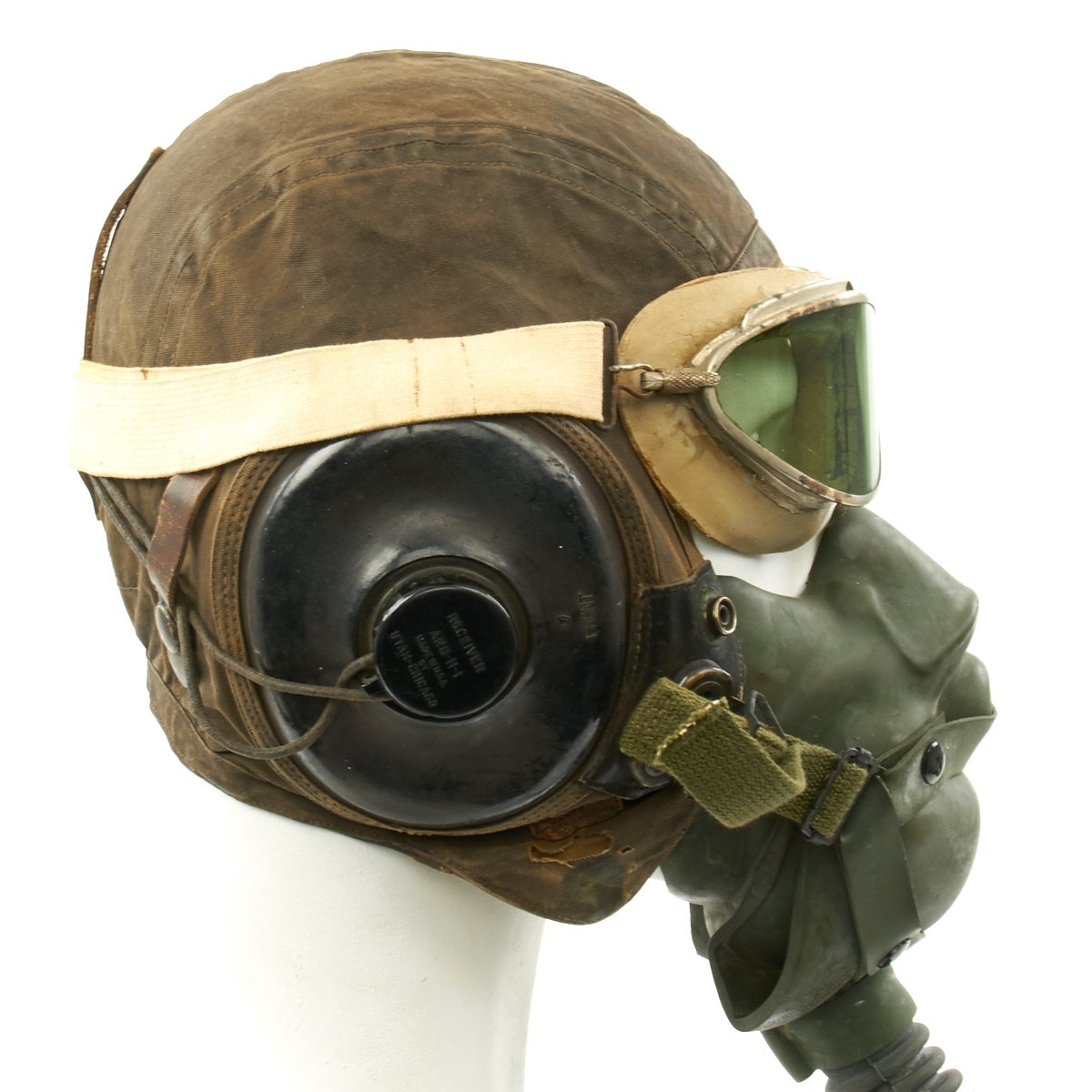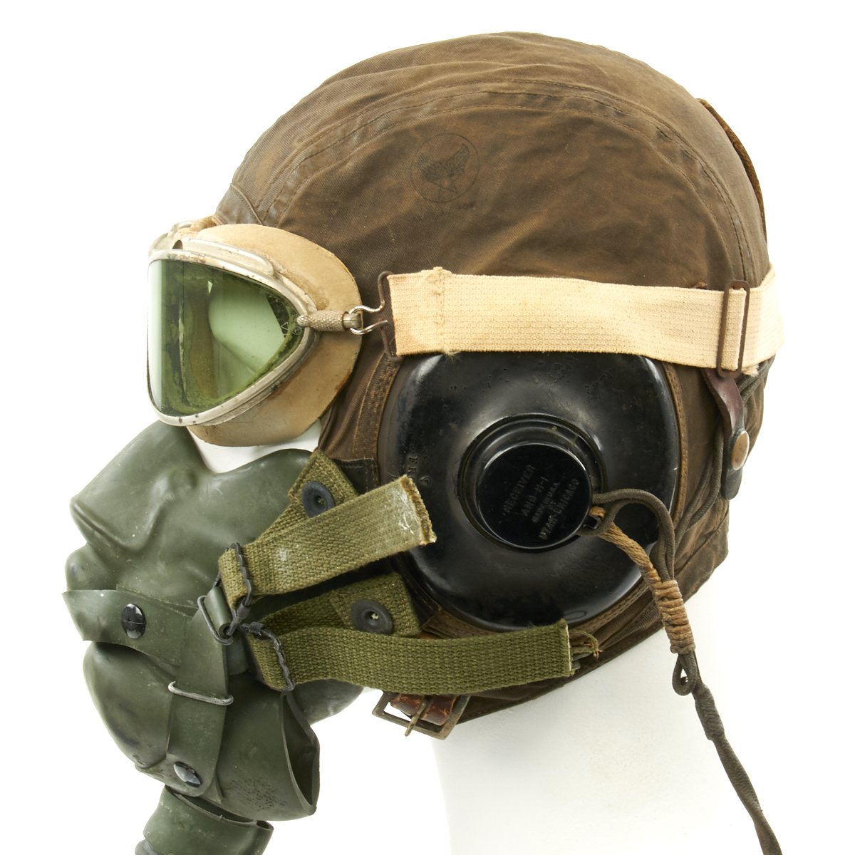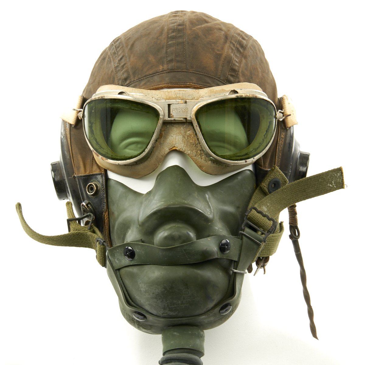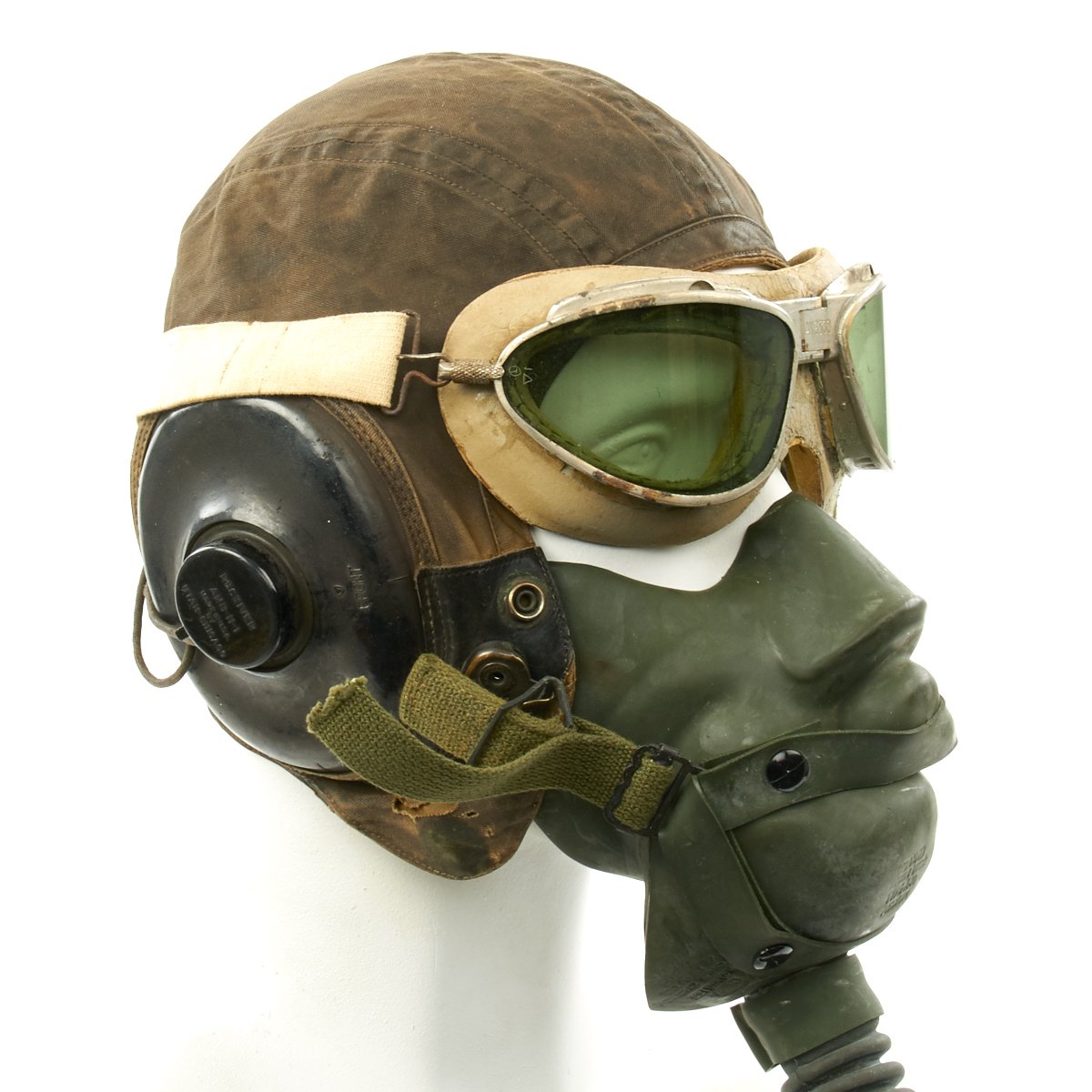An incredible excellent condition U.S. Army Air Force leather flying helmet set set that will not be encountered again! Ready to display!