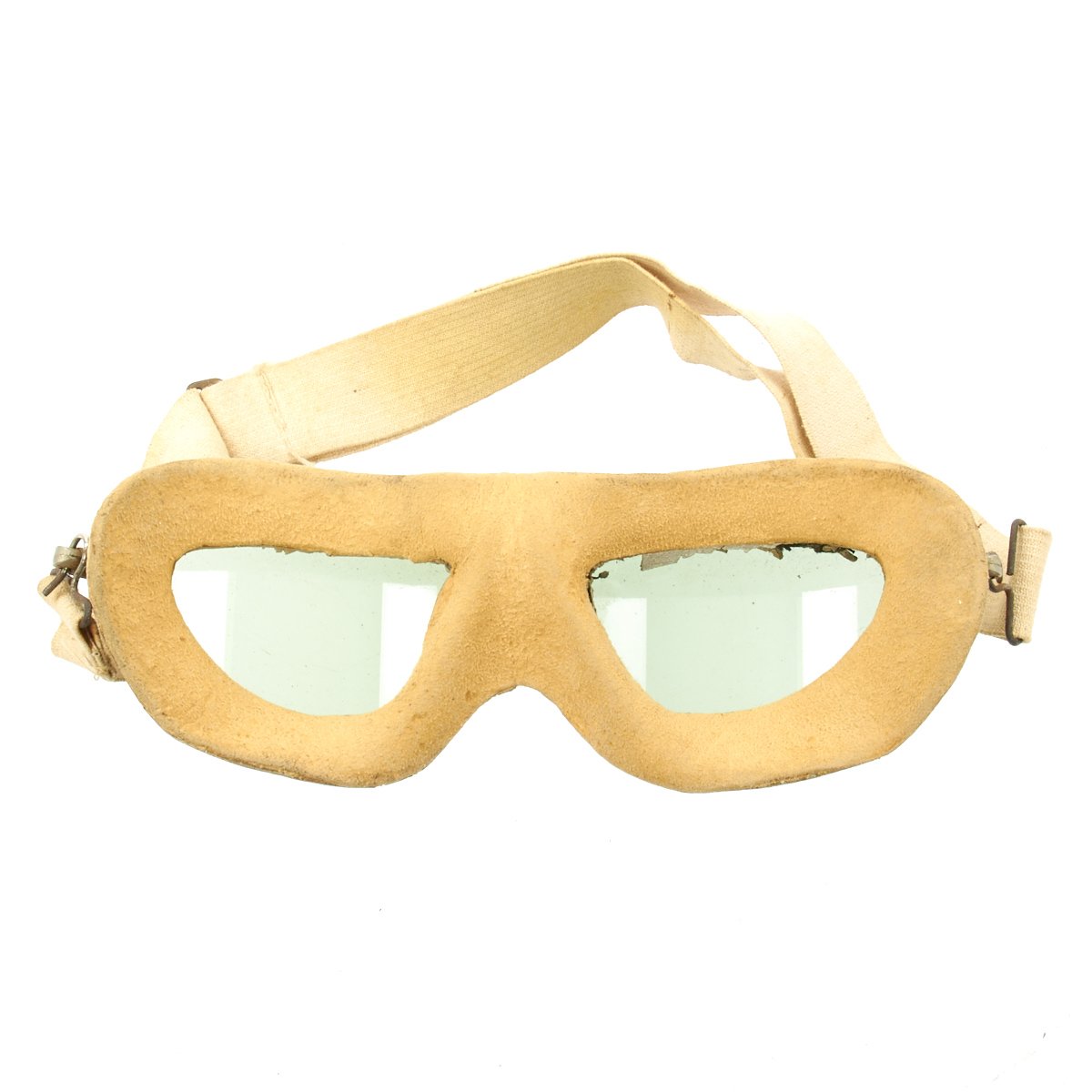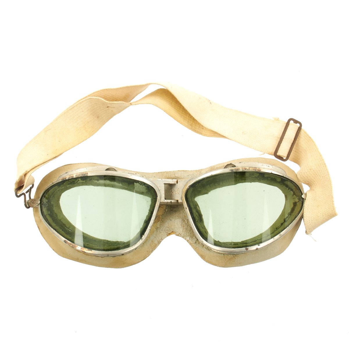 - WWII Pilot Goggles, model AN6530 by THE CHAS. FISCHER SPRING CO. offered in good condition with green tint lenses. The rubber gasket has unfortunately completely separated from the frames, but it is still soft and supple.