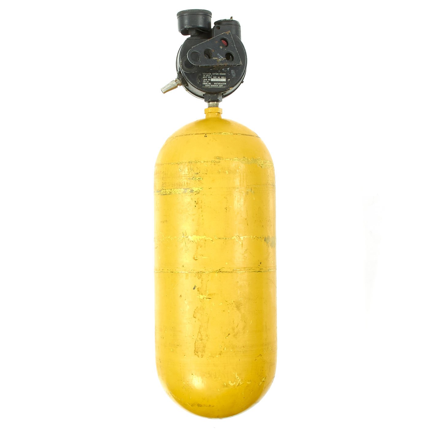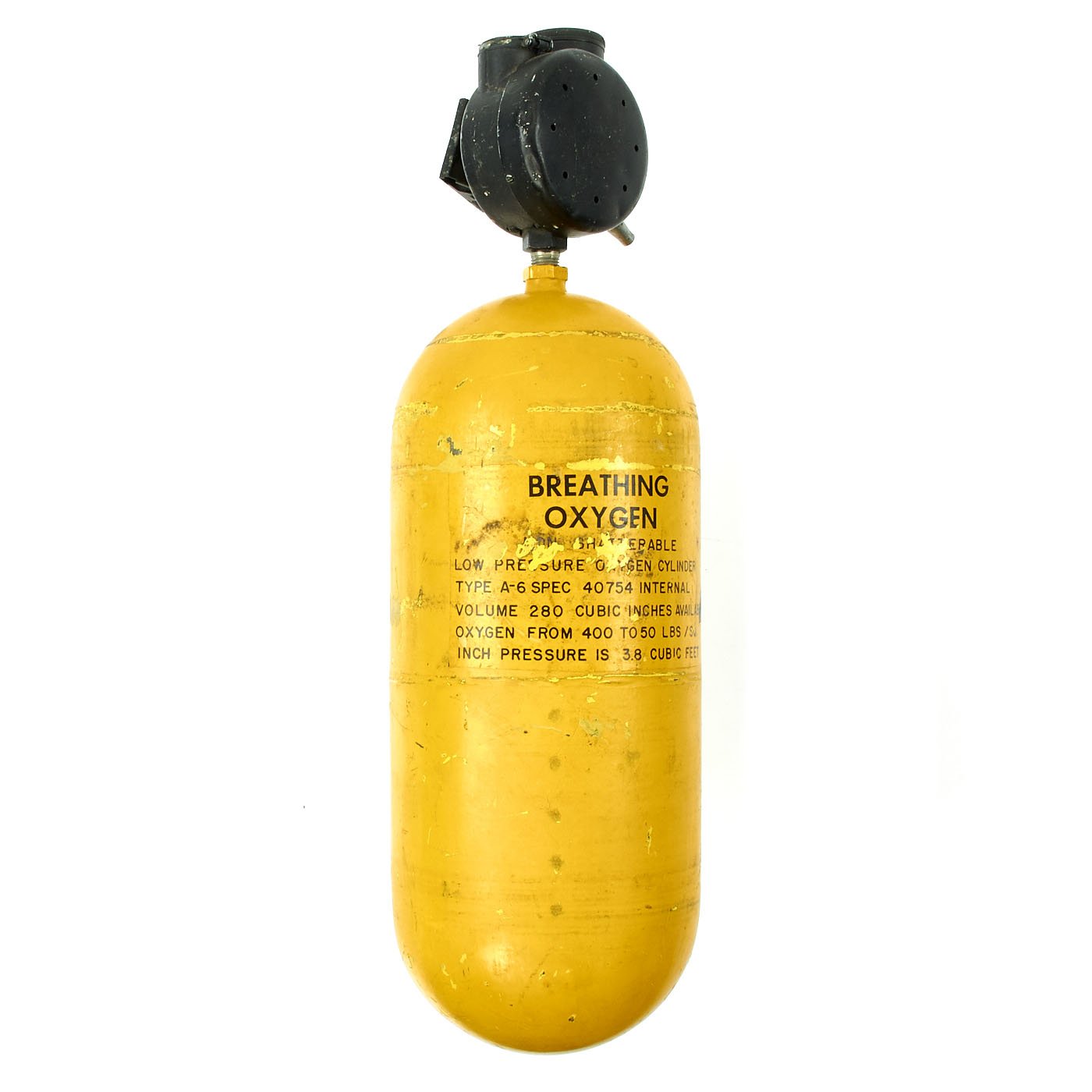 Original Item: Only One Available. During WWII American Air Crews on multiple types of aircraft including the Boeing B-17 Flying Fortress and B-24 Liberator required oxygen at high altitudes. For crewman whose roles required them to move about the plane they used "walk around" low pressure oxygen tanks such as this A-6 Oxygen Tank with AN-6022-1 Regulator.