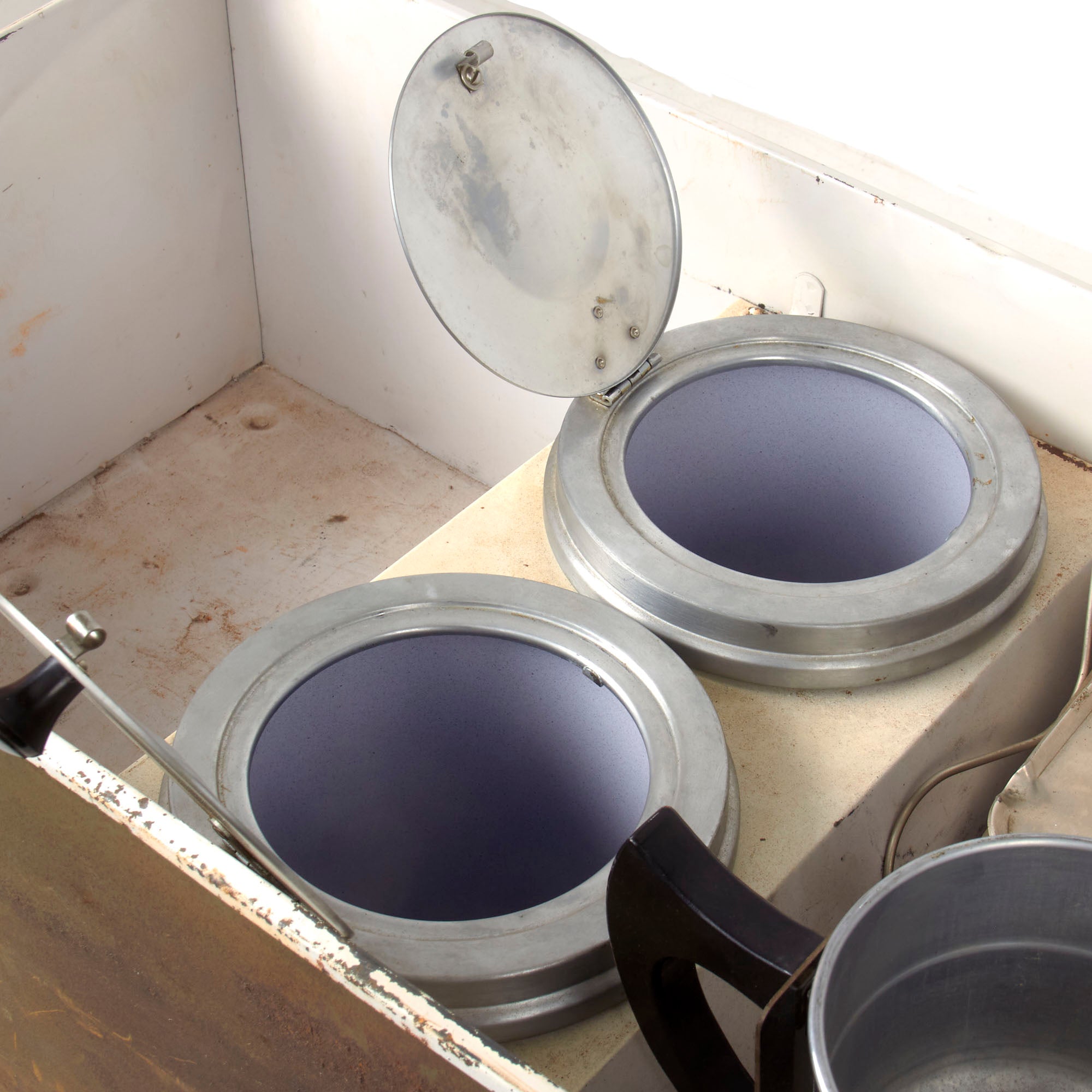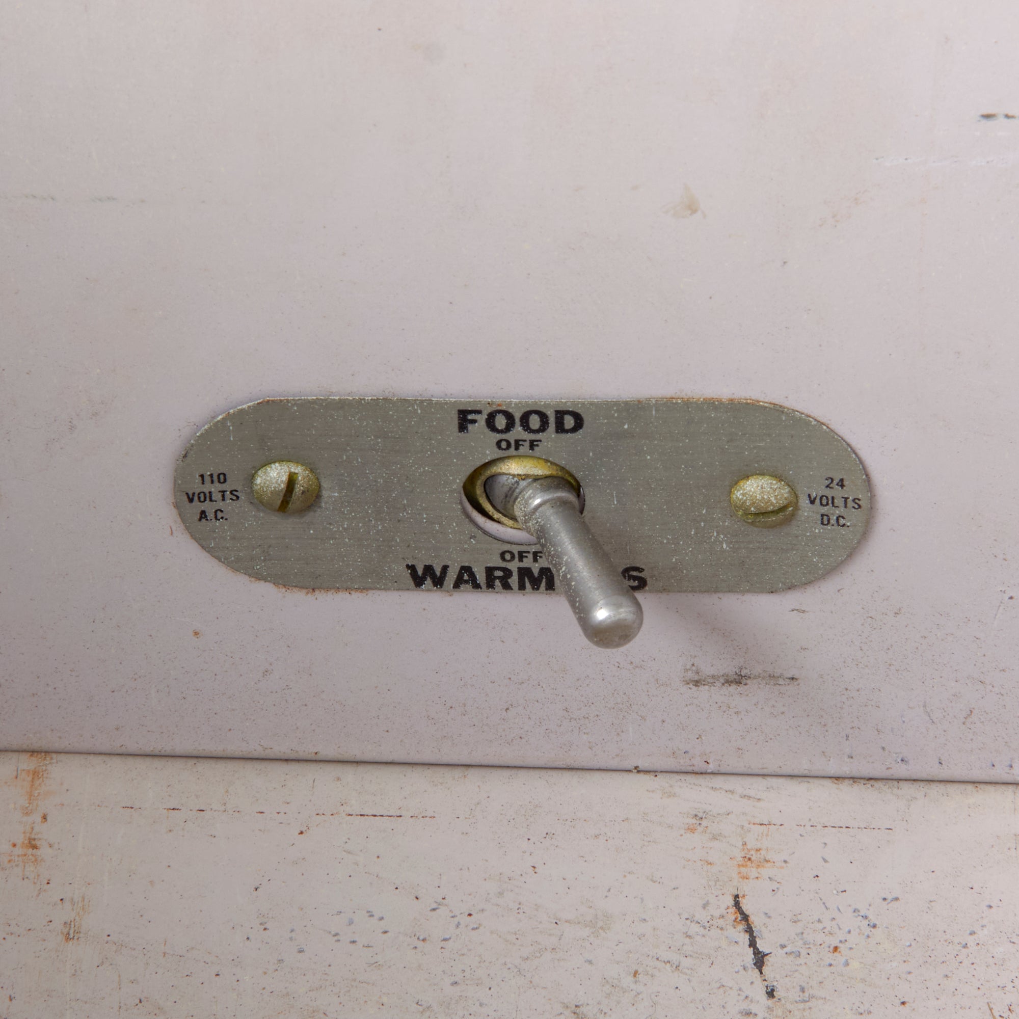 The size of the galley is roughly 10 x 15 x 30”, and the original canvas cover is retained, although none of the original springs still clip onto the loops, as several are either broken or heavily rusted. It still displays great regardless. The power cord is still housed in the correct place.