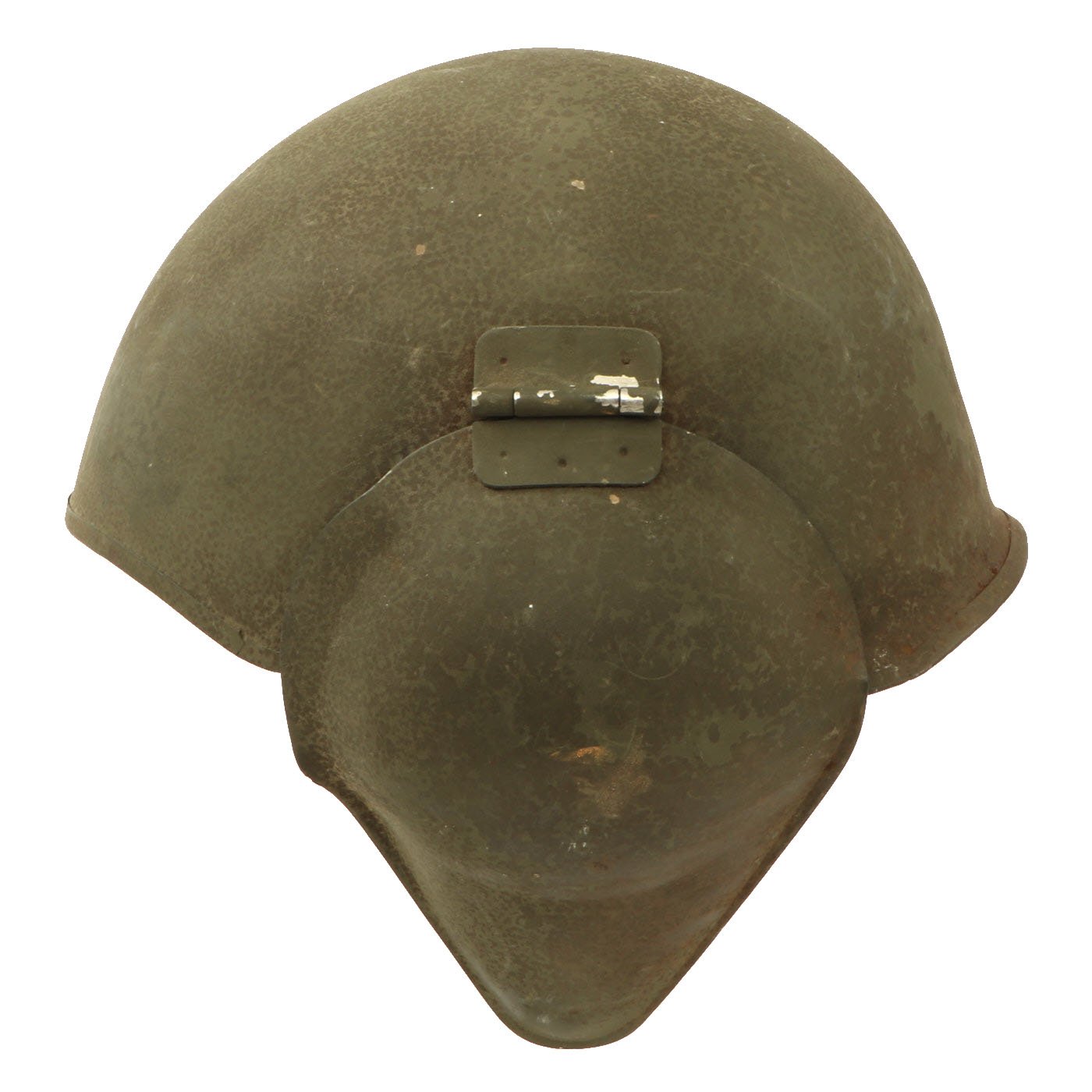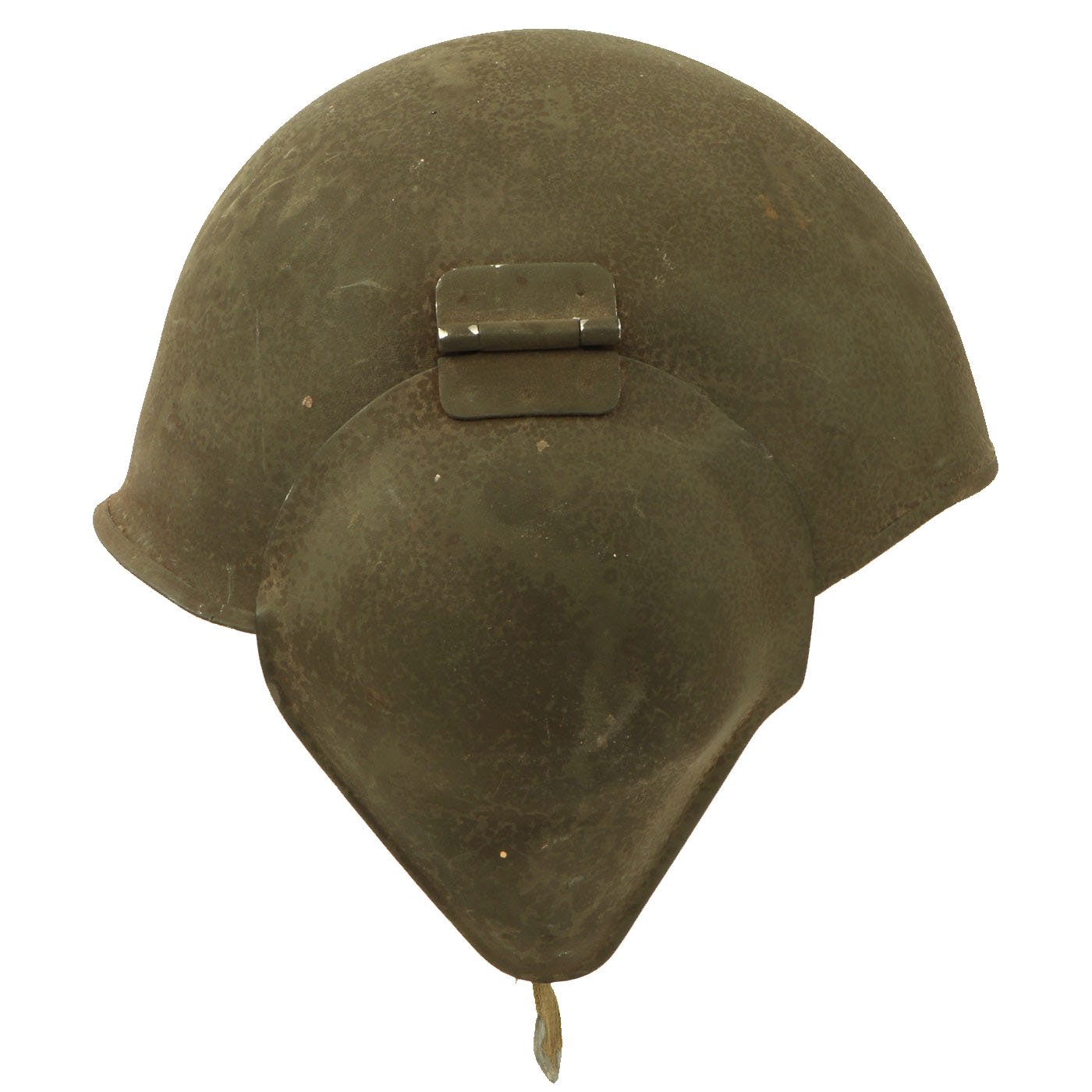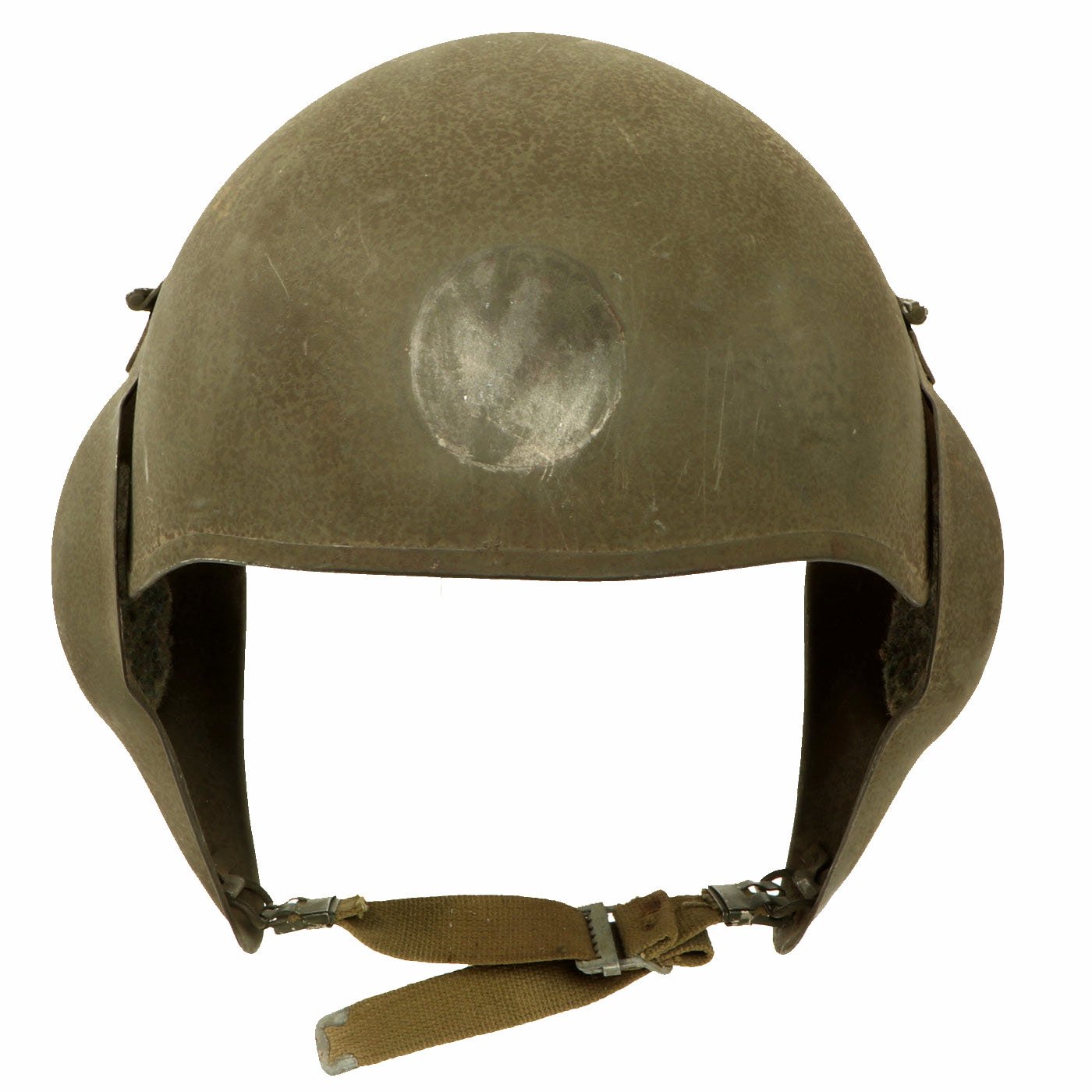 Original Item: Only One Available. This is a very hard to find USAAF WWII issue M5 Flak Helmet, in very good condition. It does not look to have been issued or used very much, but it does have a lot of storage wear on the exterior shell. This has removed a lot of the fuzzy "flocked" coating on the exterior. World War Two American bomber crews in the skies over Europe needed something more than their leather flying helmets to provide them with shrapnel injuries, however it took a surprisingly long time for a new helmet to be developed and deployed to meet that need. Not until December of 1943 did the M3 reach the ETO, it was the first of three versions of the American flak helmet. The M4 followed, and in January 1945, this model, the M5, became the standard issue to bomber crews.