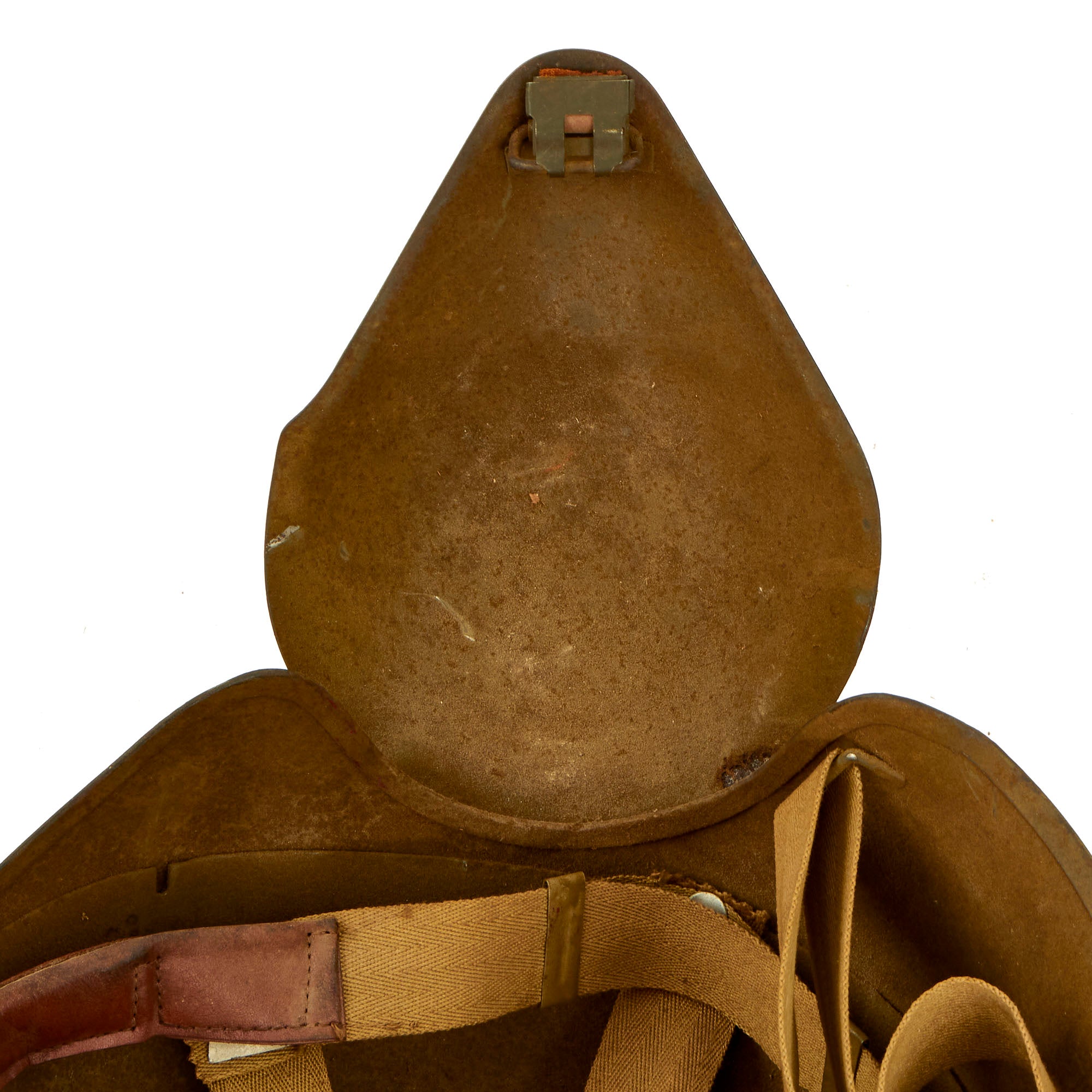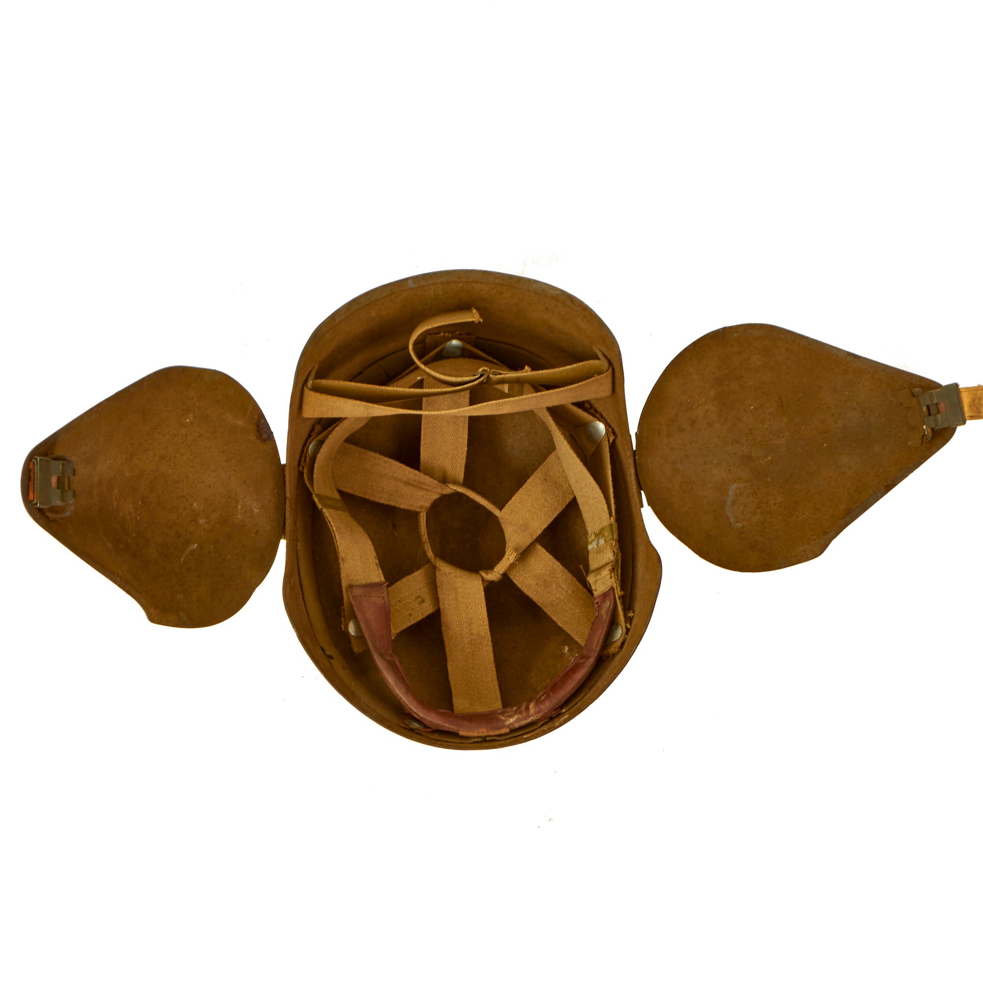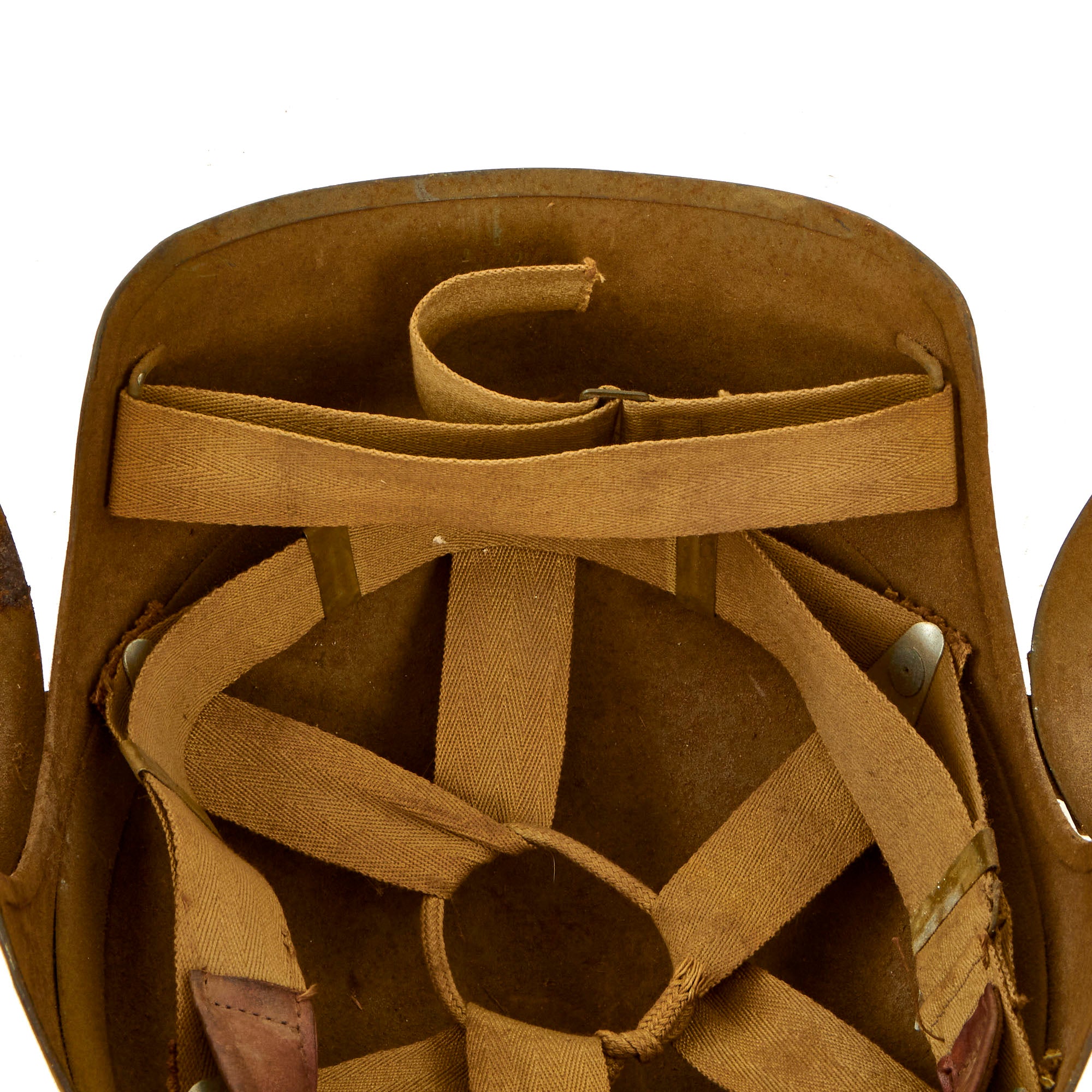 This example is offered in very good condition. The interior rigging is nearly complete with the forehead sweatband. The chinstrap is unfortunately broken and missing a piece.