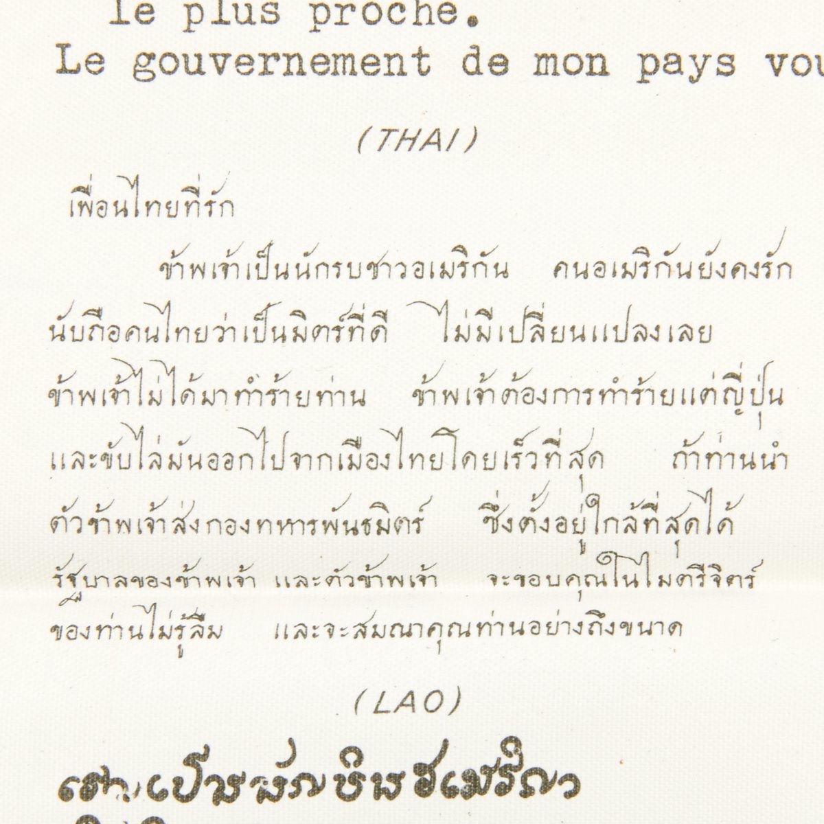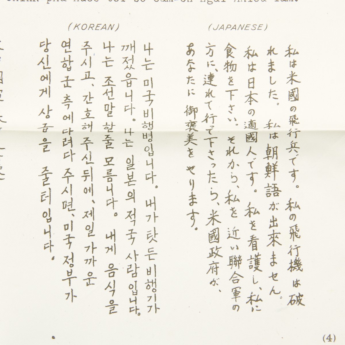 I am an American airman. My plane is destroyed. I cannot speak your language. I am an enemy of the Japanese. Please give me food and take me to the nearest Allied military post. You will be rewarded.