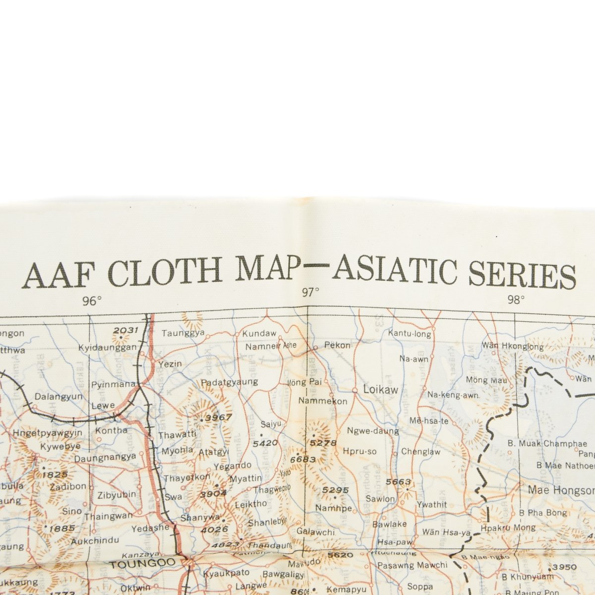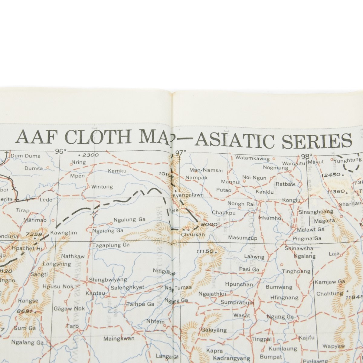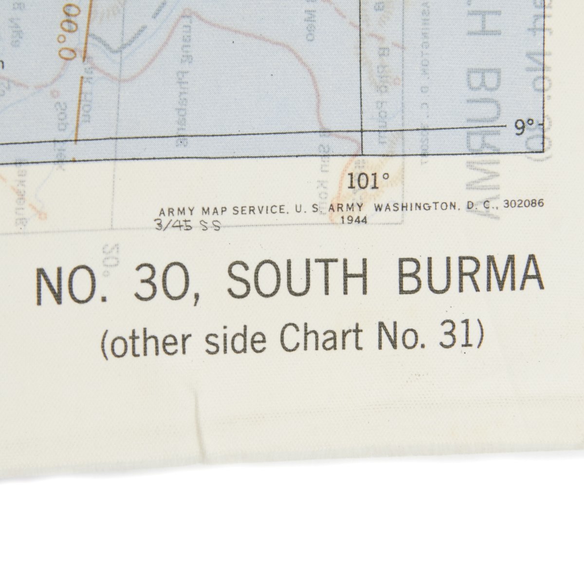 - USAAF WWII Dated Escape map marked AAF CLOTH MAP - ASIATIC SERIES - at the top center and titled: NO. 30, SOUTH BURMA the reverse reads NO. 31, NORTH BURMA