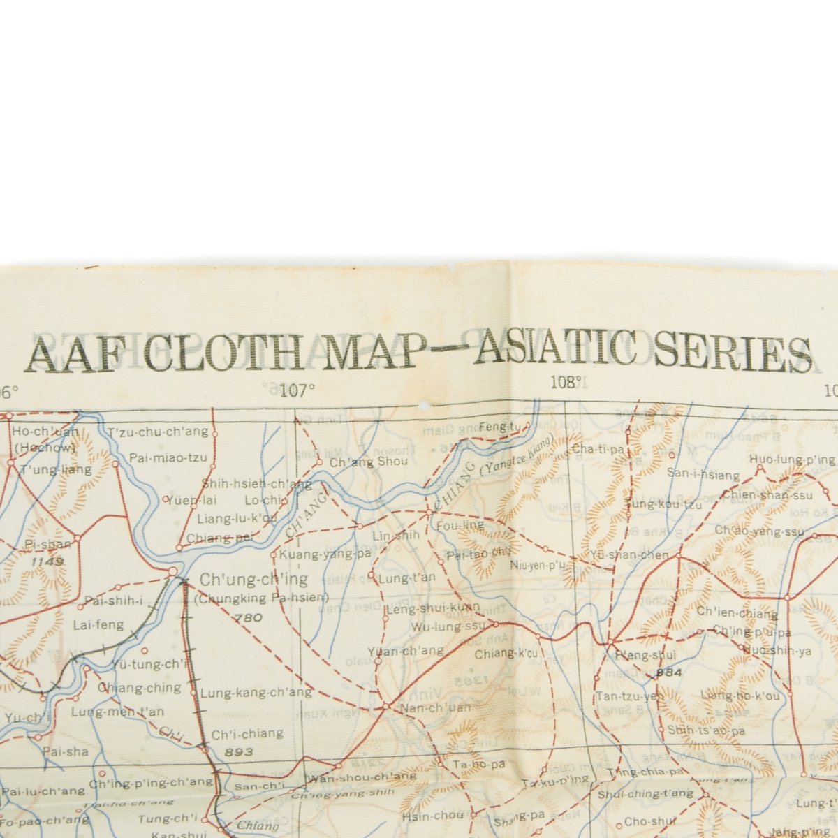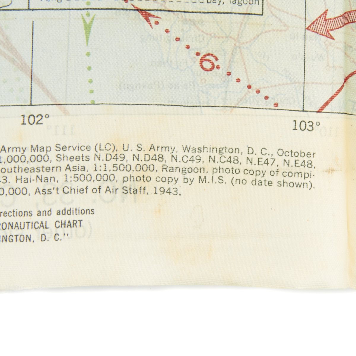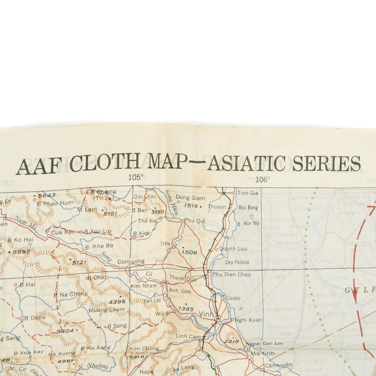 - USAAF WWI Dated Escape map marked AAF CLOTH MAP - ASIATIC SERIES - at the top center and titled: NO. 32, FRENCH INDO CHINA the reverse reads NO. 33, CENTRAL CHINA