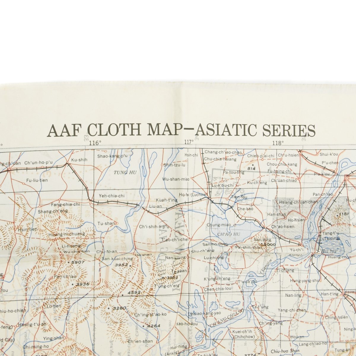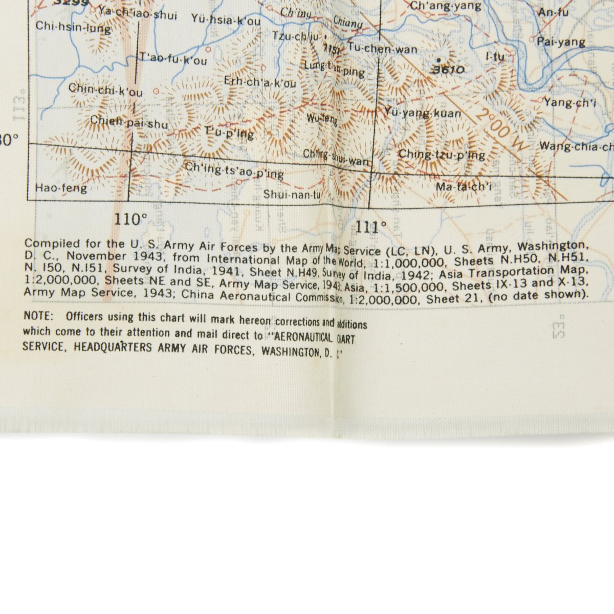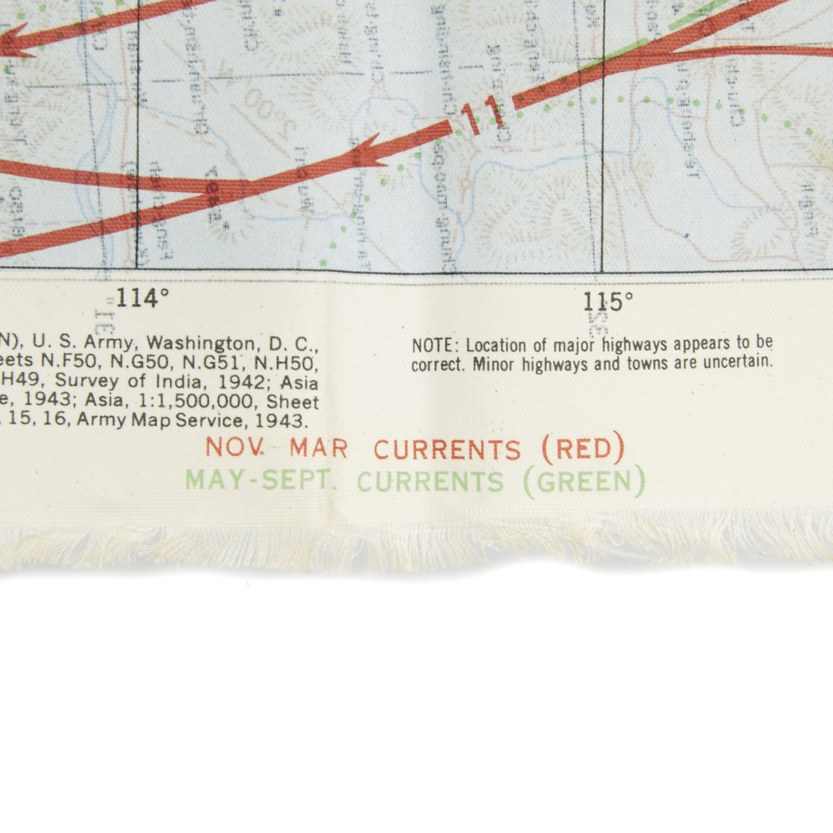 - USAAF WWII Dated Escape map marked AAF CLOTH MAP - ASIATIC SERIES - at the top center and titled: NO. 34, SOUTHEAST CHINA the reverse reads NO. 35, NORTHEAST CHINA