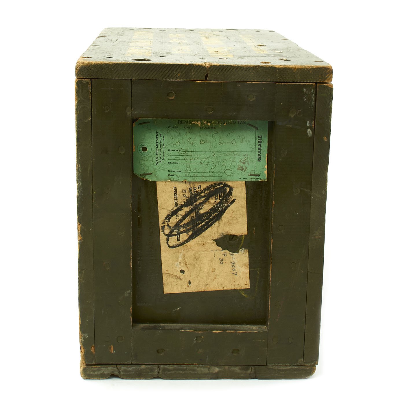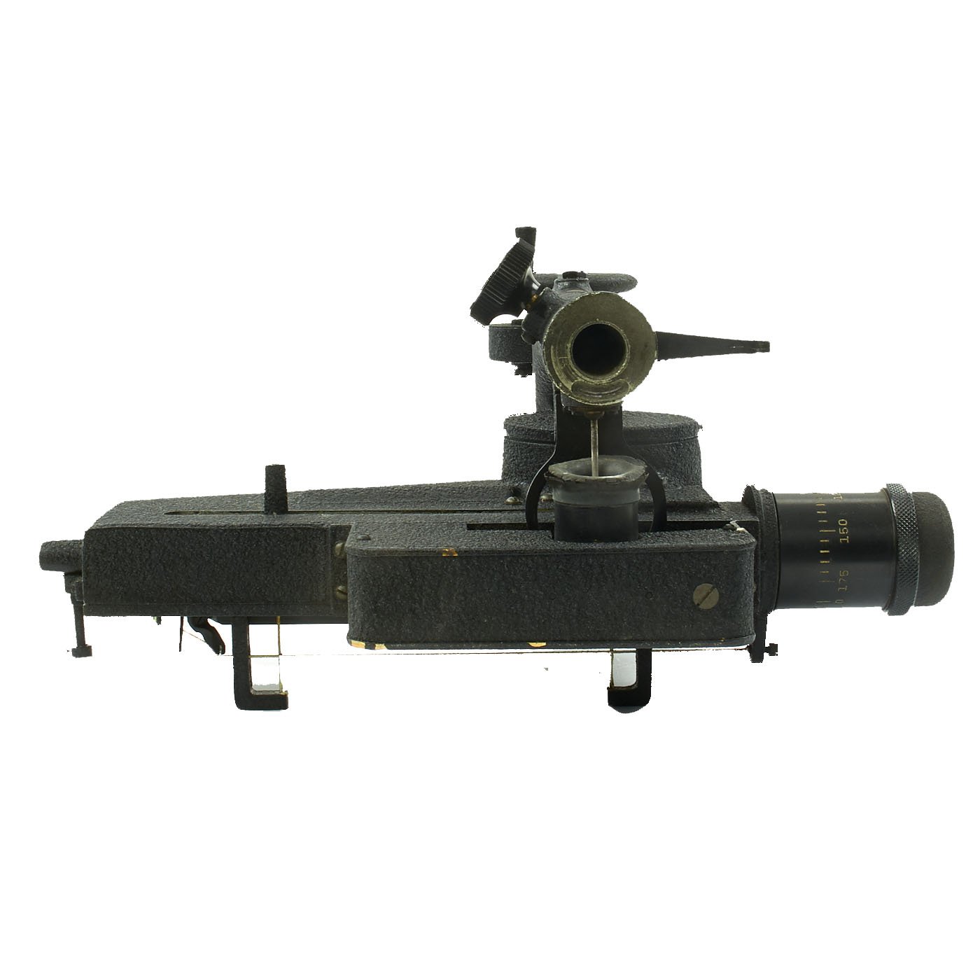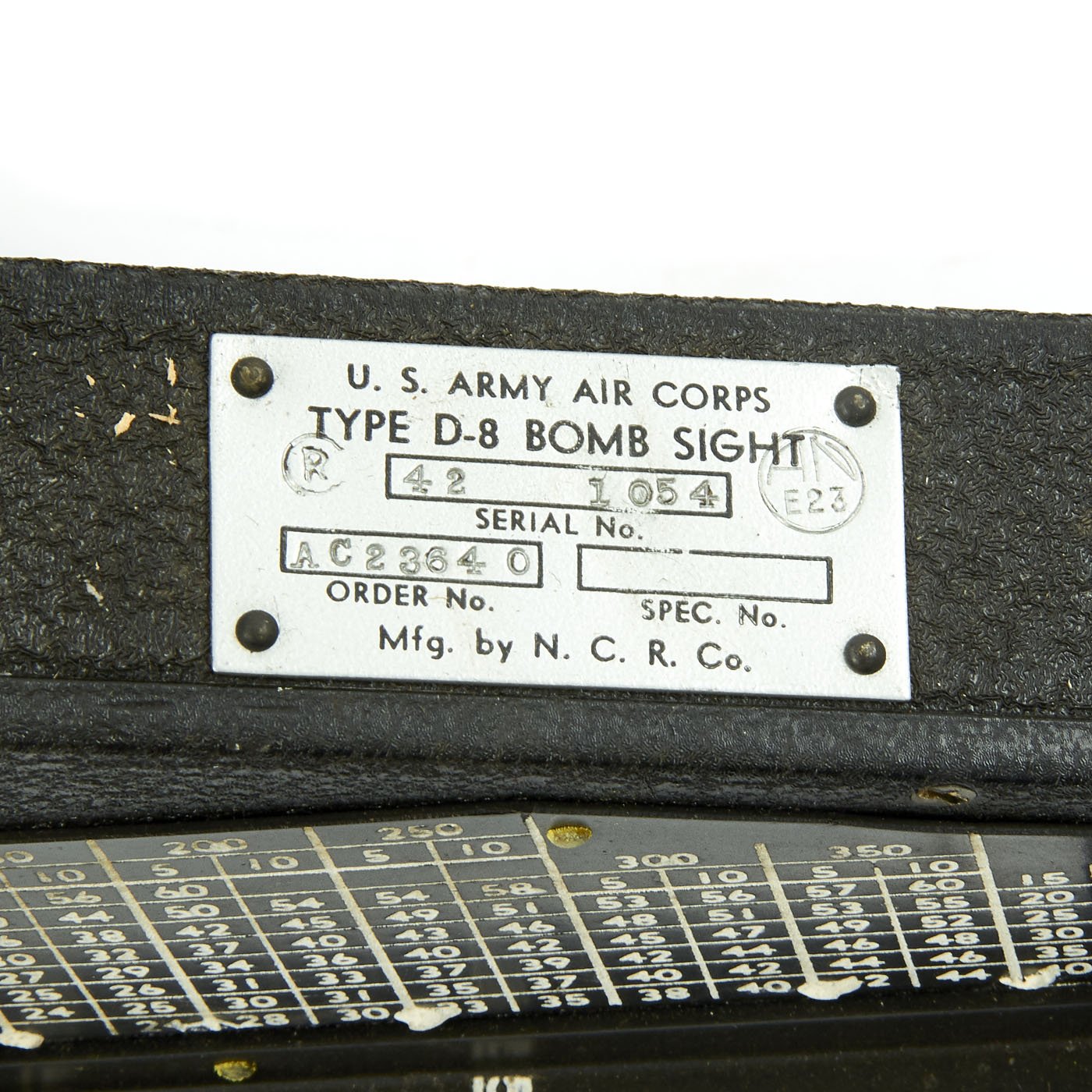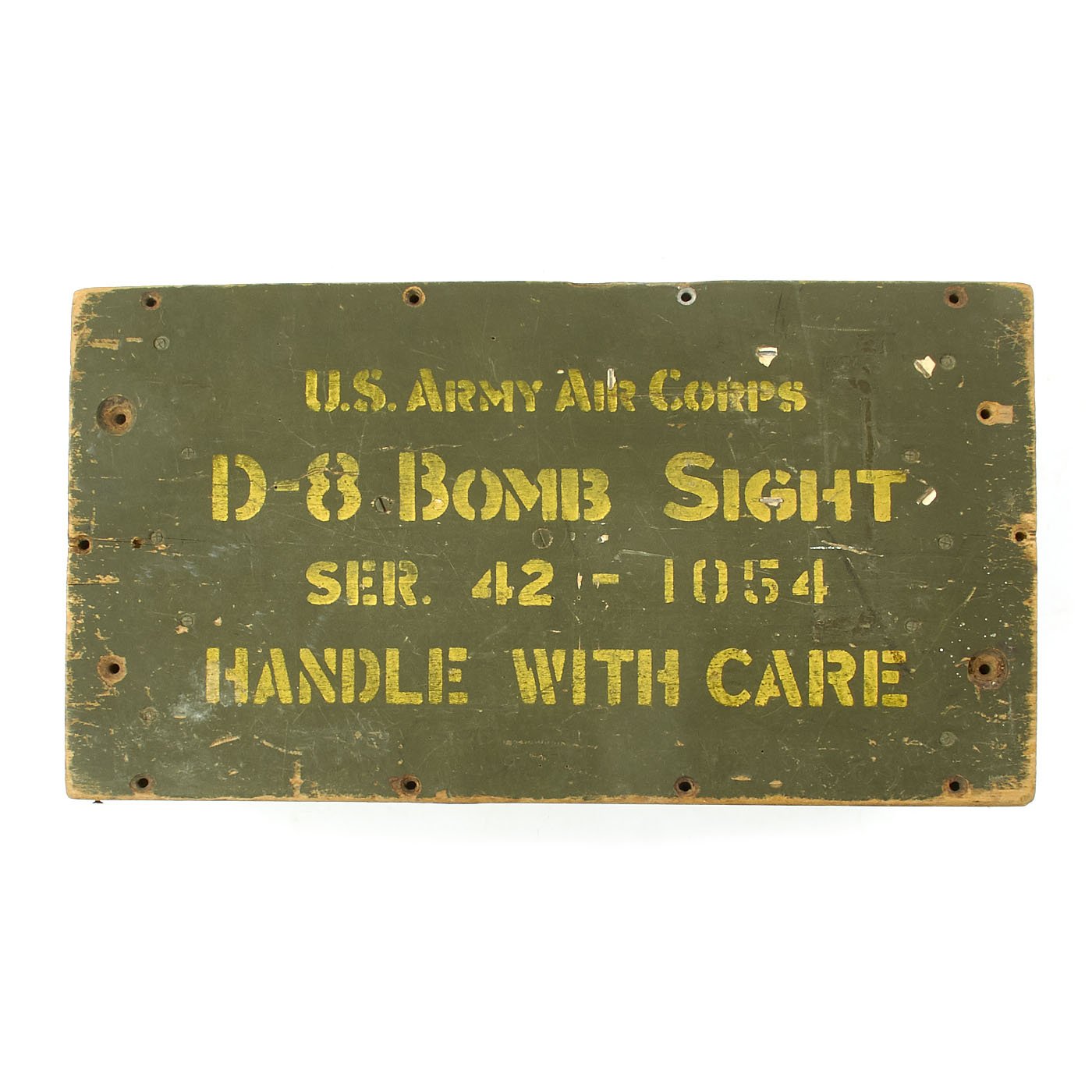 Original Item: Only One Available. This is an exceptionally rare complete and unissued Estoppey D-8 bombsight in transit chest. Only approximately 9,000 Estoppey bombsights were ever produced. The Estoppey bombsight, designed by Georges Estoppey, used a clock timer mechanism to compute the drop angle. This was a much simpler and cheaper device than the Norden or Sperry bomb sights. There was a severe shortage of Norden bombsights just before WWII and in the early years, so Estoppeys were called into heavy production beginning in 1938. The bombardiers would wind the timer up with a crank, set the time of fall information into the front dial, then rotate the crank in the opposite direction to activate the timer. He would then look from the top wire down to the front wire, and rotate the crank so as to keep the front wire on the target. When the timer ran out, the crank was locked out, fixing the wire position. He would then shift to looking from the top wire down to the rear wire. When the target came into view, he would release the bomb. Here is a video of another operational Estoppey D-8 Bombsight: